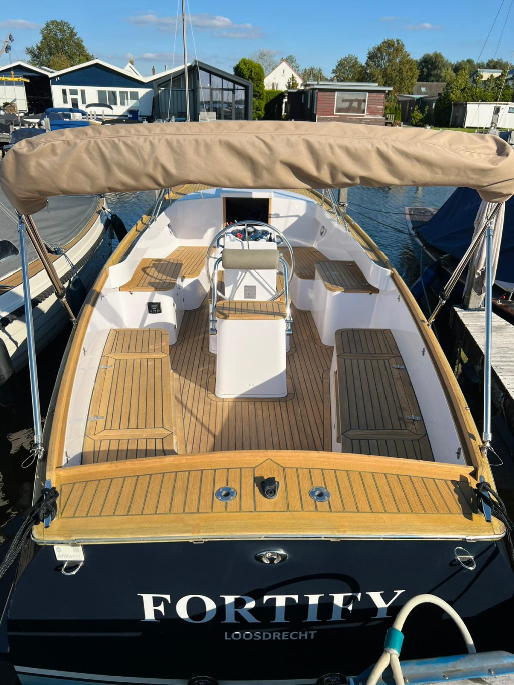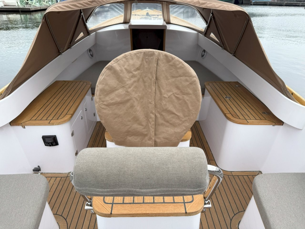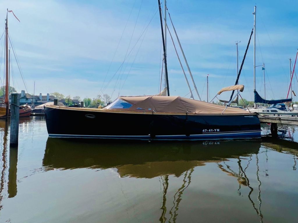 Deze prachtige AdmiralsTender Classic met donker blauwe romp en driedelige beige buiskap met afsluittent over gehele kuip (2019) is een stijlvolle en sportieve tender. De ruime kuip is voorzien van