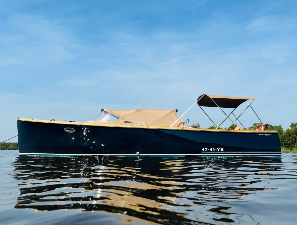 Deze prachtige AdmiralsTender Classic met donker blauwe romp en driedelige beige buiskap met afsluittent over gehele kuip (2019) is een stijlvolle en sportieve tender. De ruime kuip is voorzien van een biminitop (2023), Taupe rugkussens en kussen set voor alle kuipbanken, zonnedek (2019) voor optimaal comfort. Met de Yanmar 110 pk dieselmotor, bereikt deze tender een snelheid tot 32 km/u. Het luxe teakdek loopt door in de kuip, op de banken en motorkist. Uitgevoerd met de volgende opties, boegschroef, keukenblok, spoelbak en gasfornuis, grote koelbox met compressor, RVS zwemtrap, ski-oog, een van de weinige Classics met in teakdek ingebouwde ankerluik, kuip led verlichting, kuiptafel en Bluetooth 300 watt stereo installatie, 4x speakers (2016). De kajuit biedt twee slaapplaatsen, beige kussens en droogtoilet. Jaarlijks onderhoud, laatste juni 2025, nieuwe anti fouling 2025, dieseltank professioneel gereinigd in voorjaar 2025. Iedere winter binnen in loods. Verkocht