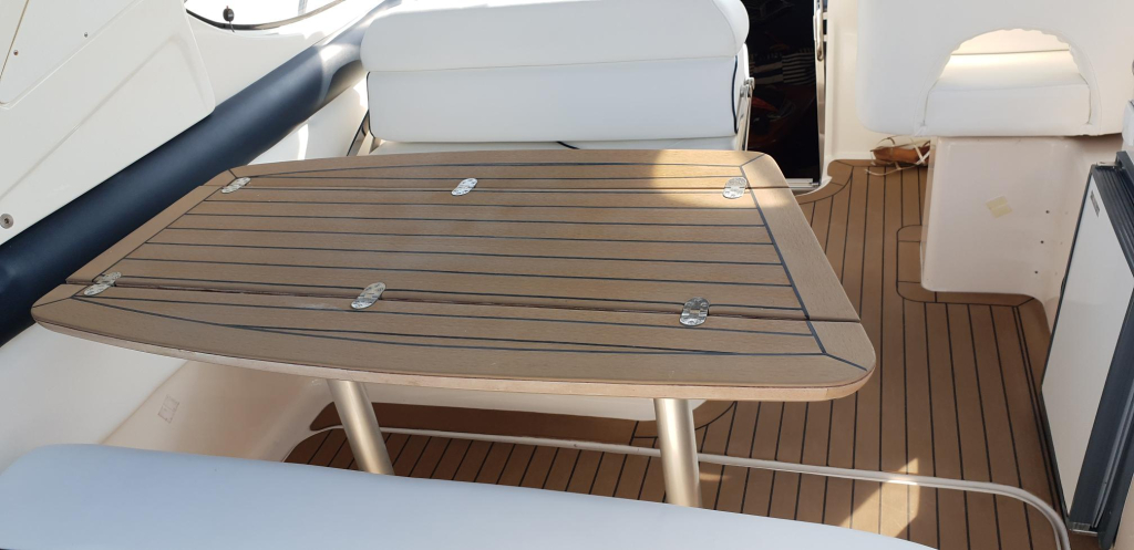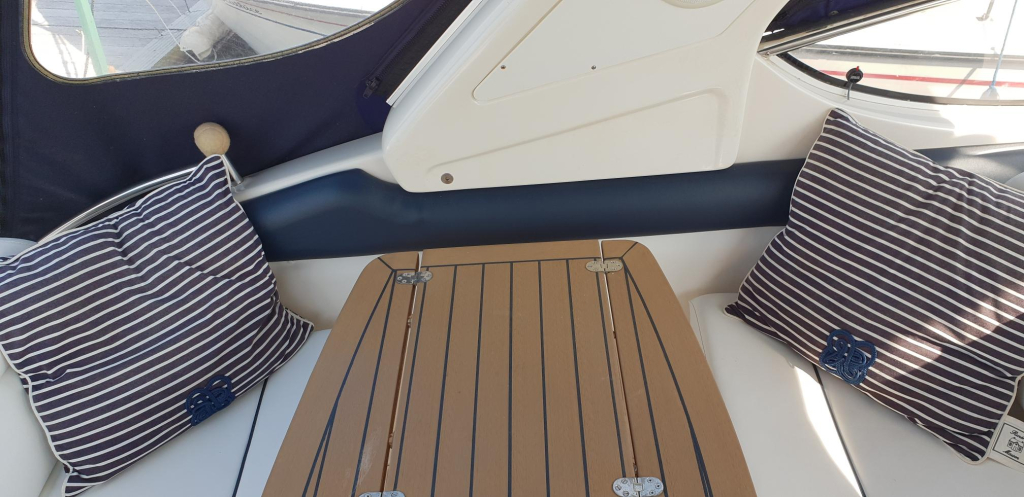 skai stoffering buitenkussens(2016). Kunststof teak op de gehele kuipvloer(2013) en op kuiptafel. Nieuwe ramen in buiskap en kuiptent(2024).