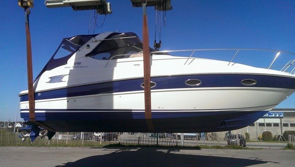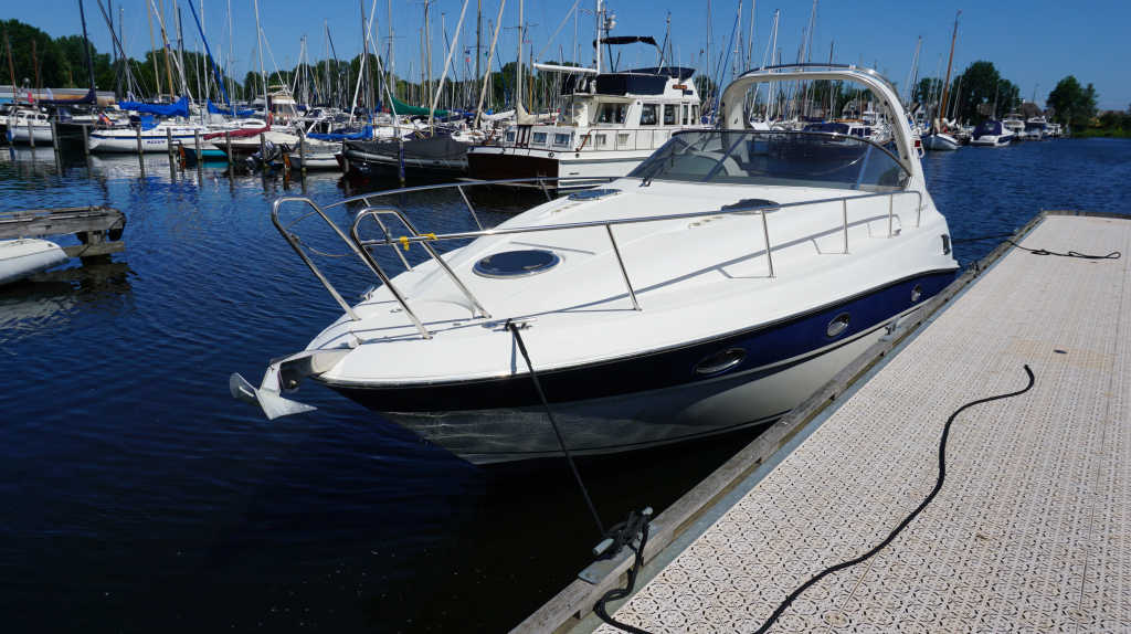 Mooie Bavaria BMB 300 Sport met 2x 170 pk Volvo Penta diesels en boegschroef. Verder o.a. kunststof teak in de kuip, recent skai bekleding in de kuip, kuiptent, buiskap, 2x duo-prop rvs schroeven(2