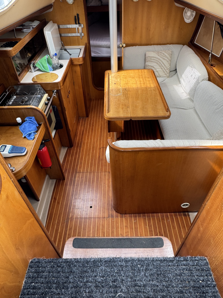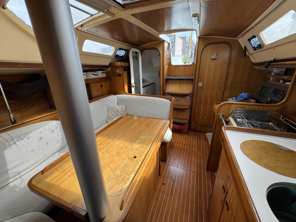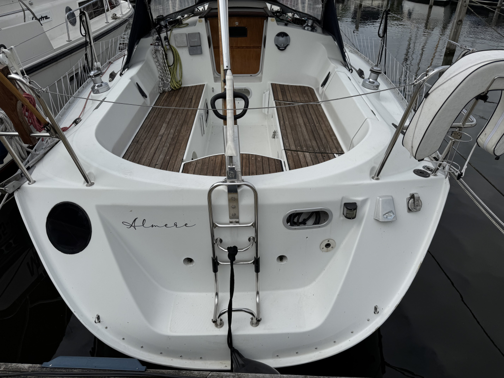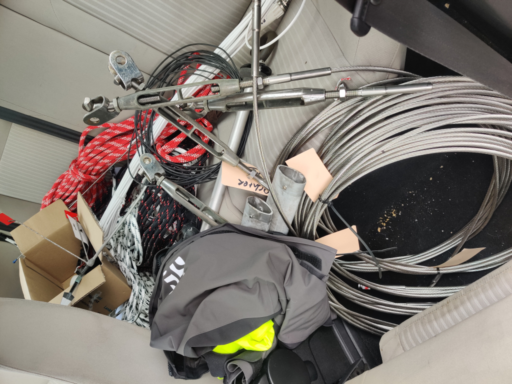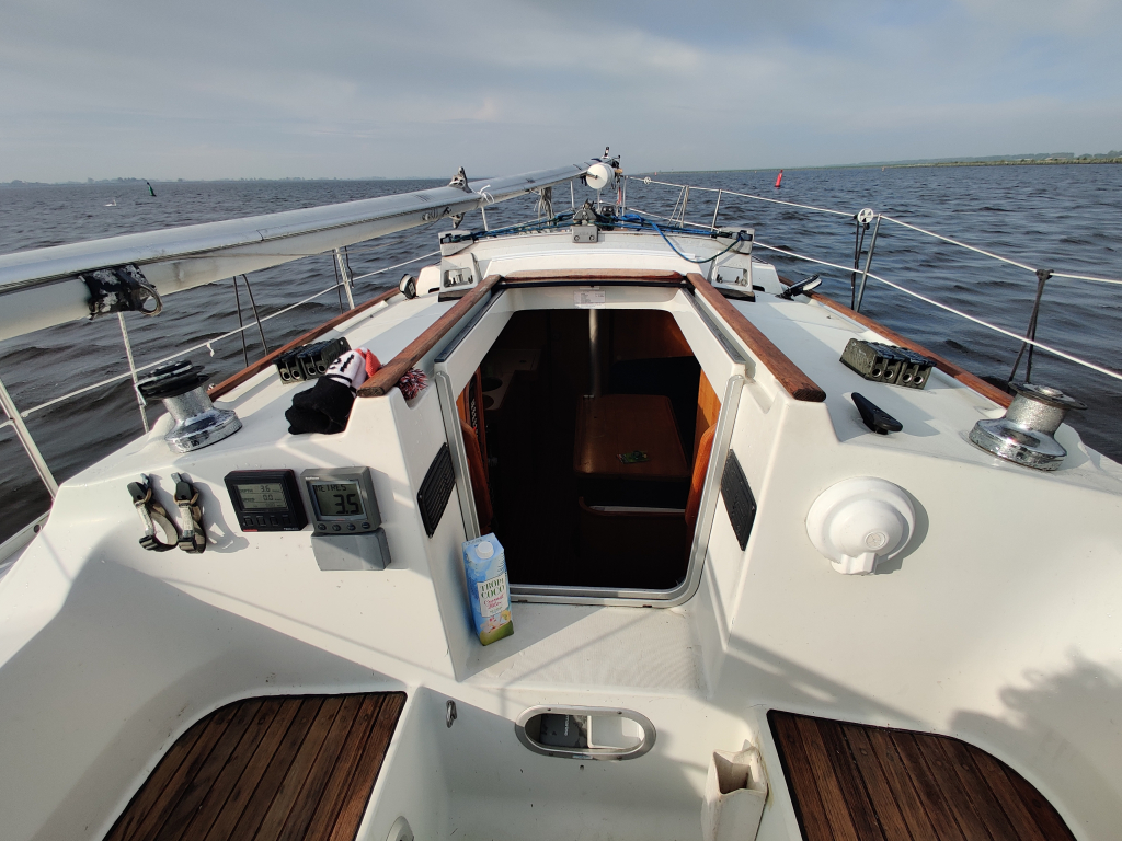 In 2021 is de mast ingekort i.v.m. 12.50 meter bruggen (Randmeer, Ketelmeer, Zeeland etc). Nieuwe verstaging en nieuwe vallen (2021). Elektra mast vervangen(2022) stoomlicht(LED), deklicht(LED), navigatieverlichting(LED) en marifoonkabel. spinnaker-boom. De aluminium mast is 20 cm ingekort aan de onderkant bij tuiger RS service (2021). Owners comment: "Zoals omschreven is de vernieuwde zeil-voering, ontworpen en uitgevoerd door een professionele Tuiger in Zwartsluis die zeer veel ervaring heeft met dit soort ingrepen op zeiljachten. Het zicht is beter geworden doordat het voorzeil hoger is gesneden. De giek komt tot en met de buiskap, dat maakt dat de kuip nog altijd vrij is van de giek. Hierdoor kun je altijd staan in de kuip en heb je geen last van de giek. Met zeil-manoeuvres is uiteraard rekening gehouden en hier ondervindt je geen enkel probleem mee. Het zeil is dus nu effectiever. Hoe lager het zeil op de boot zit, hoe minder helling een boot maakt. Hoe minder helling een boot hoe meer voorwaardse druk het zeil genereert. Hoe meer voorwaartse druk, hoe efficiënter de boot snelheid kan maken"