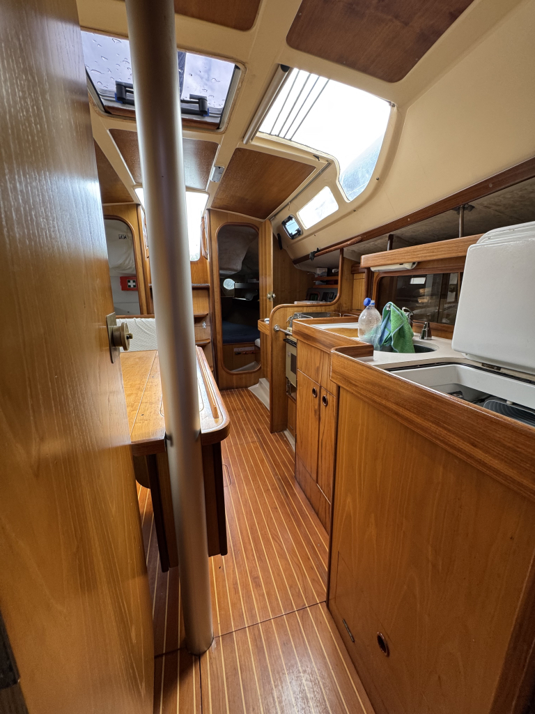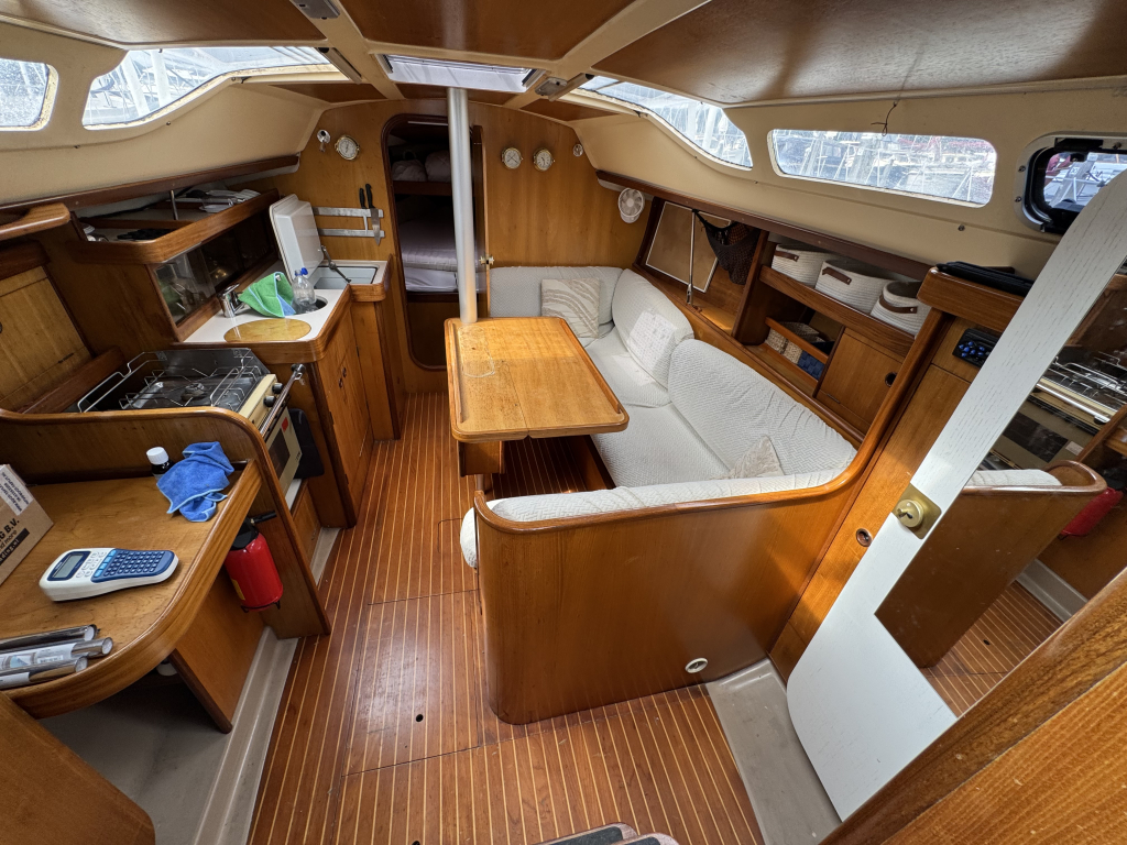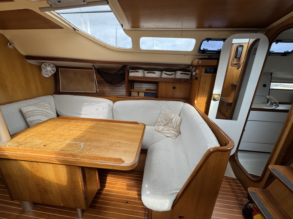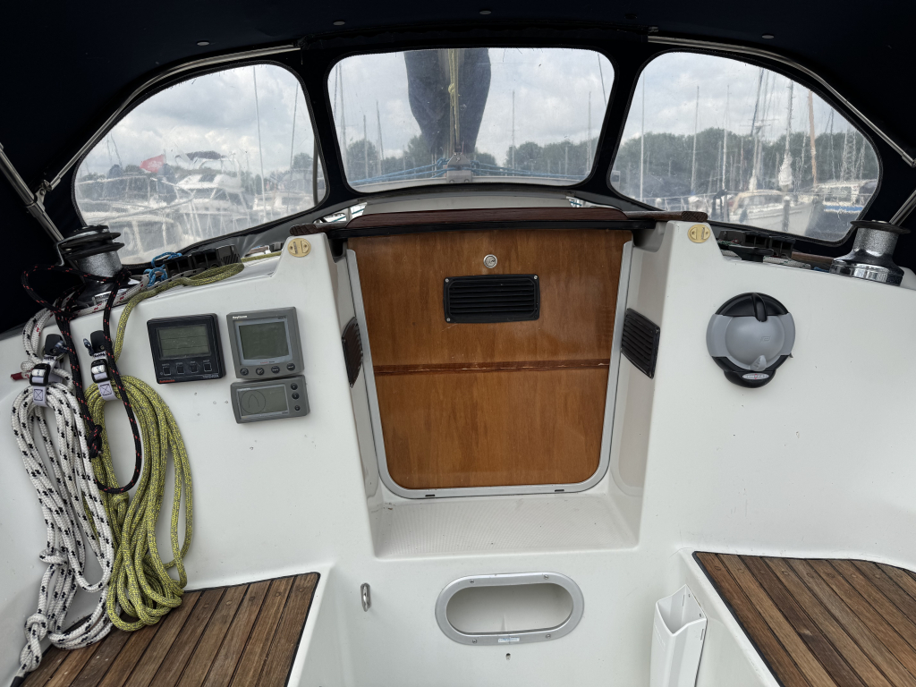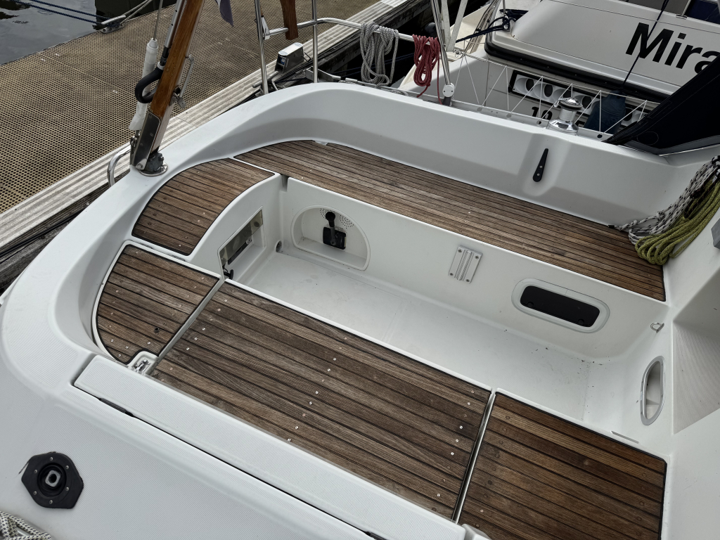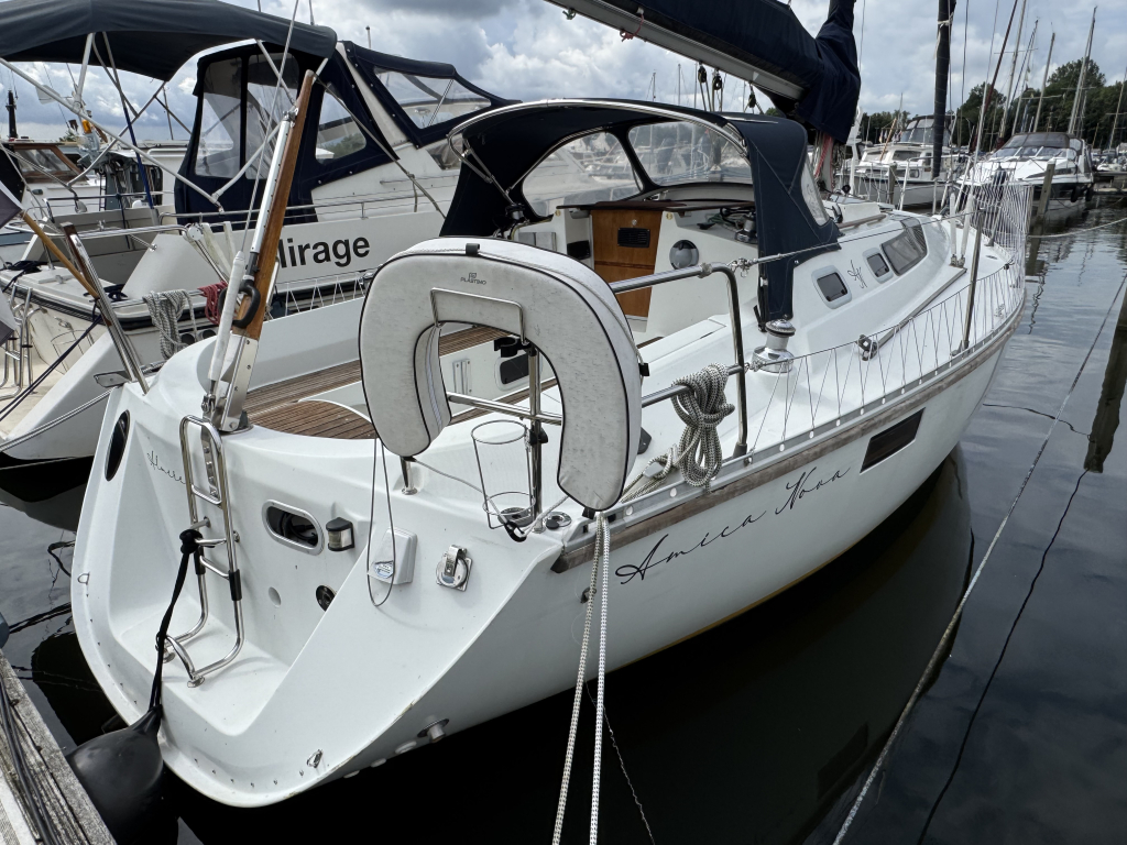 In 2021 is de mast ingekort i.v.m. 12.50 meter bruggen (Randmeer, Ketelmeer, Zeeland etc). Nieuwe verstaging en nieuwe vallen (2021). Elektra mast vervangen(2022) stoomlicht(LED), deklicht(LED), navigatieverlichting(LED) en marifoonkabel. spinnaker-boom. De aluminium mast is 20 cm ingekort aan de onderkant bij tuiger RS service (2021). Owners comment: "Zoals omschreven is de vernieuwde zeil-voering, ontworpen en uitgevoerd door een professionele Tuiger in Zwartsluis die zeer veel ervaring heeft met dit soort ingrepen op zeiljachten. Het zicht is beter geworden doordat het voorzeil hoger is gesneden. De giek komt tot en met de buiskap, dat maakt dat de kuip nog altijd vrij is van de giek. Hierdoor kun je altijd staan in de kuip en heb je geen last van de giek. Met zeil-manoeuvres is uiteraard rekening gehouden en hier ondervindt je geen enkel probleem mee. Het zeil is dus nu effectiever. Hoe lager het zeil op de boot zit, hoe minder helling een boot maakt. Hoe minder helling een boot hoe meer voorwaardse druk het zeil genereert. Hoe meer voorwaartse druk, hoe efficiënter de boot snelheid kan maken"
