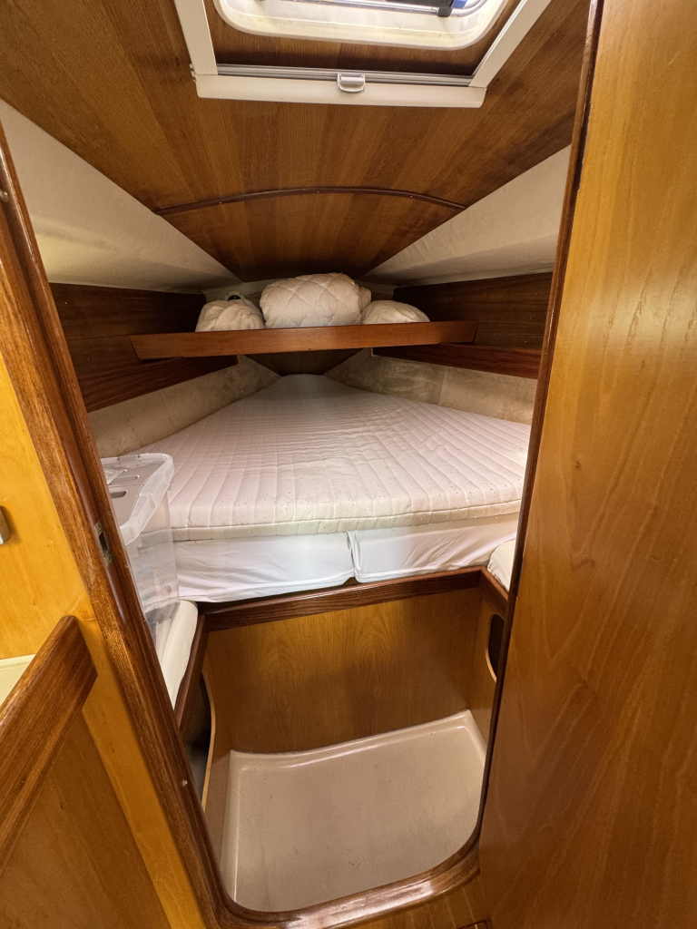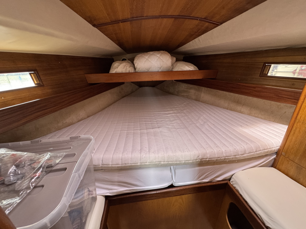 Twee persoons bed in de punt (op maat gemaakt in 2023) is 230 lang en 220 breed (loopt tot 50cm breed). Twee persoons bed in achterhut is 230 x 160 cm. Nieuwe mengkraan in keuken met koolstof/zilver drinkwaterfilter (2024).