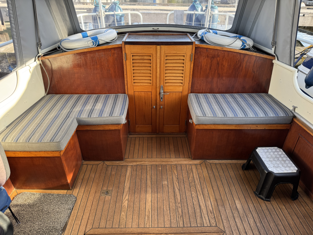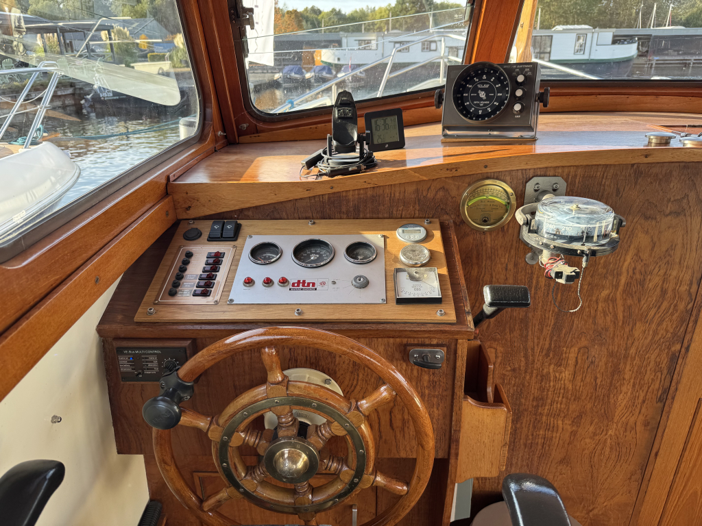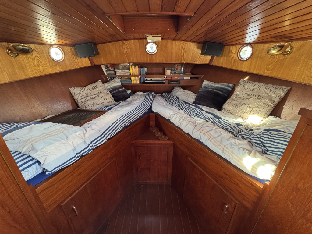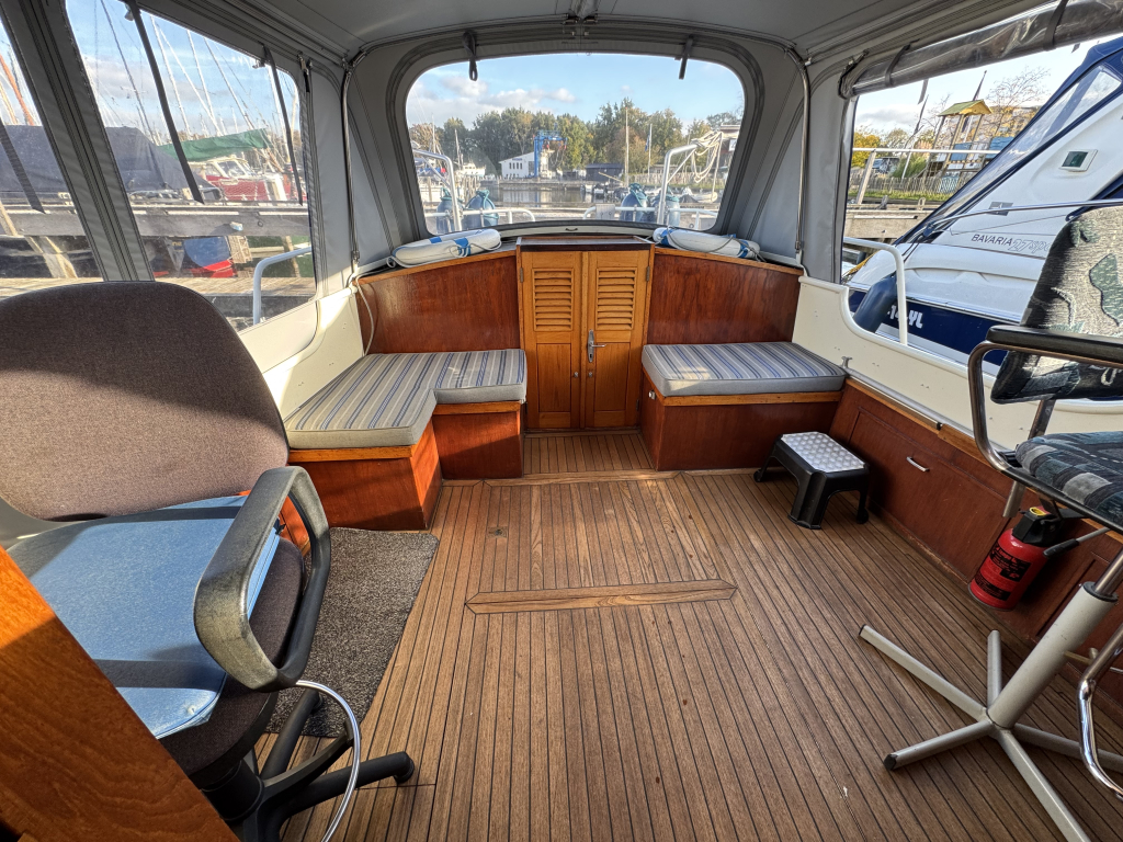 Van tweede eigenaar (sinds 2003) te koop door omstandigheden een mooie Bruijsvlet 9.65 AK. Multi-knik gebouwd met werf betimmerd interieur. Ruime gangboorden met RVS railing, teakdek, ankerlier, zwemplateau met zwemtrap, kabelaring met kop-leguaan en RVS davids t.b.v. een bijboot. Ruime kuip met stuurhuis en nieuwe kuiptent, teak op kuipvloer, extra motorkist om de motor (zeer rustig), achterkajuit met twee goede bedden. Kajuit met bijna 190 cm stahoogte, gezellige dinette, keuken met grote koelkast, 2 pits gasstel en warm- en koud stromend water, vooronder met weer twee grote bedden en kastruimte. Zeer gezellig en mooi betimmerd met goed zicht naar buiten (messing raamkozijnen). Verder heeft deze mooie Vlet een walstroom installatie met veel 220V punten en sterke omvormer, 12V aansluitingen, zonnepaneel, Isotherm boiler, etc. Te bezichtigen op afspraak bij Wehmeyer te Naarden
