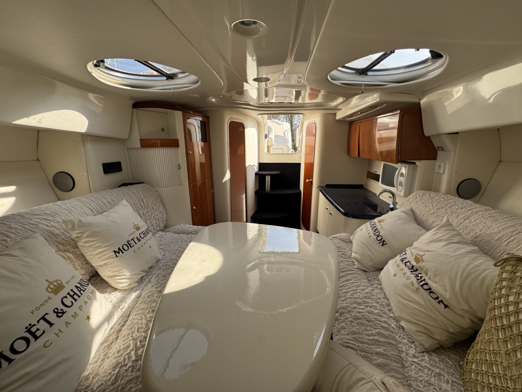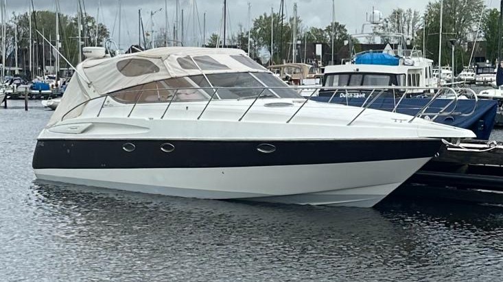 Cranchi Endurance 39 met 2x 285 pk Volvo Penta diesels, boegschroef, garage elektrisch te openen, nieuw kunst teakdek - (Topdek 2022), zonnedek op voordek en achterdek, ruime salon met goede stahoogte, keuken met grote koelkast, kook-comfort, magnetron, warm- en koud stromend water, elektrisch toilet met wastafel en douche, boiler, recente omvormer, recente Fusion geluidsinstallatie, Raymarine kaartplotter, Lowrance fish finder, marifoon, trim-vlakken, kuip-kleed, afdek kleden, elektrisch ankerlier met Bruce anker en ketting, buiten keuken met tweede koelkast, etc. Boekjes, folders en onderhoudshistorie aanwezig. Lente overall is 12.42 meter. Te bezichtigen op afspraak bij Wehmeyer te Naarden.