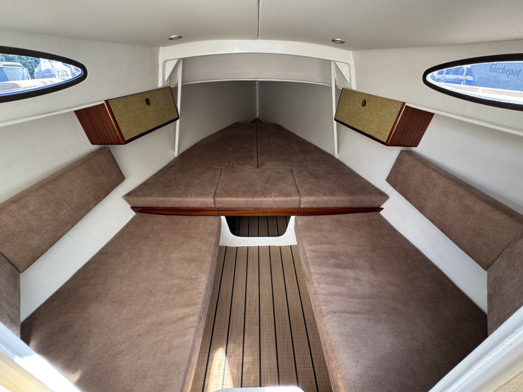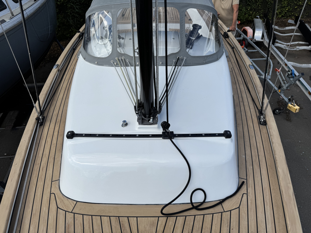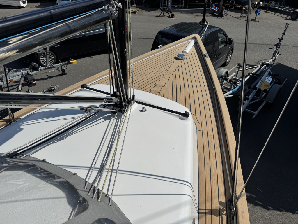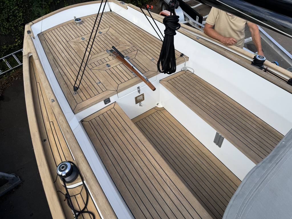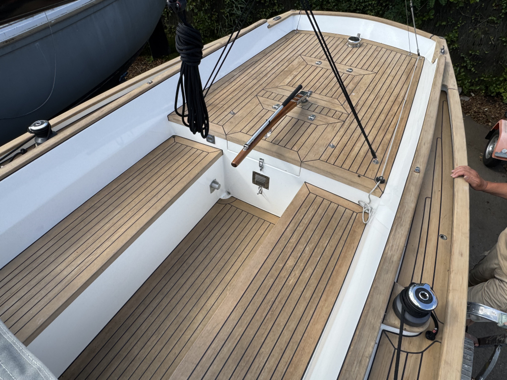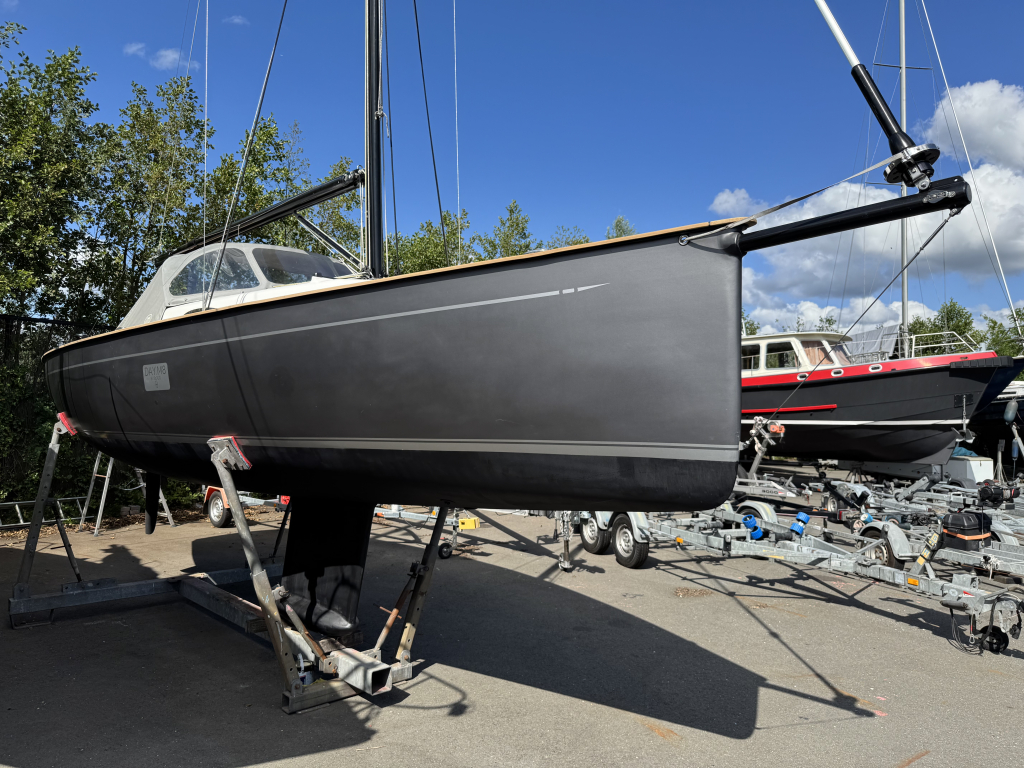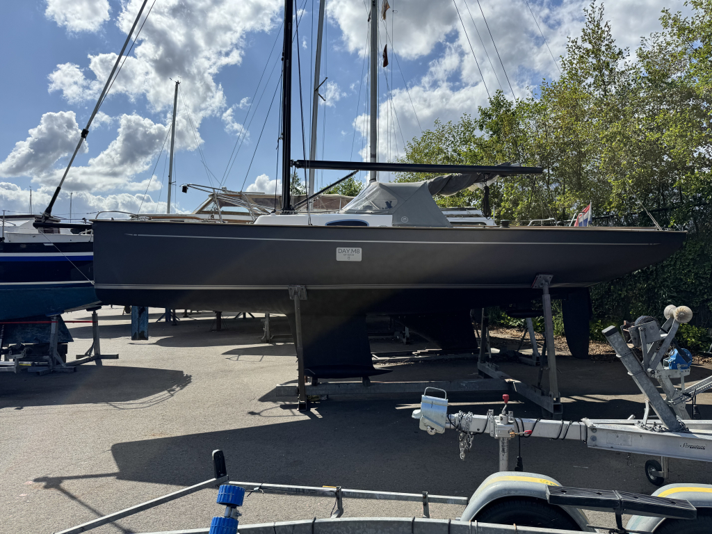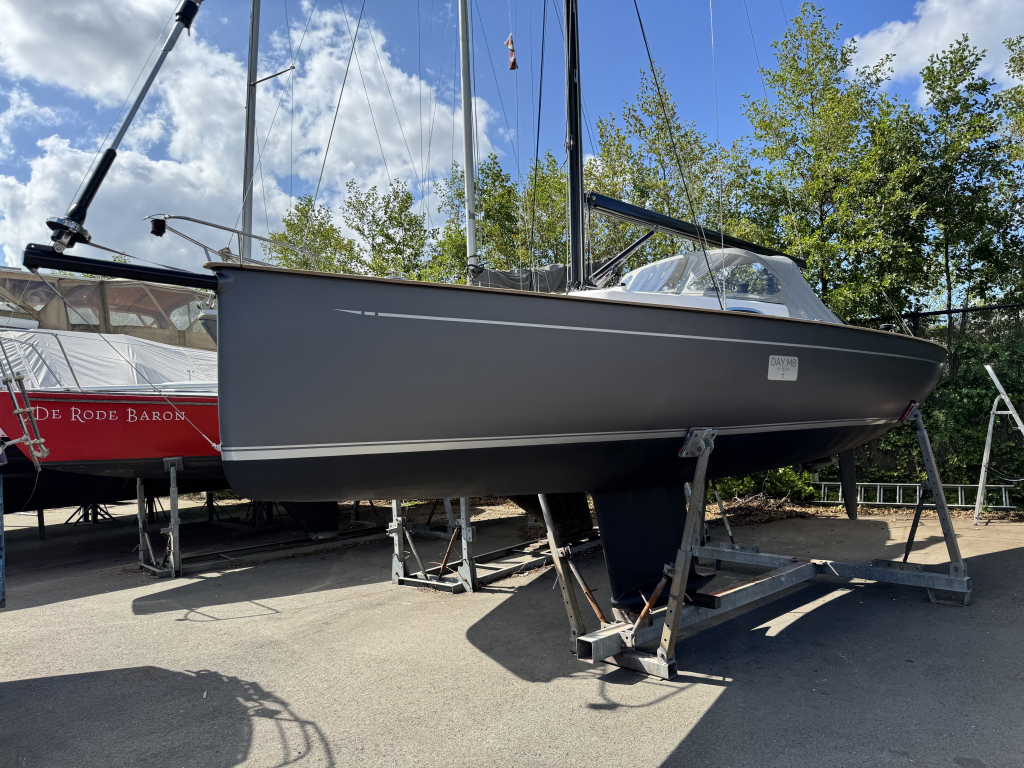 Prachtige Daysailer met polyester vol-glas romp en pvc sandwich dek geheel belegd met Flexi-teak. Krachtige Torqeedo inbouw elektro motor. Grijs mat metallic wrap op de romp en Flexiteek op het -dek, in de -kuip op -potdeksel en op de - kuiprand en inklapbare kikkers. Bijzonder ruime kuip met buiskap en aanritsbare kuiptent, helmstok met verlenger, 4x selftailing lieren, diepte en snelheid, stuurautomaat, maststrijk-boom, neerhaler. Mooie zeilen, grootzeil, rolfok met keerfok-installatie, spinnaker en gennaker, boegspriet. Ruime kajuit met vier slaapplaatsen (alle bedden langer dan 2 meter), heteluchtkachel, mogelijkheid voor uitschuifbaar chemisch of droog-toilet. Blad zeilen heeft de DAY.M8 diverse keren getest in diverse settings met veel en weinig wind en als zeer goed beoordeeld. De boot is goed trailerbaar met z'n 1450 kg. Te bezichtigen in de verkoophaven bij Wehmeyer te Naarden.