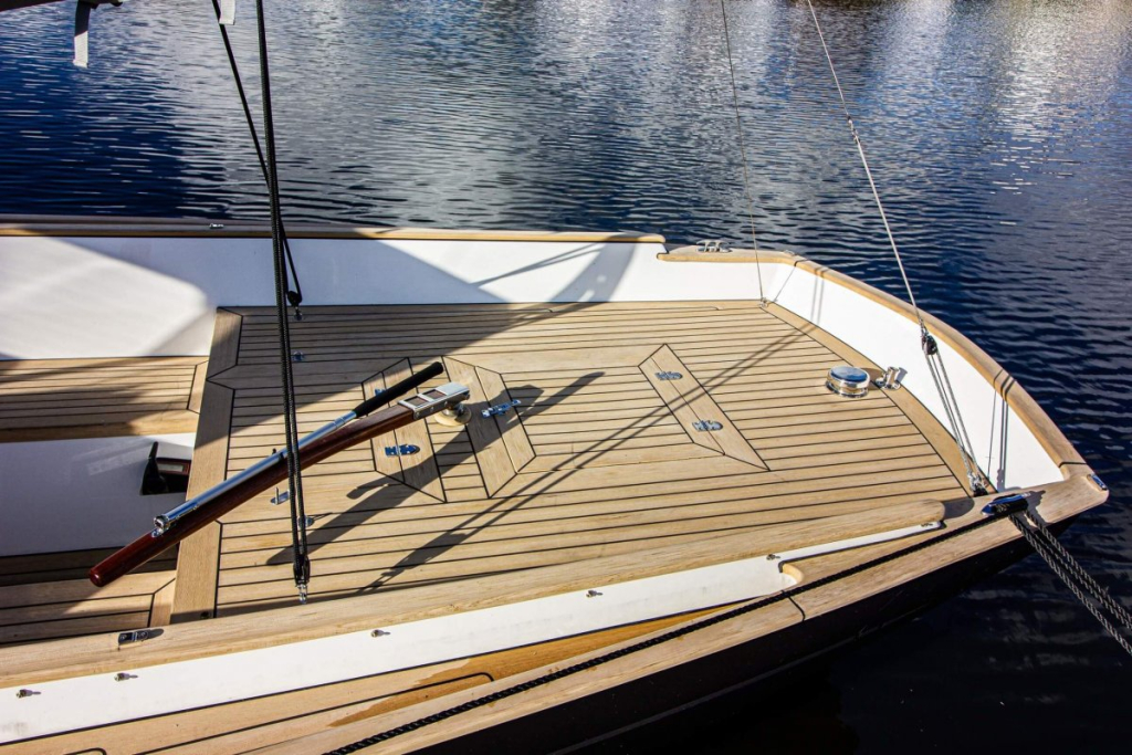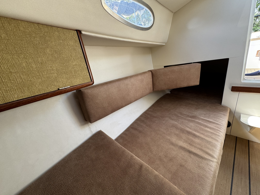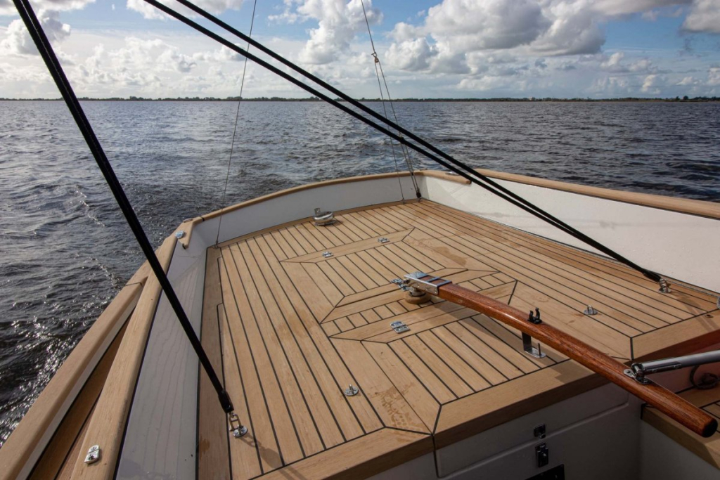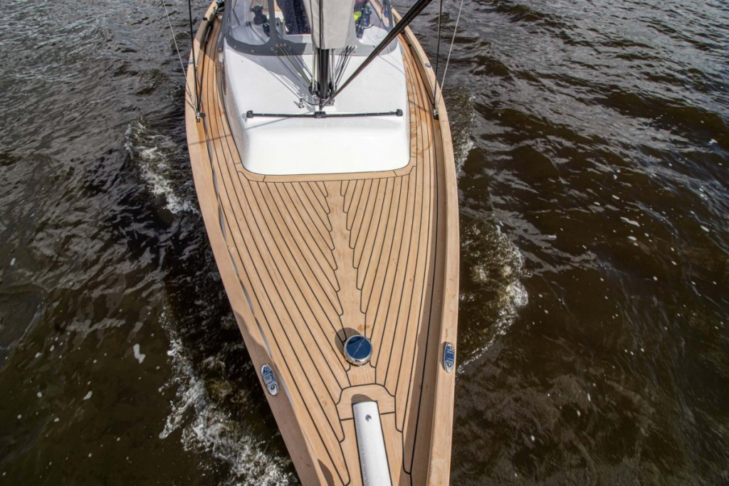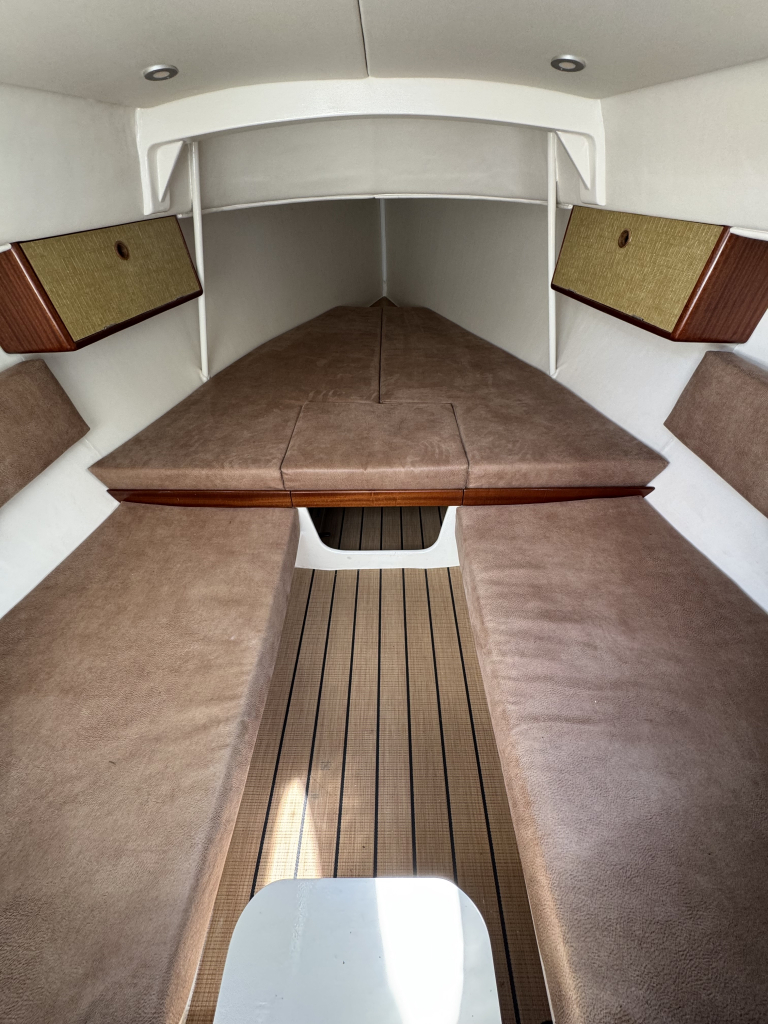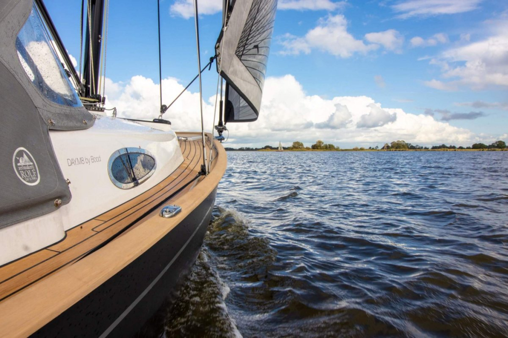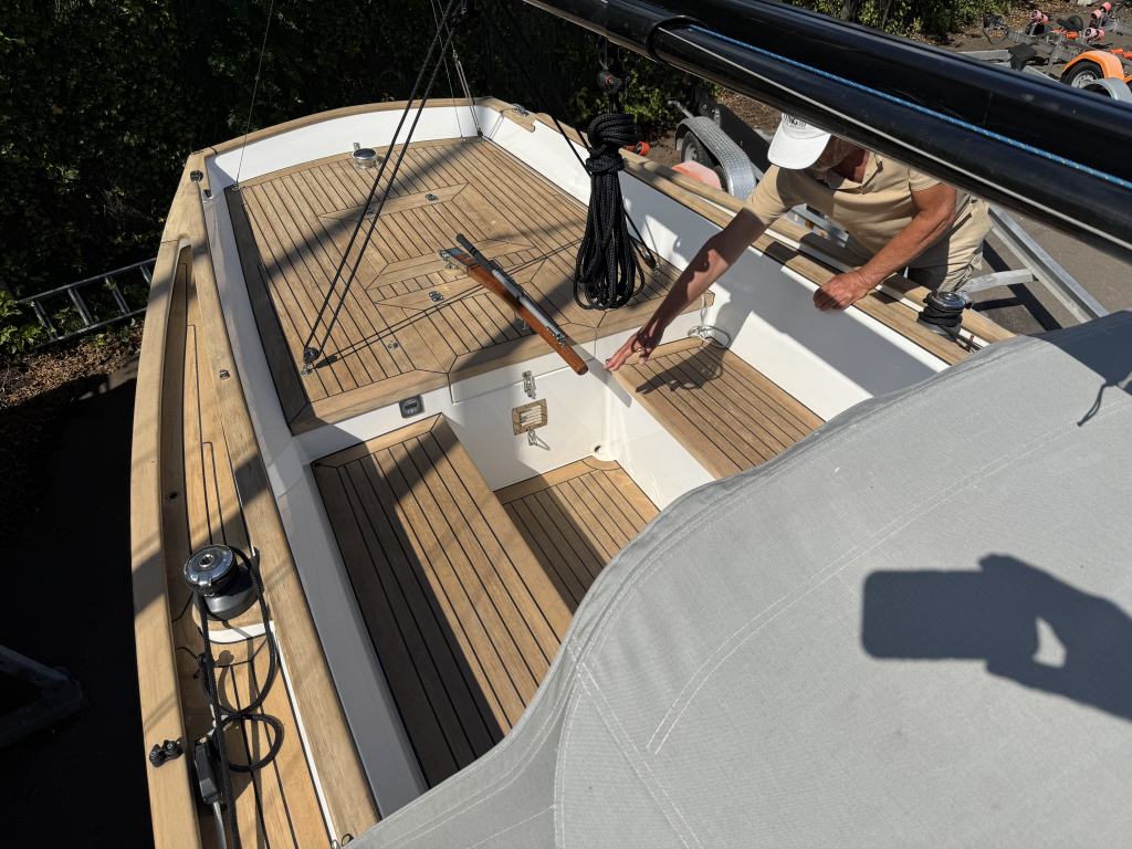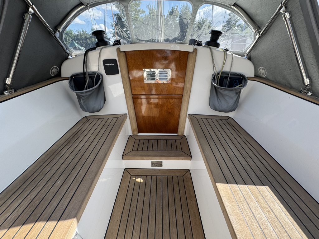 Prachtige Daysailer met polyester vol-glas romp en pvc sandwich dek geheel belegd met Flexi-teak. Krachtige Torqeedo inbouw elektro motor. Grijs mat metallic wrap op de romp en Flexiteek op het -dek, in de -kuip op -potdeksel en op de - kuiprand en inklapbare kikkers. Bijzonder ruime kuip met buiskap en aanritsbare kuiptent, helmstok met verlenger, 4x selftailing lieren, diepte en snelheid, stuurautomaat, maststrijk-boom, neerhaler. Mooie zeilen, grootzeil, rolfok met keerfok-installatie, spinnaker en gennaker, boegspriet. Ruime kajuit met vier slaapplaatsen (alle bedden langer dan 2 meter), heteluchtkachel, mogelijkheid voor uitschuifbaar chemisch of droog-toilet. Blad zeilen heeft de DAY.M8 diverse keren getest in diverse settings met veel en weinig wind en als zeer goed beoordeeld. De boot is goed trailerbaar met z'n 1450 kg. Te bezichtigen in de verkoophaven bij Wehmeyer te Naarden.