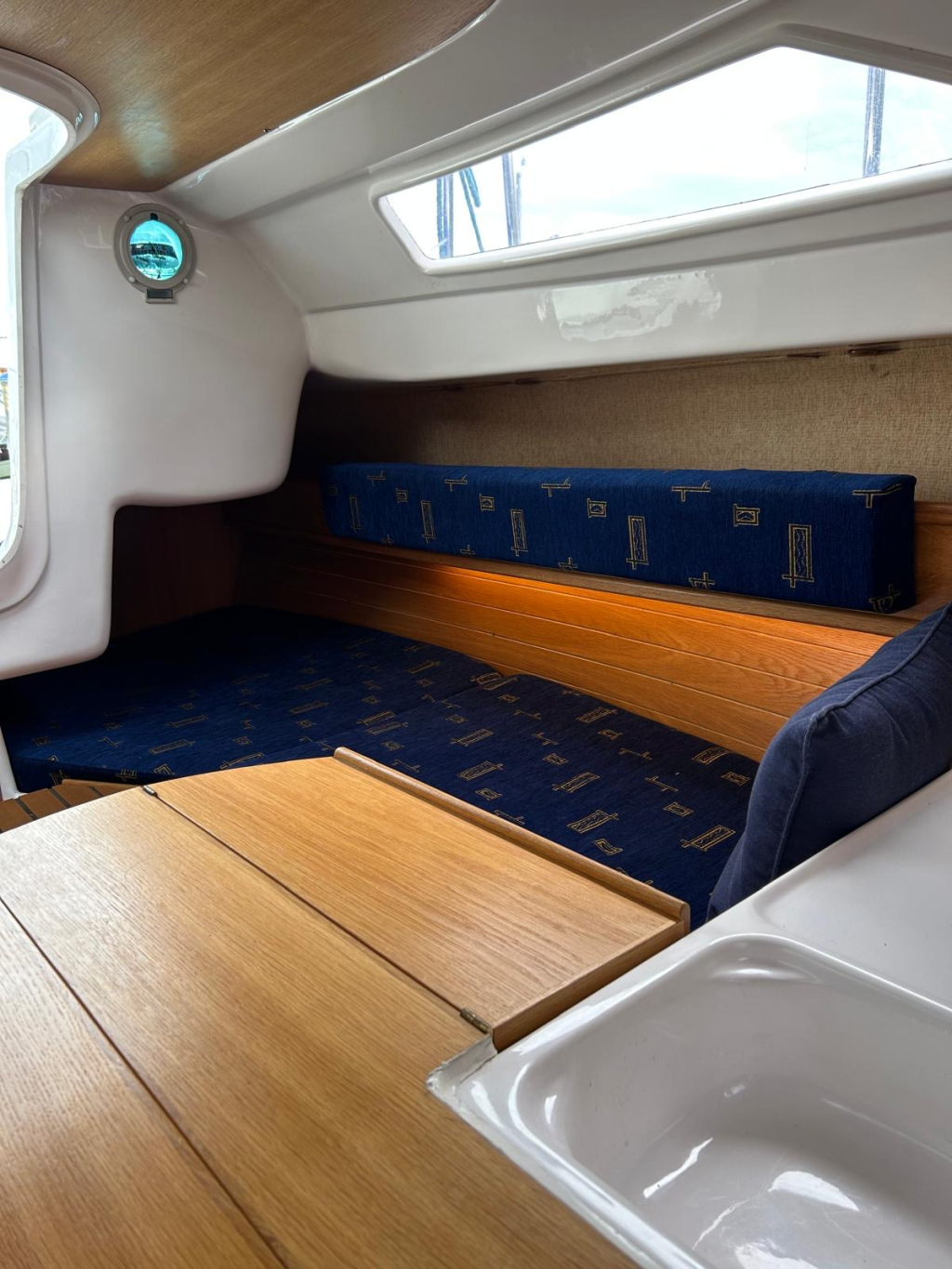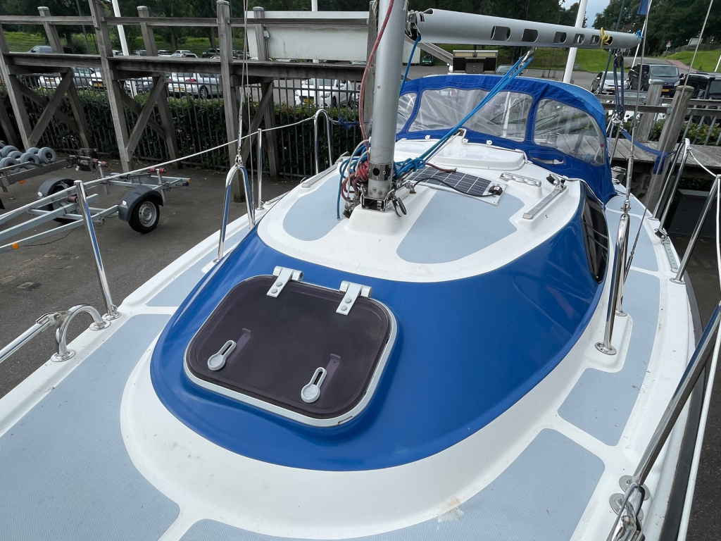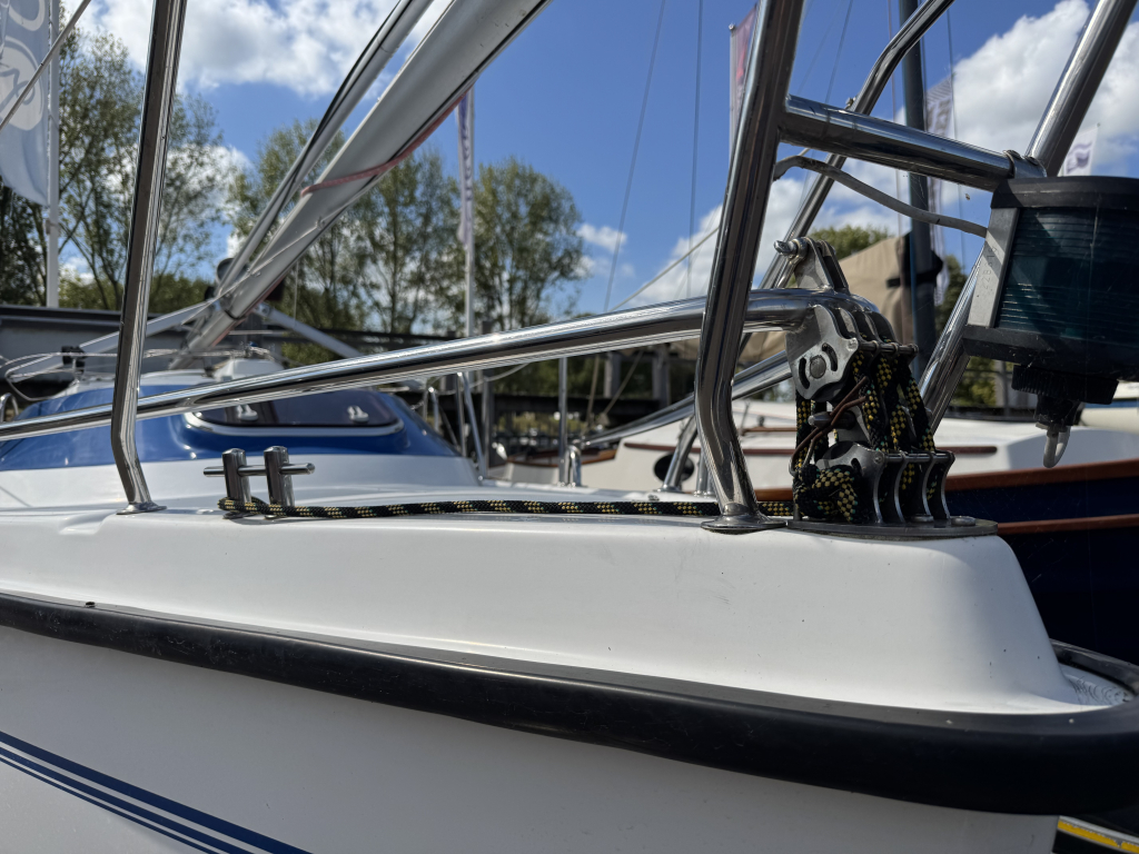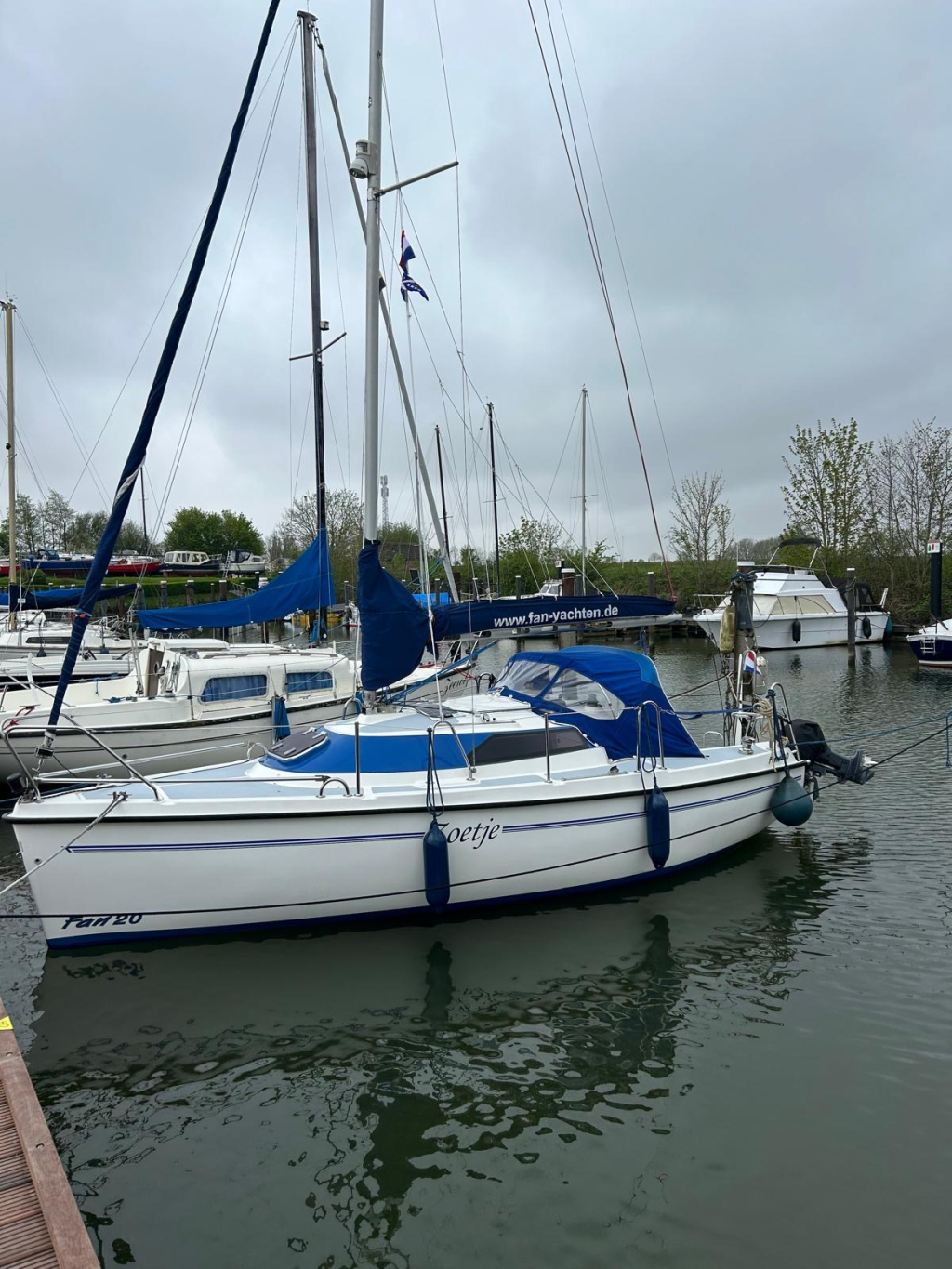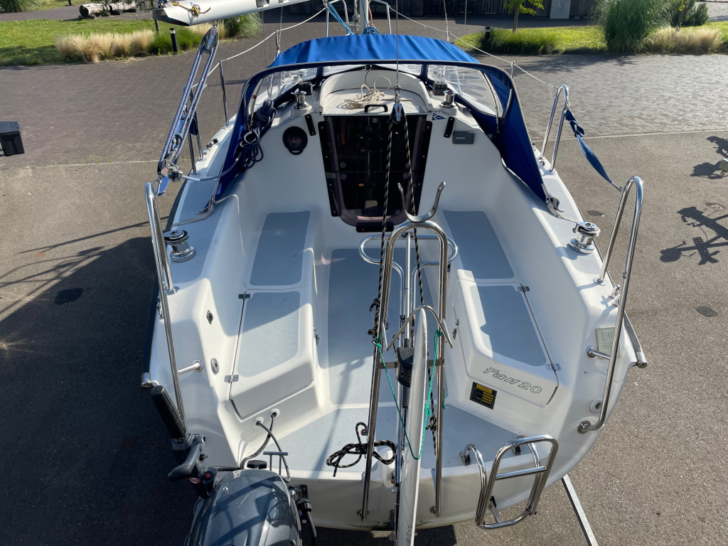 Net, sportief en trailerbaar zeiljacht met ophaalbare kiel (diepgang 0.25 - 1.30 m.). Nieuw geleverd aan Nederlandse eigenaar in april 2007. Nette weg-trailer (NL kenteken) en krachtige Yamaha 8 pk 4-takt (2014) elektr. start en motor-afstandsbediening. Motor, acculader en zonnepaneel laden de accu's. RVS maststrijk-installatie. Ideaal voor ondiepe maar ook grotere wateren. Eenvoudig te strijken en te traileren. U kunt eenvoudig droog-vallen met deze zeilboot. Verder heeft de Fan 20, grootzeil met lazy-jack, nieuwe rolgenua met UV-band(2024), zonnepaneel, walstroom, recente service accu, acculader, 220V en 12V aansluitingen, nieuw LED verlichting in kajuit, bedieningspaneel / dashboard, schot-kompas, dieptemeter, snelheidsmeter, stuurautomaat, navigatie verlichting, 4 slaapplaatsen, gootsteen met stromend water, ruime zelflozende kuip, kuip-kussens, 4x Andersen lieren, buiskap, ankerluik met anker, zwemtrap, enz. Aankoop factuur(2007) met CE-document en handboek zijn aanwezig. Ook aankoop trailer en motor(2014) zijn aanwezig. Facturen van onderhoud zijn aanwezig. Te bezichtigen bij Wehmeyer te Naarden.