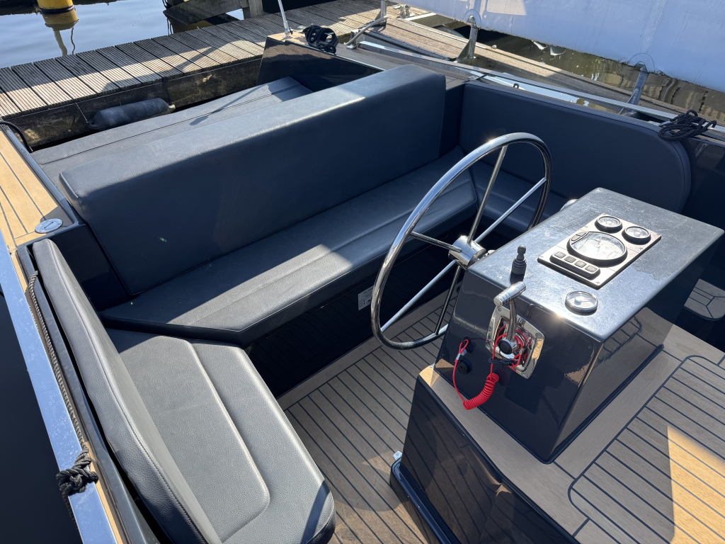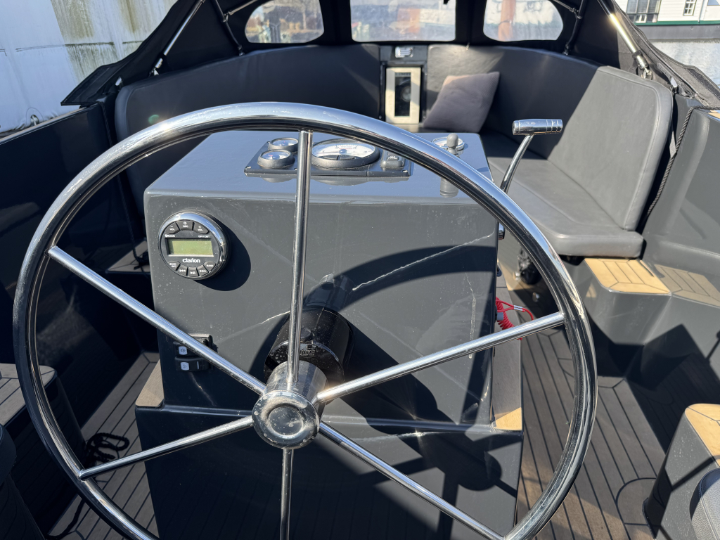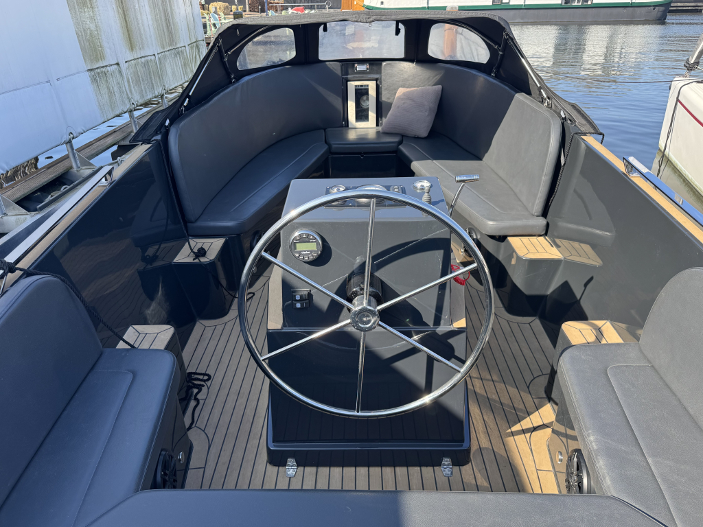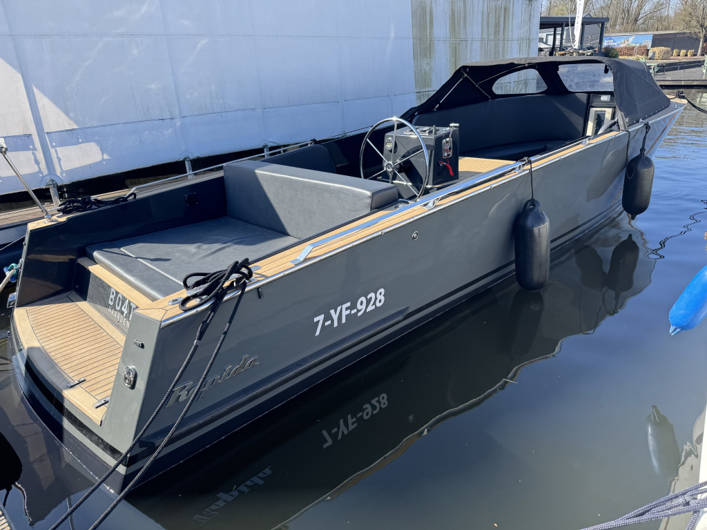 Van eerste eigenaar, een Isloep Rapida 750 "dark grey" uitvoering met 80 pk Yanmar motor met maar 147 vaaruren. De Rapida is een heel mooi gelijnd en strakke Tender met goede vaareigenschappen. De Rapida biedt veel comfort met een ruime rondzit en dubbel zonnedek. Ze is voorzien van hoogwaardige afwerking zoals een Flexiteek dek overall, zwemplateau, RVS details, hydraulische besturing en los toilet (nooit gebruikt). Deze Tender heeft als extra's de snelle en krachtige 80 pk Yanmar, boegschroef, een grote koelbox met compressor en een geïntegreerde wijnkoeler in de boeg, Clarion audio installatie, rvs zwemtrap, zonnedek, kunst leren bekleding, interieur verlichting, 12V en USB, 2x accu, donker grijze buiskap en afsluit-deel, rvs ski-oog, stootrand rond het achterschip. De Tender krijgt ieder jaar haar motorservice en staat iedere winter binnen in de hal. Te bezichtigen in de verkoophaven van Wehmeyer te Naarden.