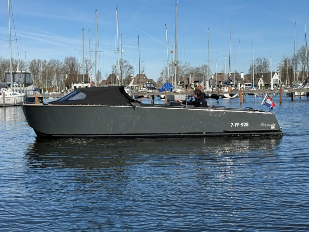 Van eerste eigenaar, een Isloep Rapida 750 "dark grey" uitvoering met 80 pk Yanmar motor met maar 147 vaaruren. De Rapida is een heel mooi gelijnd en strakke Tender met goede vaareigenschappen. De