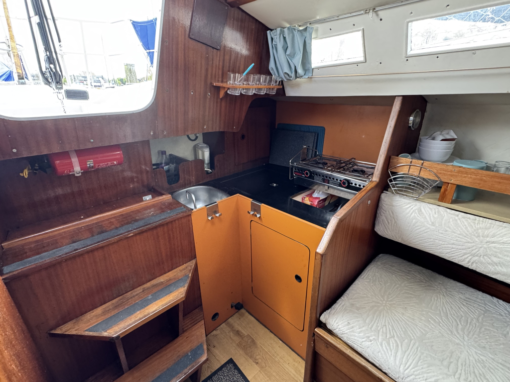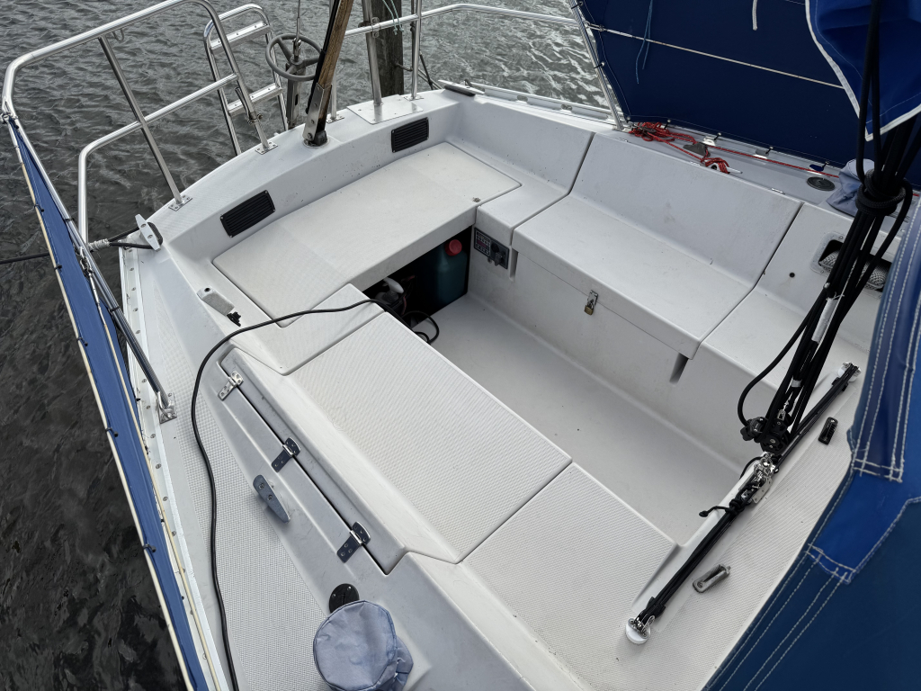 De Jeanneau Aquila is een goede, snelle en stabiele zeiler met grote kuip en ruime kajuit. Deze Jeanneau is uitgerust met jongere inboard diesel motor, veel nieuwe apparatuur zoals een Raymarine kaartplotter AXIOM 7 (2024), Raymarine i70S wind- snelheid en dieptemeter(2024), Raymarine stuurautomaat ST2000+ met afstandsbediening, Lowrance marifoon Link5, JRC radar Radio 1000. Vijf slaapplaatsen, afgesloten toiletruimte met pomp wc, keuken met cardanisch opgehangen kookstel, alle verlichting vervangen door LED, kaartentafel, 2x nieuwe service accu's(2024), Victron acculader/omvormer, walstroom, 12V aansluitpunten, stereo. Verder heeft dit zeiljacht een buiskap met nieuwe ramen(2024), Lewmar 2x selftailing singlespeed lieren (2024), 2x vallieren, Gleistein vallen en lijnen vervangen(2024), grootzeil, rolfok, spinnaker (alle in goede staat). Alle lijnen bedienbaar vanuit de kuip, ideaal voor solozeilers. De Jeanneau heeft een vaste ligplaats in Jachthaven Naarden die eventueel kan worden overgenomen. Te bezichtigen op afspraak via Wehmeyer te Naarden.