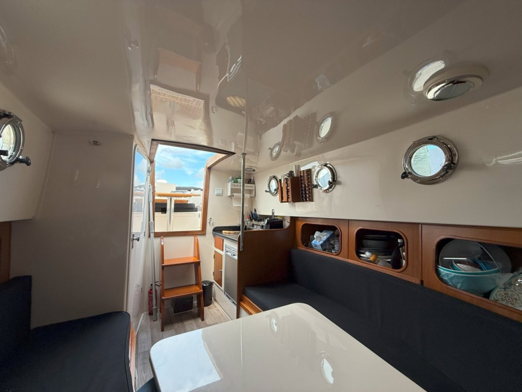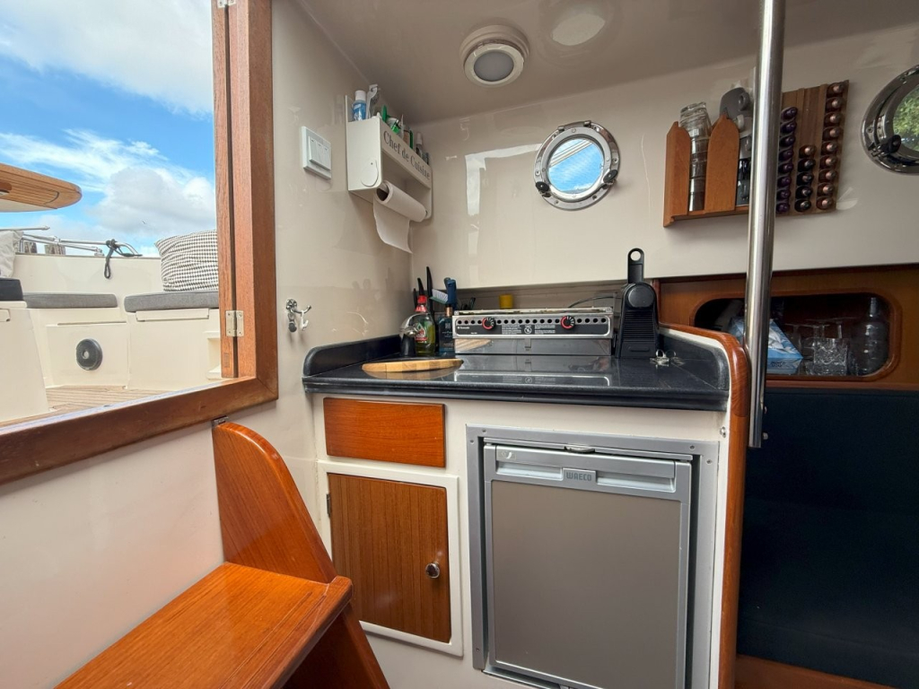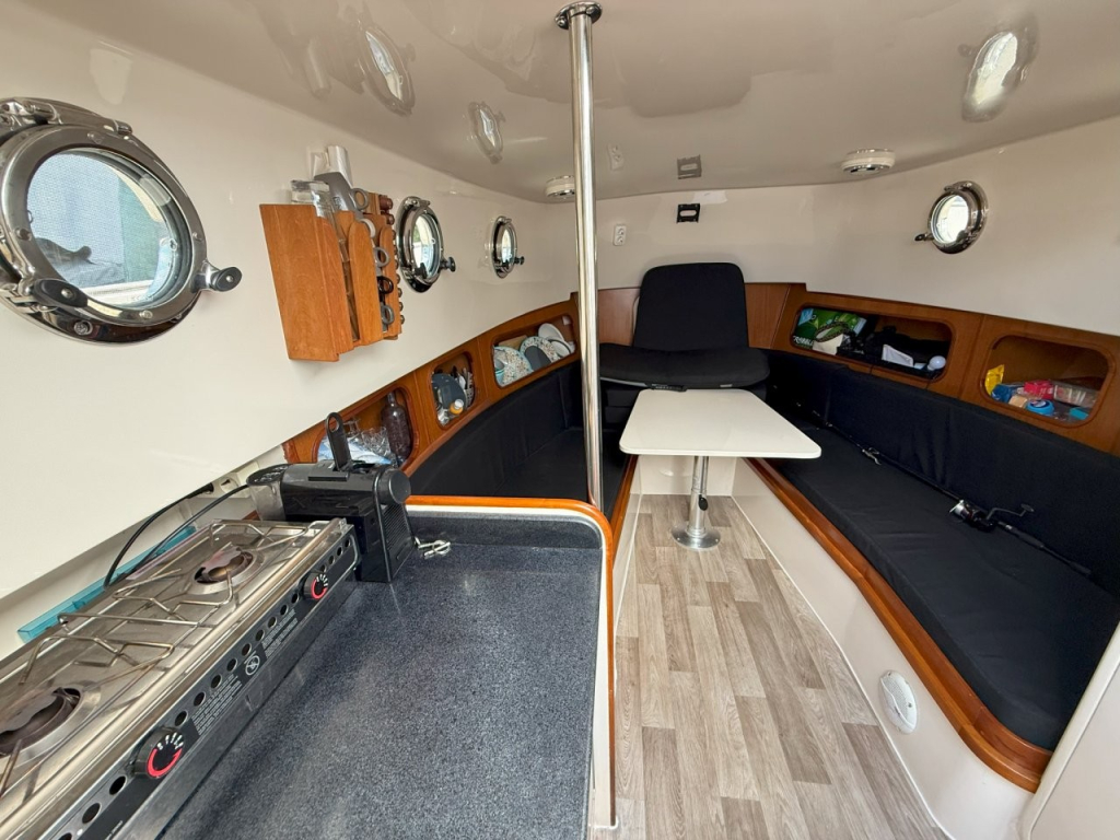 Mooie, ruime kajuitsloep, Lifestyle 960 Cabin van eerste eigenaar, 2015 te water, met krachtige Vetus 80 pk diesel, geïsoleerd motorhuis, massieve motorfundatie,