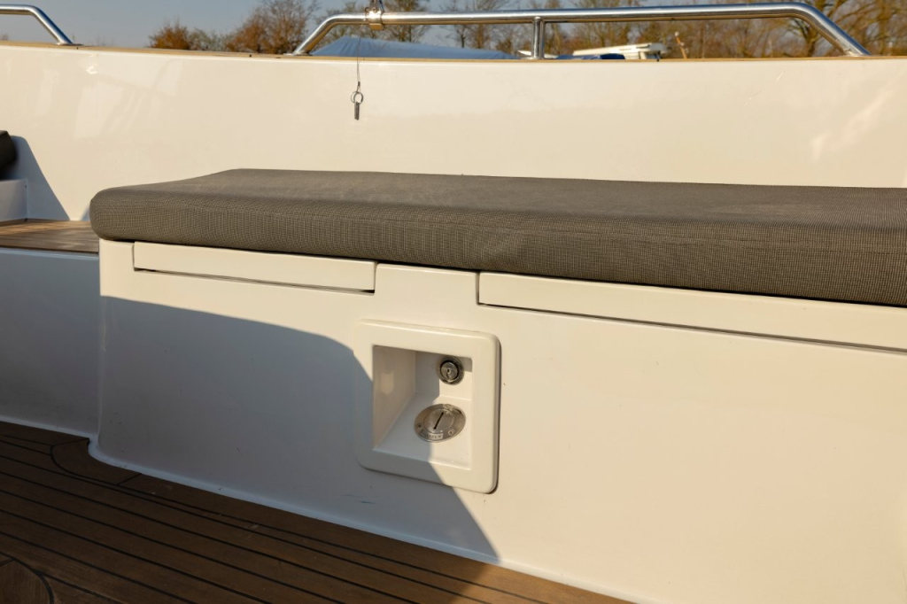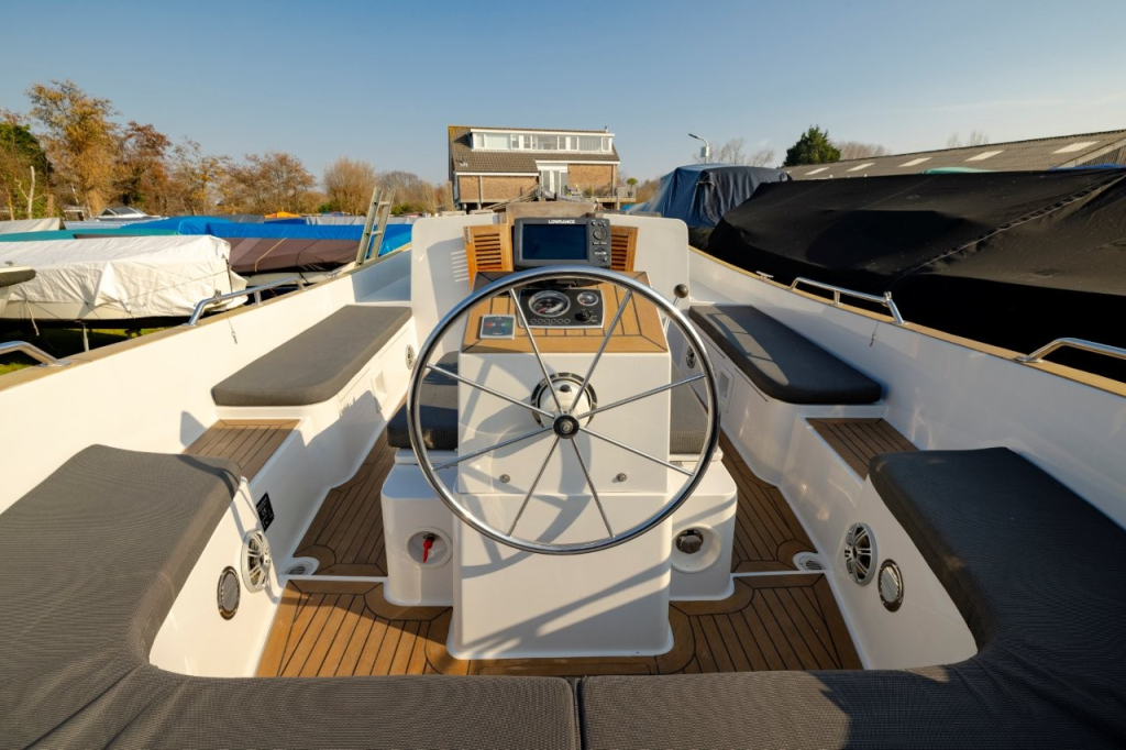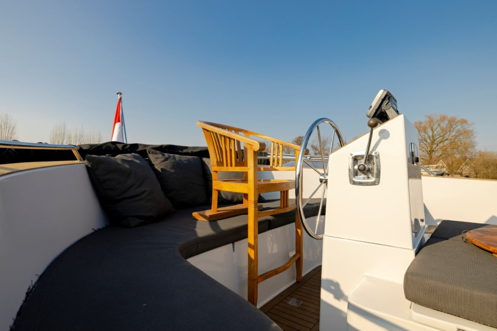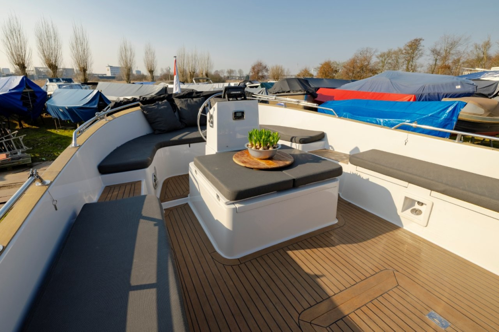 Mooie en ruime kajuitsloep, Lifestyle 960 Cabin van eerste eigenaar, bouwjaar 2011, uitgerust met een krachtige Vetus 80 pk dieselmotor, geïsoleerd motorhuis, massieve motorfundatie en watergesmeerde RVS schroefas met Python Drive. Voorzien van walstroom met 10 m kabel, 2x 100Ah accu’s en 12V/220V aansluitingen. Boegschroef, luxe stuurstand met RVS stuurwiel, Lowrange GPS Fishfinder kleuren plotter, ruime kuip met gestoffeerde grijze tweed kussenset, zonnedek en Polk Bluetooth stereo 200 watt met 4 speakers. In de kajuit een grote rondzit (om te bouwen tot tweepersoonsbed), teak parketvloer, koelkast en een afgesloten toiletruimte met elektrisch toilet met vuilwatertank, douche en wasbak. Verder 6 RVS patrijspoorten en veel bergruimte. Rondom voorzien van dikke kabelaring, teak op kuipvloer, instap en potdeksel. Met vaste trimvlakken, RVS zwemtrap, kikkers, railing, bekerhouders en boegstrip met sleep-/slotoog. Uitgerust met bimini-top, jaarlijks motoronderhoud en in de winter op de kant onder zwart winterdekzeil. Te bezichtigen op afspraak via Wehmeyer in Haarlem. Meer foto’s en informatie op www.wehmeyer.nl.