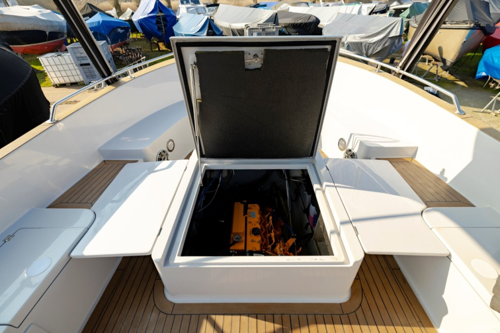 Mooie en ruime kajuitsloep, Lifestyle 960 Cabin van eerste eigenaar, bouwjaar 2011, uitgerust met een krachtige Vetus 80 pk dieselmotor, geïsoleerd motorhuis, massieve motorfundatie en watergesmee