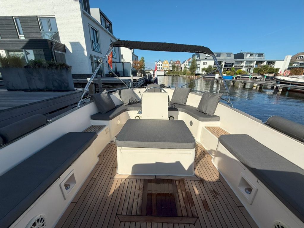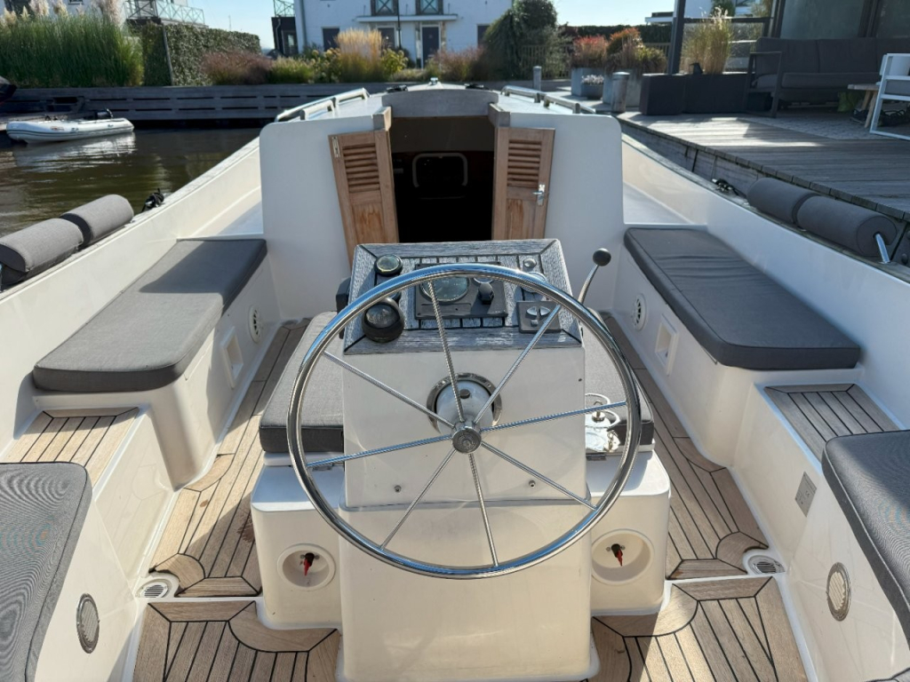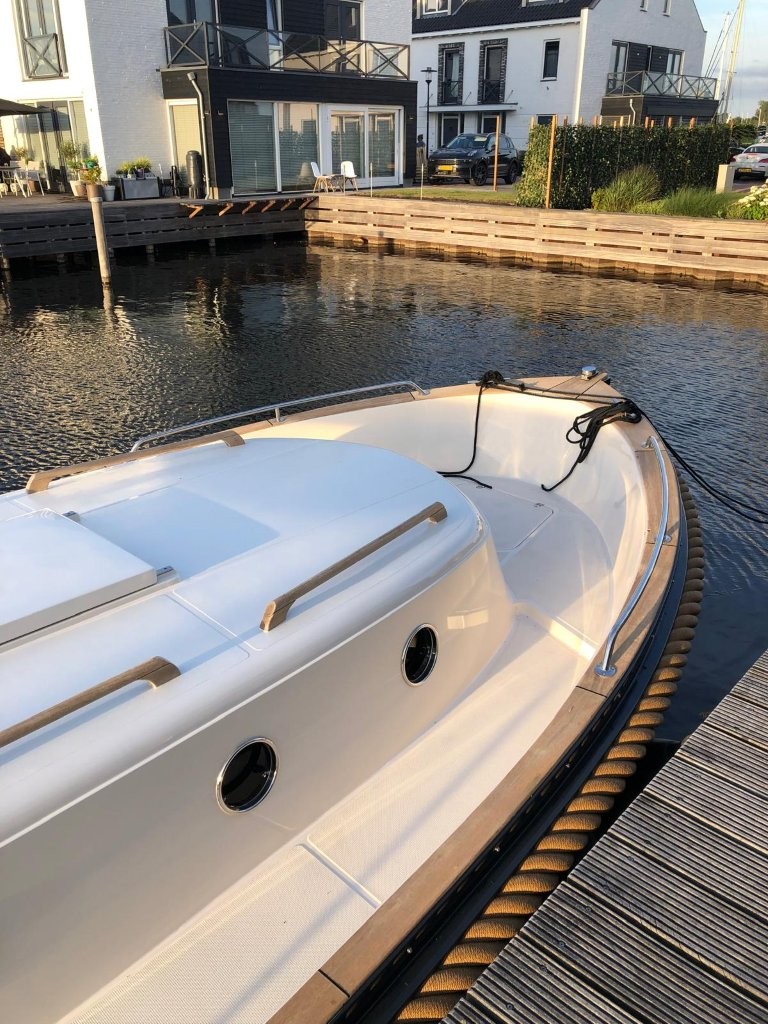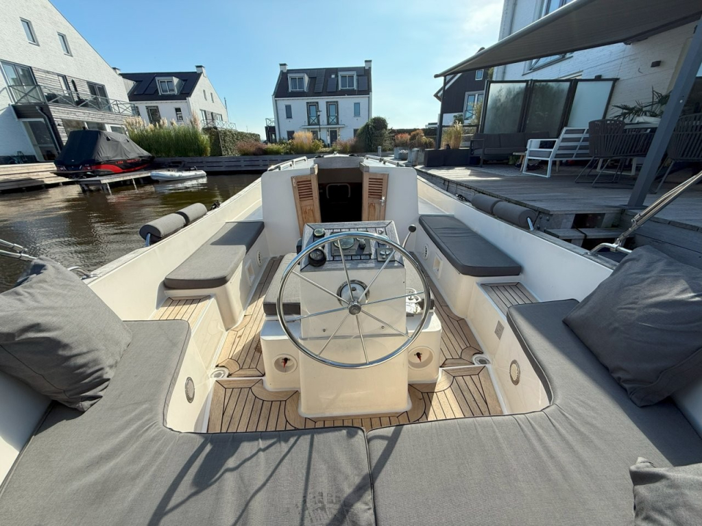 Mooie en ruime kajuitsloep, Lifestyle 960 Cabin van eerste eigenaar, bouwjaar 2011, uitgerust met een krachtige Vetus 80 pk dieselmotor voor snelheden tot 20 km/uur, geïsoleerd motorhuis, massieve motorfundatie en watergesmeerde RVS schroefas met Python Drive. Voorzien van walstroom met 10 m kabel, 3x 100Ah accu’s en 2x 12V/220V aansluitingen. Boegschroef (Vetus Bow-75), luxe stuurstand met RVS stuurwiel, ruime kuip met gestoffeerde zwarte kussenset, rolrugkussens, zonnedek en Boss Bluetooth stereo met 4 speakers. In de kajuit een grote rondzit (om te bouwen tot tweepersoonsbed), parketvloer, koelkast en een afgesloten toiletruimte met chemisch toilet, douche en wasbak. Verder 6 RVS patrijspoorten en veel bergruimte. Rondom voorzien van dikke kabelaring, teak op kuipvloer, instap en potdeksel. Met vaste trimvlakken, RVS zwemtrap, kikkers, railing, bekerhouders en boegstrip met sleep-/slotoog. Uitgerust met zwarte bimini-top en altijd goed onderhouden. Op afspraak te bezichtigen in Loosdrecht via Wehmeyer Yacht Brokers, www.wehmeyer.nl.