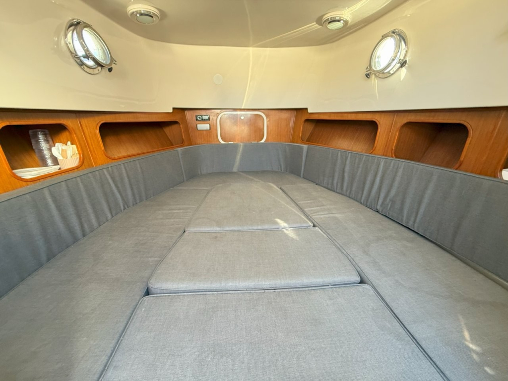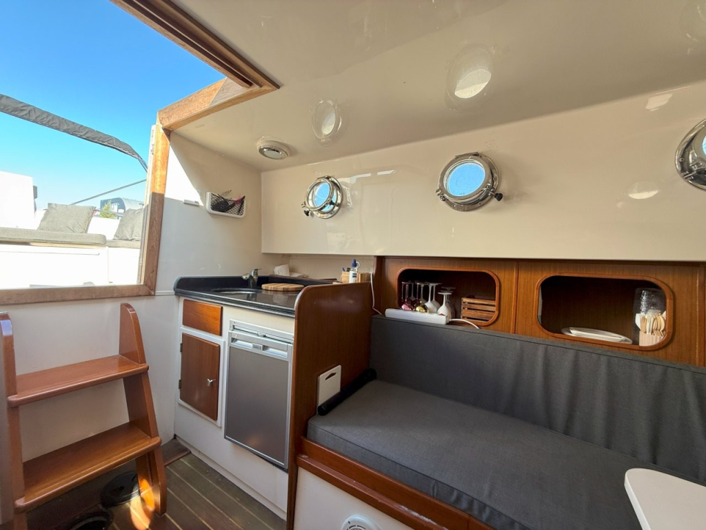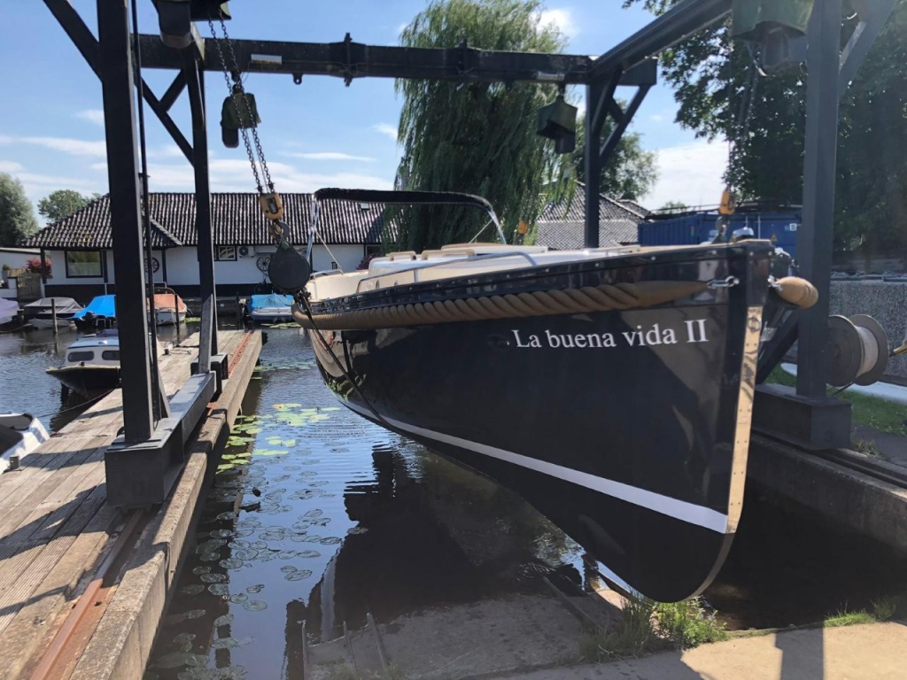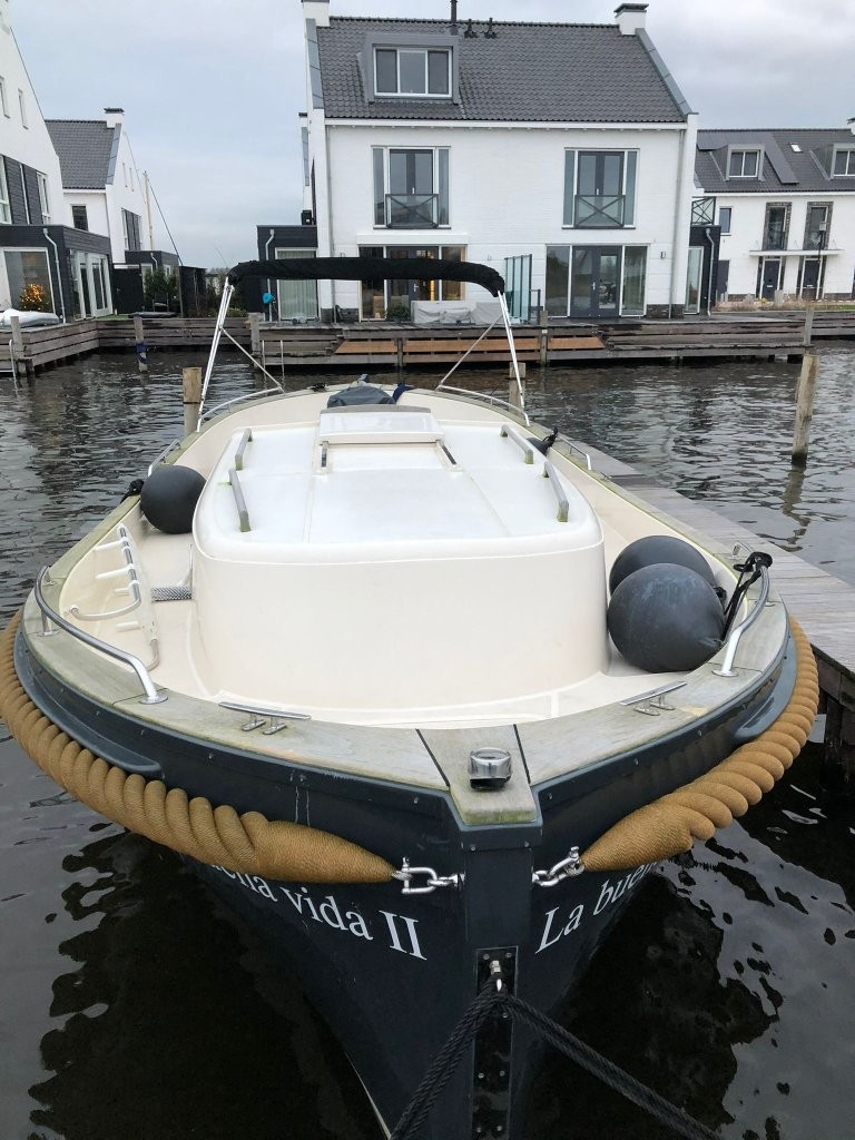 Mooie en ruime kajuitsloep, Lifestyle 960 Cabin van eerste eigenaar, bouwjaar 2011, uitgerust met een krachtige Vetus 80 pk dieselmotor voor snelheden tot 20 km/uur, geïsoleerd motorhuis, massieve motorfundatie en watergesmeerde RVS schroefas met Python Drive. Voorzien van walstroom met 10 m kabel, 3x 100Ah accu’s en 2x 12V/220V aansluitingen. Boegschroef (Vetus Bow-75), luxe stuurstand met RVS stuurwiel, ruime kuip met gestoffeerde zwarte kussenset, rolrugkussens, zonnedek en Boss Bluetooth stereo met 4 speakers. In de kajuit een grote rondzit (om te bouwen tot tweepersoonsbed), parketvloer, koelkast en een afgesloten toiletruimte met chemisch toilet, douche en wasbak. Verder 6 RVS patrijspoorten en veel bergruimte. Rondom voorzien van dikke kabelaring, teak op kuipvloer, instap en potdeksel. Met vaste trimvlakken, RVS zwemtrap, kikkers, railing, bekerhouders en boegstrip met sleep-/slotoog. Uitgerust met zwarte bimini-top en altijd goed onderhouden. Op afspraak te bezichtigen in Loosdrecht via Wehmeyer Yacht Brokers, www.wehmeyer.nl.