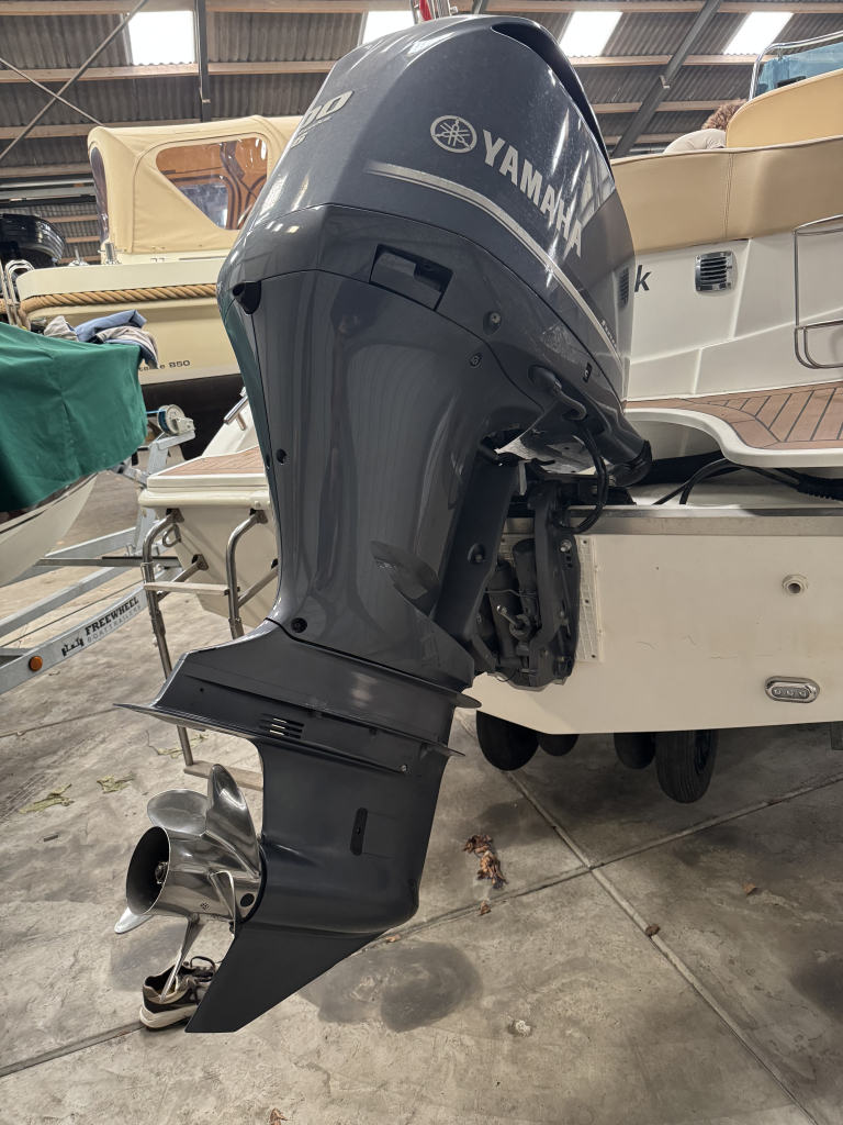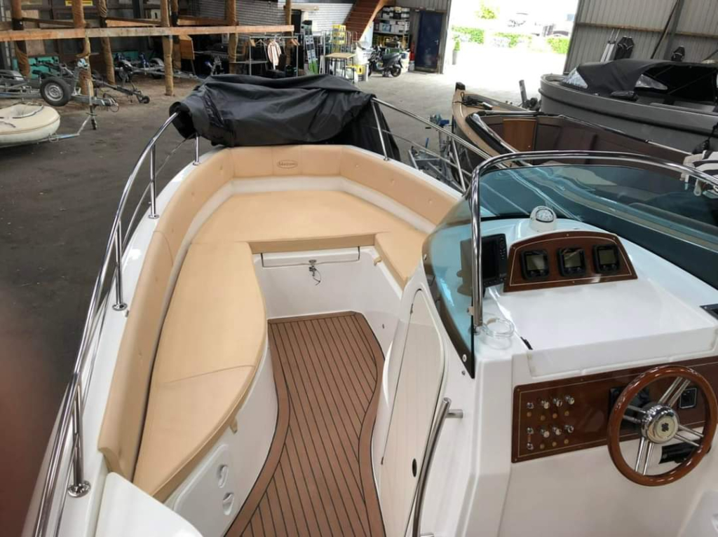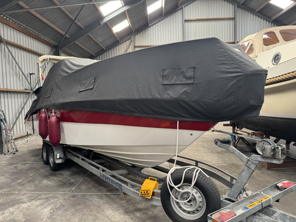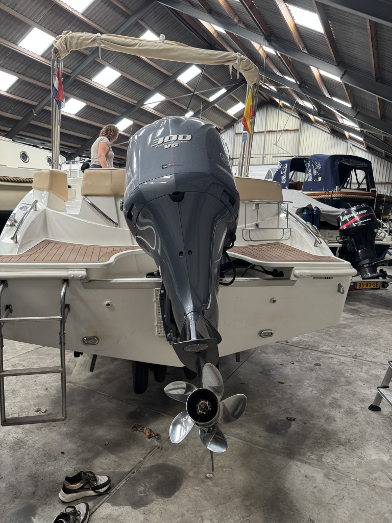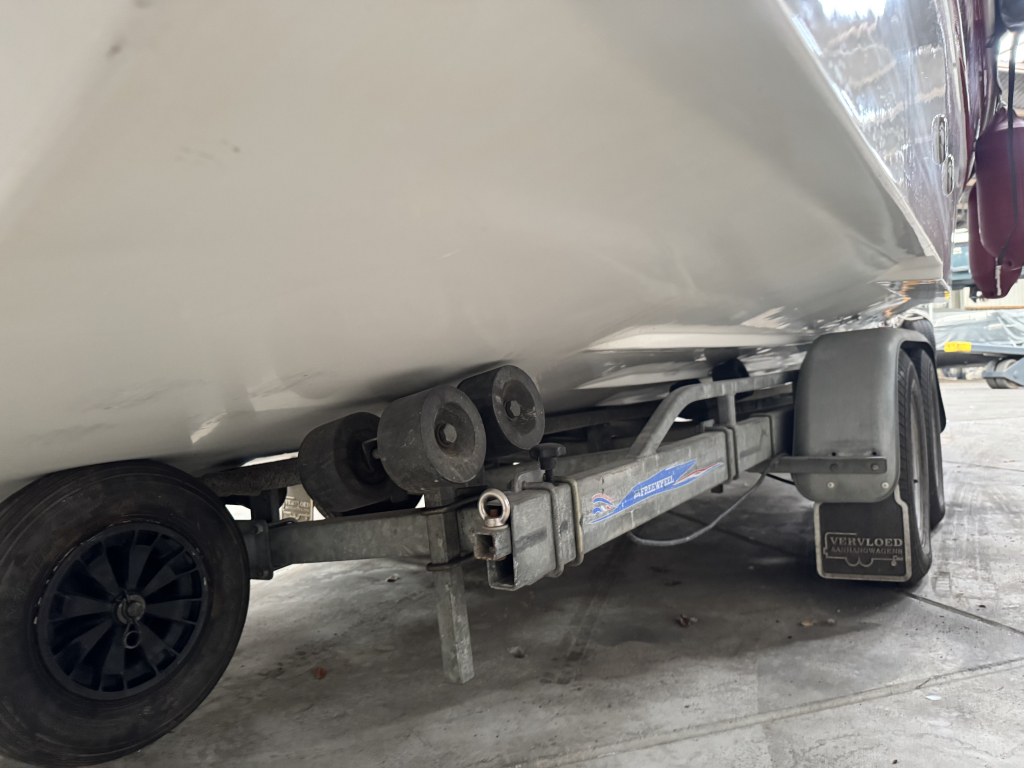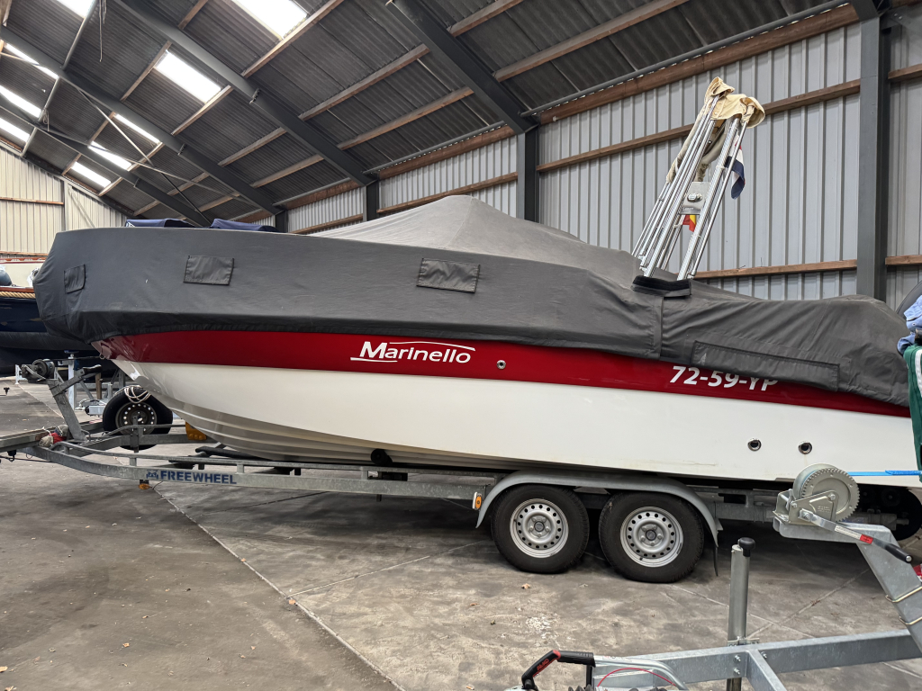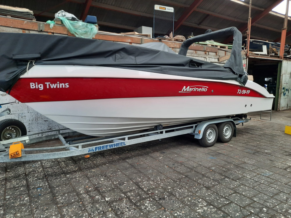 Van 1ste eigenaar; hele nette console boot met tandem-as trailer en Yamaha 300 pk V6((2013) met maar 534 vaaruren. De Marinello Eden 26 is een fijn en snel varende boot maar ook rustig toeren gaat heel prettig. Ruime kuip, flexi-teak op vloer en zwemplateau, verlichting bij -kuipvloer -onder RVS radarbeugel en -onderwater bij zwemplateau, zonnedek plus achter een rond zit die ook als zonnedek omgebouwd kan worden, tafel bij de rond zit, aanrecht met koelkast, gas-comfort en gootsteen en stromend water, toiletruimte met elektr. toilet en fontein, elektr. ankerlier, dubbele bimini-top, RVS brandstoftank 275 liter, watertank, douche, stereo, kompas, diepte- en snelheidsmeter, motor gegevens, tankinhoud, etc. 2x accu’s met relais, RVS fender-rek, dek-kleed over gehele boot (ook voor transport). De Marinello 26 heeft totaal 5x twee weken in het water gelegen Kroatië en Italië en verder in de staling op haar trailer. Altijd motor en boot afgespoeld en doorgespoeld met zoetwater. Laatste beurt gehad eind 2024 daarna nauwelijks nog mee gevaren. Tandem-as trailer (2800 kg) 2011. Te bezichtigen op afspraak met Wehmeyer in loods te Katwijk.