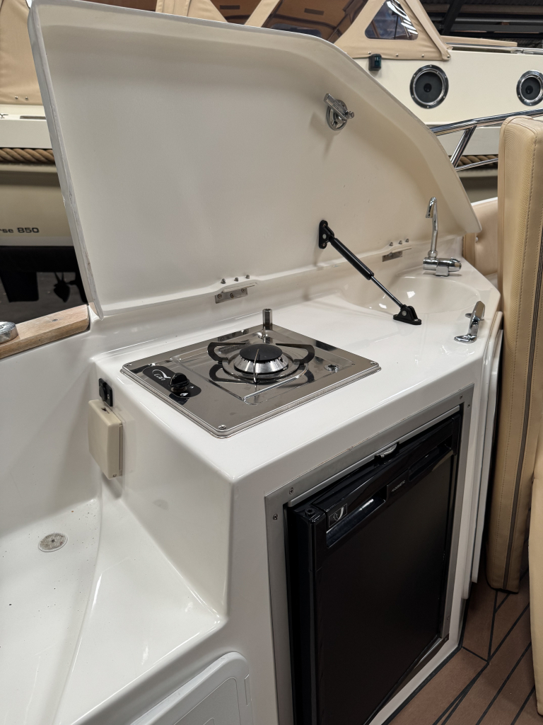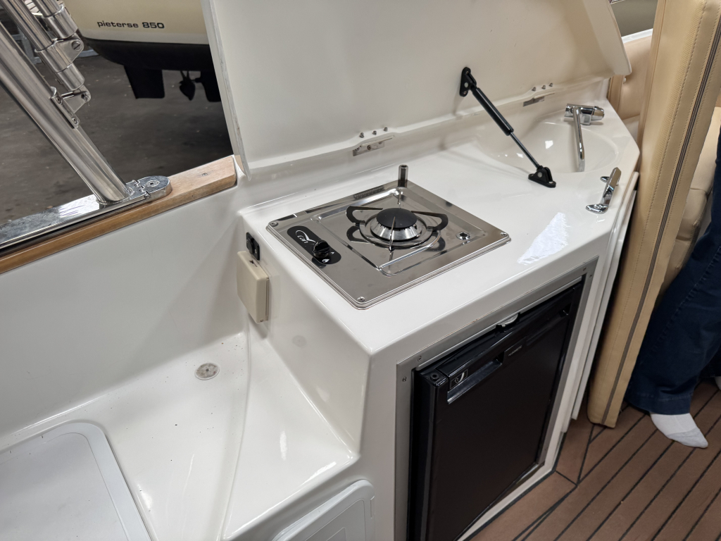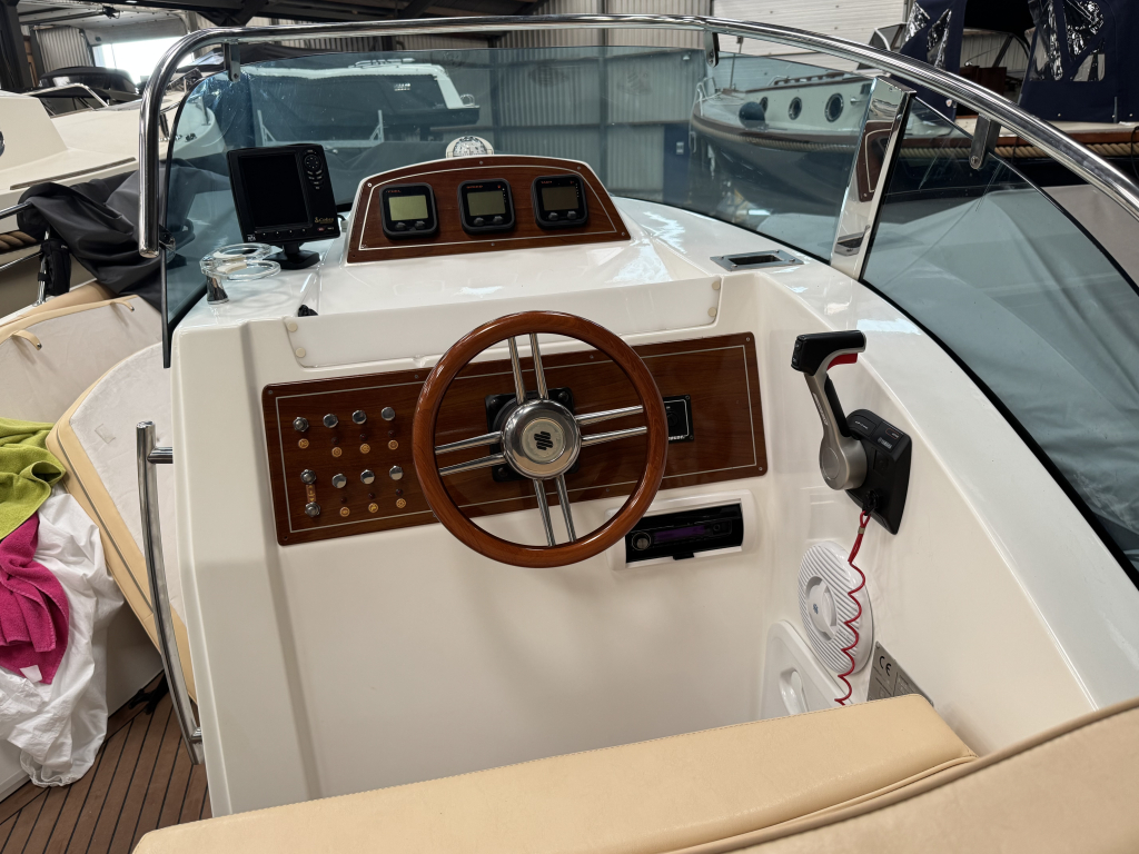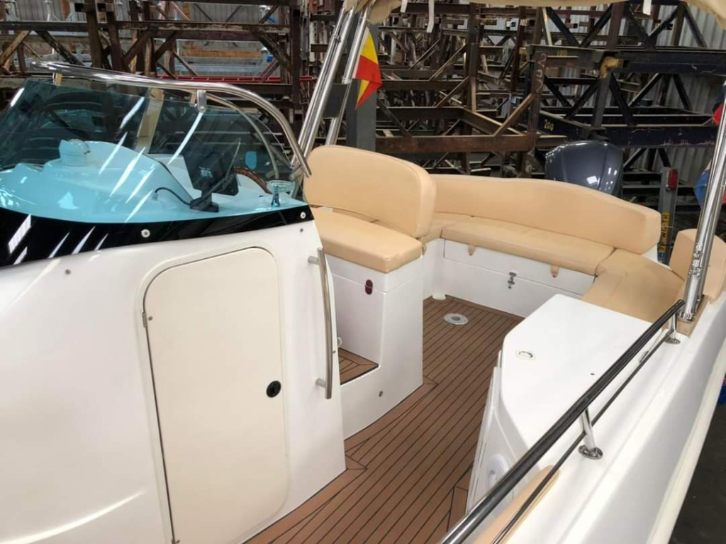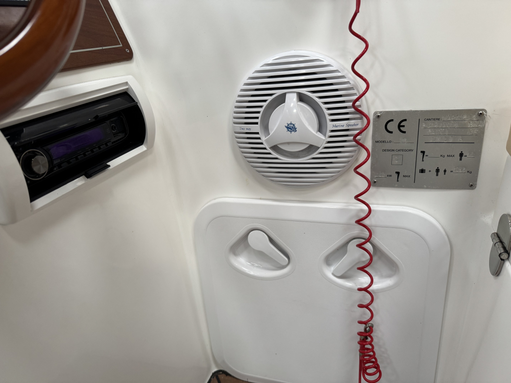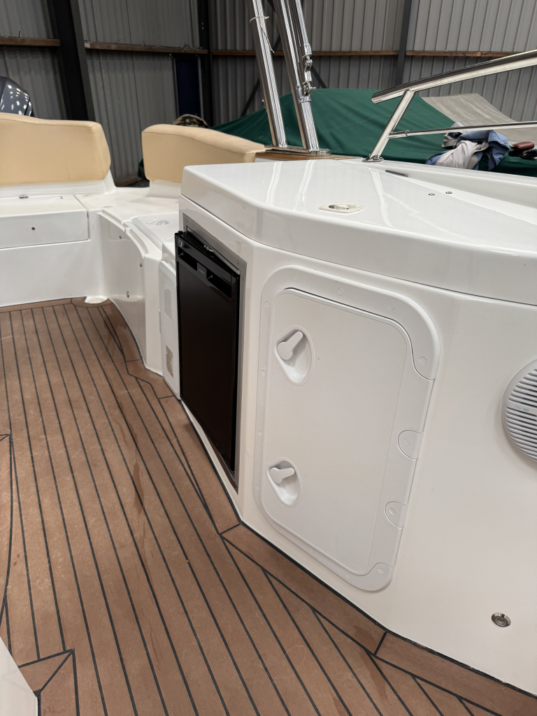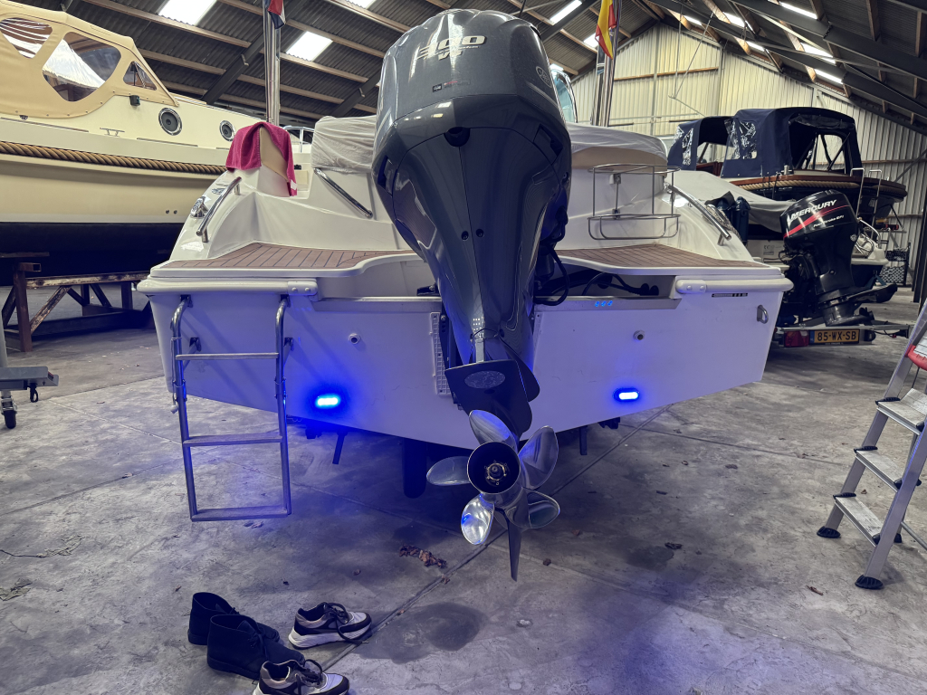 Van 1ste eigenaar; hele nette console boot met tandem-as trailer en Yamaha 300 pk V6((2013) met maar 534 vaaruren. De Marinello Eden 26 is een fijn en snel varende boot maar ook rustig toeren gaat heel prettig. Ruime kuip, flexi-teak op vloer en zwemplateau, verlichting bij -kuipvloer -onder RVS radarbeugel en -onderwater bij zwemplateau, zonnedek plus achter een rond zit die ook als zonnedek omgebouwd kan worden, tafel bij de rond zit, aanrecht met koelkast, gas-comfort en gootsteen en stromend water, toiletruimte met elektr. toilet en fontein, elektr. ankerlier, dubbele bimini-top, RVS brandstoftank 275 liter, watertank, douche, stereo, kompas, diepte- en snelheidsmeter, motor gegevens, tankinhoud, etc. 2x accu’s met relais, RVS fender-rek, dek-kleed over gehele boot (ook voor transport). De Marinello 26 heeft totaal 5x twee weken in het water gelegen Kroatië en Italië en verder in de staling op haar trailer. Altijd motor en boot afgespoeld en doorgespoeld met zoetwater. Laatste beurt gehad eind 2024 daarna nauwelijks nog mee gevaren. Tandem-as trailer (2800 kg) 2011. Te bezichtigen op afspraak met Wehmeyer in loods te Katwijk.