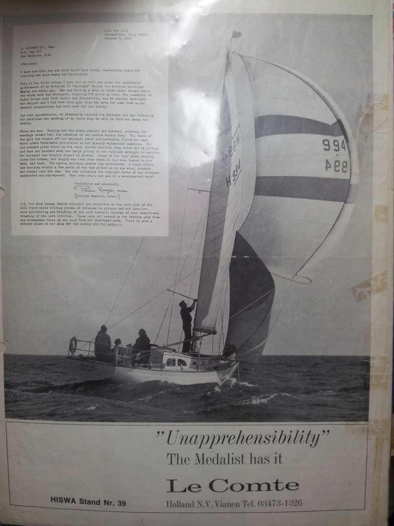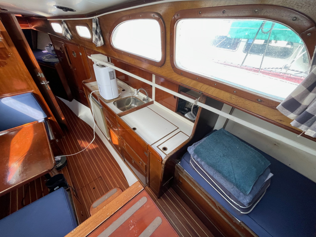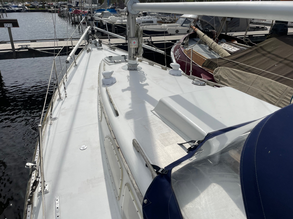 De Medalist 33 MK2 is een prachtig S-spant / lang-kiel ontwerp van William H. Tripp Jr.(USA). Ze werden destijds gebouwd door Le Comte scheepswerf in Vianen(NL) en in Amerika te Newport. Gebouwd met stabiele en goede zeileigenschappen voor langere tochen. Dit mooie zeiljacht heeft een jongere 30 pk intercooiling diesel(2008), nieuwe buiskap en kuiptent (2023), nieuw motor instrumenten board (2023), de mast en giek zijn (2004), de Tacktick wind- diepte en log(2008), marifoon en Plotter ook (2008). Verder heeft dit zeiljacht 6 slaapplaatsen, goede sta-hoogte, keuken met koelkast en kooktoestel, leuke U-zit, hondekooien, pomp toilet, walstroom, acculader, elektr. bilgepomp, zonnige salon, rol-grootzeil, rol-genua, fok, stormfok, bolle-jan, spi-boom, ankerlier, ruime kuip met stuurwiel en teak, zwemtrap, etc. Te bezichtigen op afspraak bij Wehmeyer te Naarden.