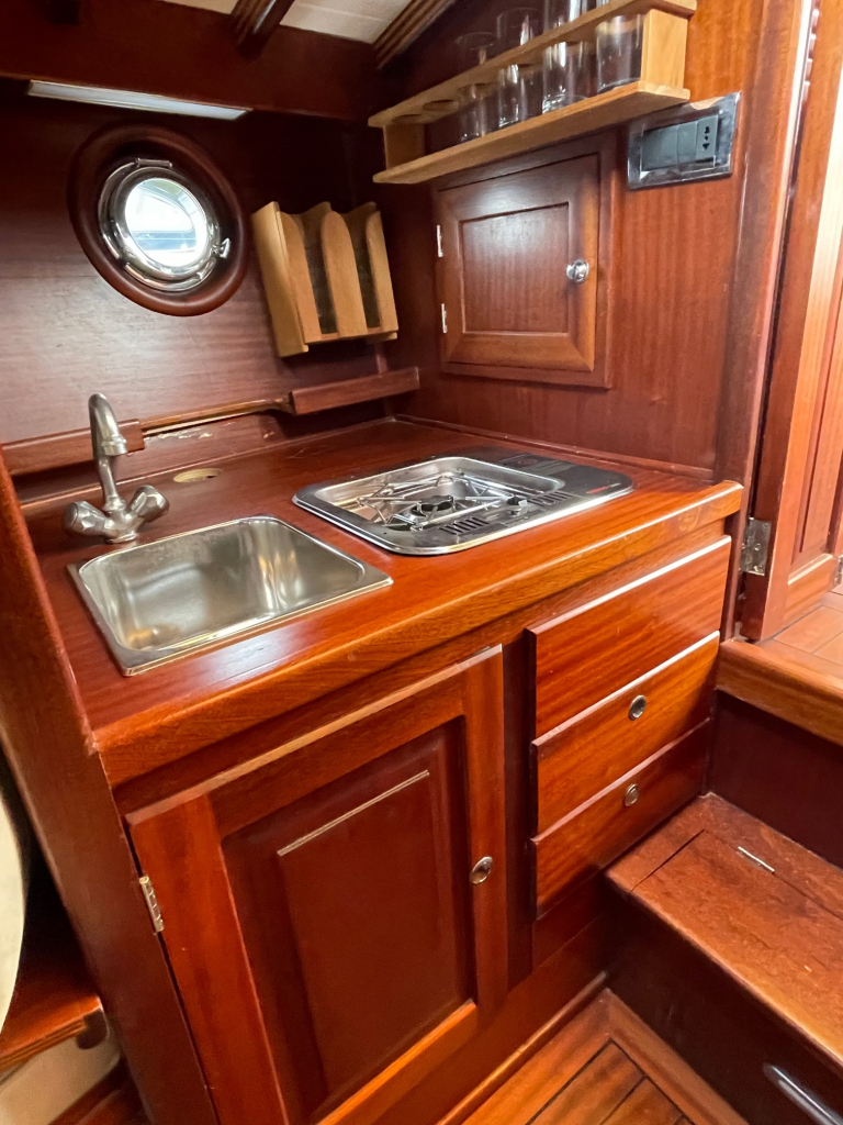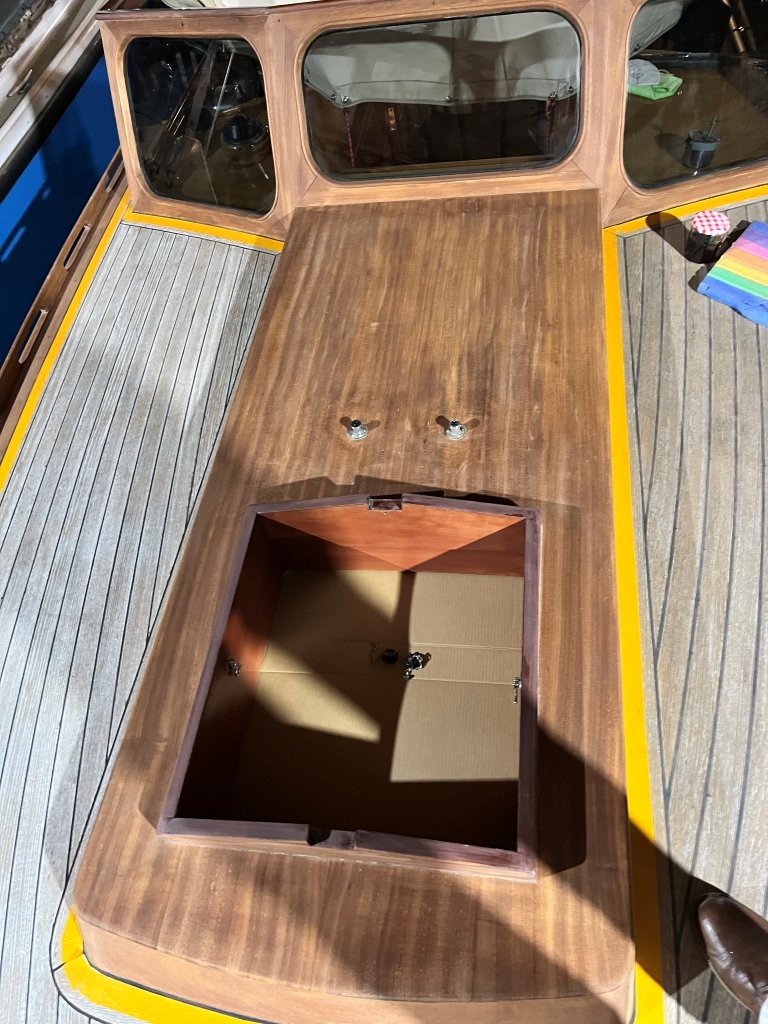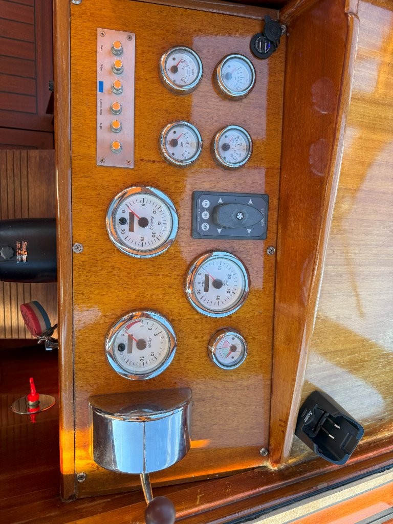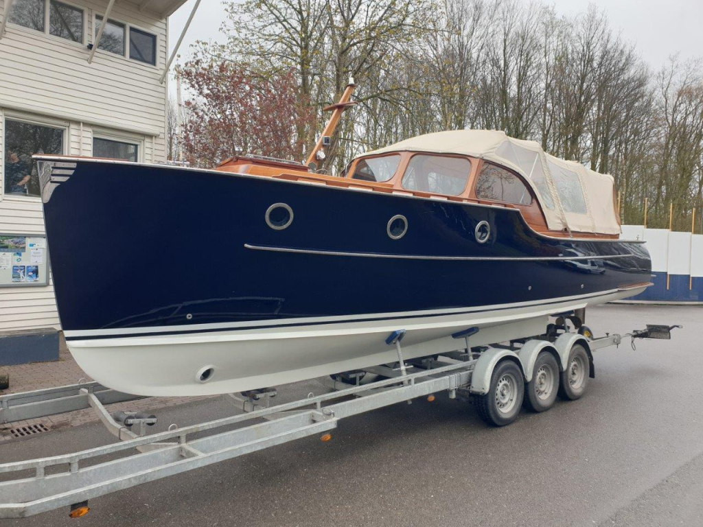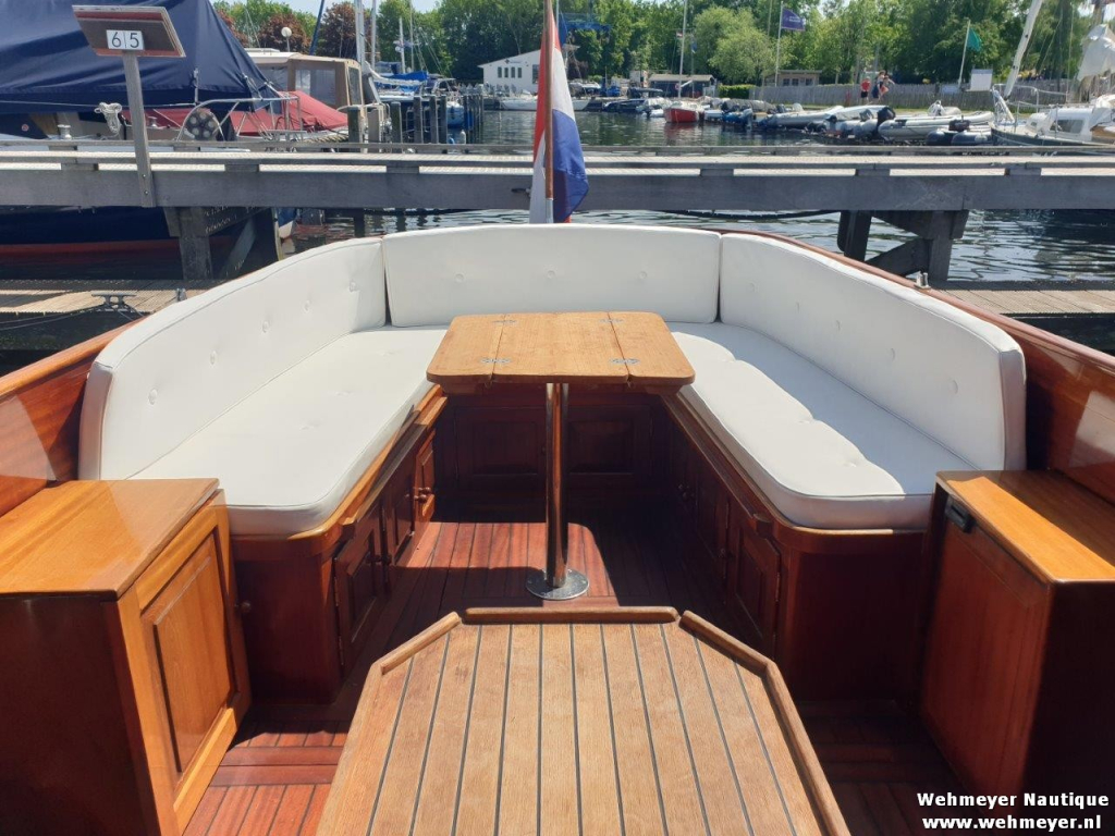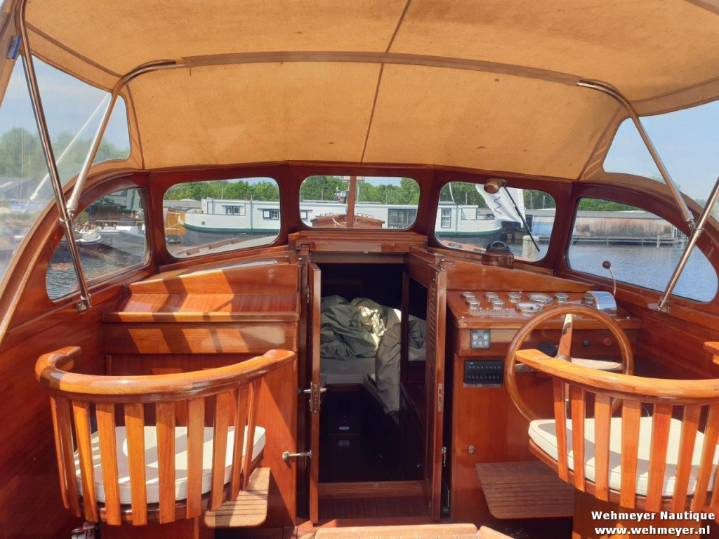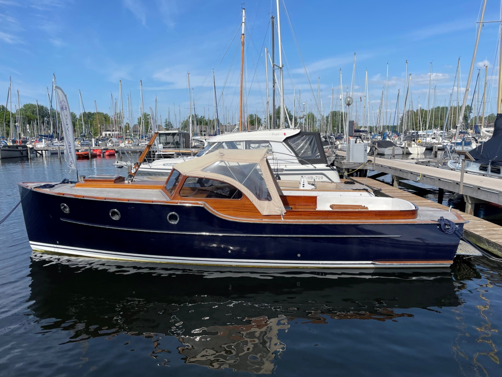 Klassiek gelijnde Rapsody 29 OCF, met nieuwe (2024) hekschroef werkt icm met de boegschroef en afstandsbediening, donkerblauwe polyester, krachtige Yanmar 125 pk motor, goed voor een snelheid tot 32 km/u. Gehele mahonie bovenbouw in 2025 kaal gehaald en professioneel opnieuw gelakt, 9 laklagen van Epifanes. Teak kuipvloer en sfeervolle mahonie betimmering binnen. Afgesloten toilet met elektrisch wc en fontein, warm- en koud stromend water, buitendouche, Webasto heteluchtverwarming en ledverlichting, binnen en navigatie (2024). Kombuis met koelkast, extra ingebouwde koelbox met compressor, rvs gootsteen en 2-pits spiritusstel. Marifoon (2025), 1200 watt omvormer, stereo en comfortabele rondzit die te transformeren is tot ruim tweepersoonsbed. Ruime kuip met nieuwe (2024) beige buiskap en kuiptent met horegaas. Wintertent. U-zit om te vormen tot zonnedek of bed. Witte antifouling (2025), motoronderhoud uitgevoerd (2025). Staat iedere winter in een loods. Meer foto's en info op onze eigen website www.wehmeyer.nl Te bezichtigen op afspraak in de verkoophaven van Wehmeyer te Naarden.