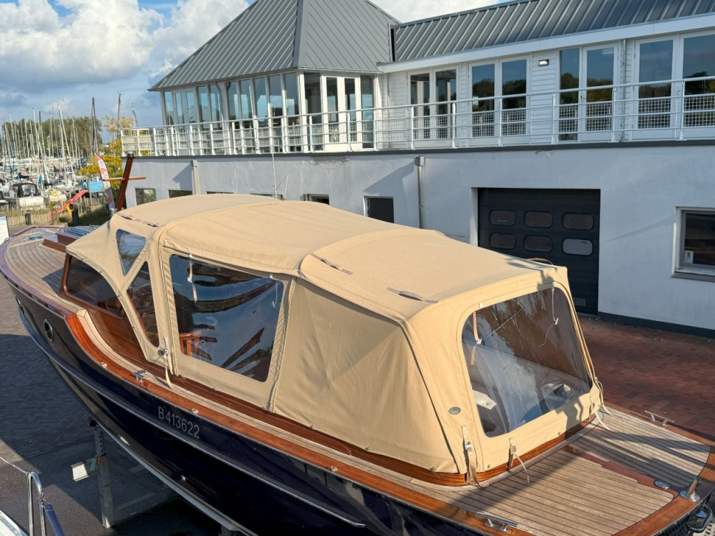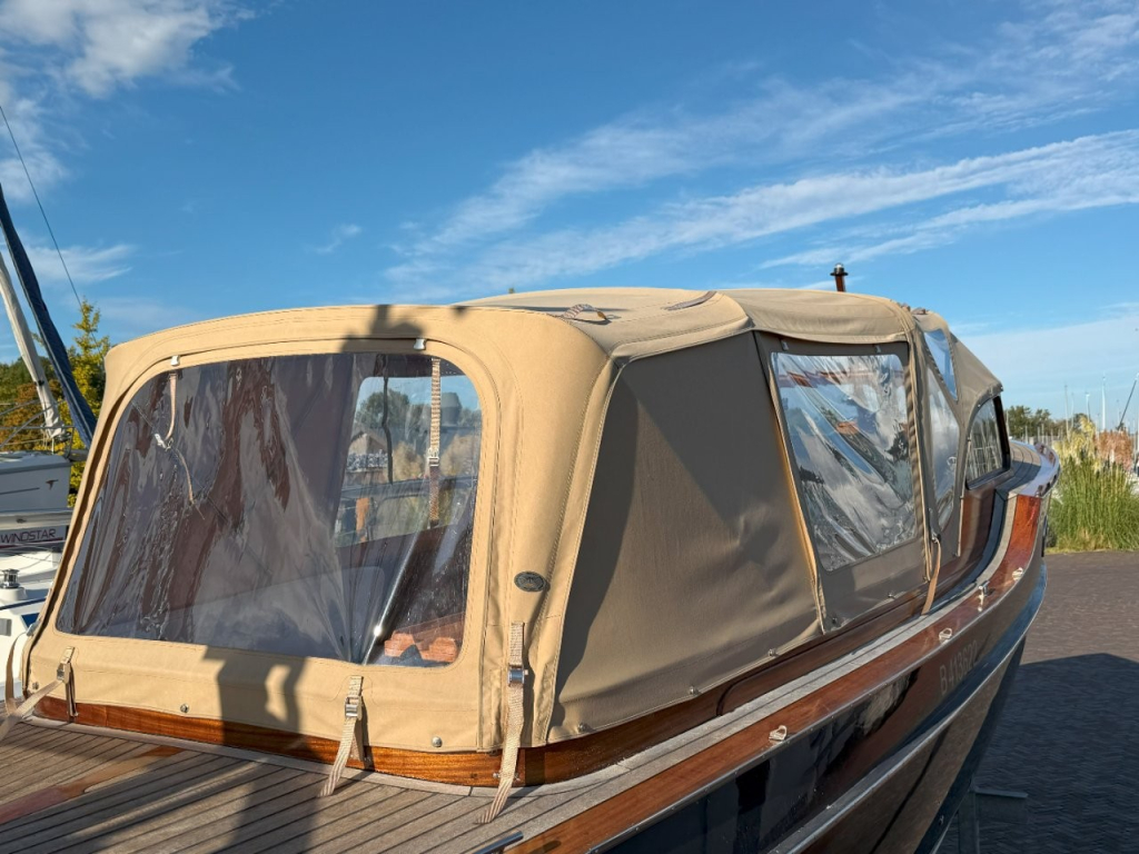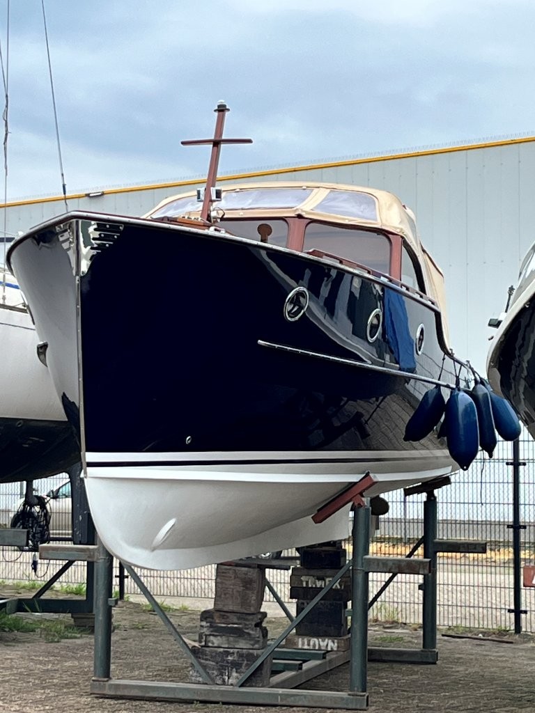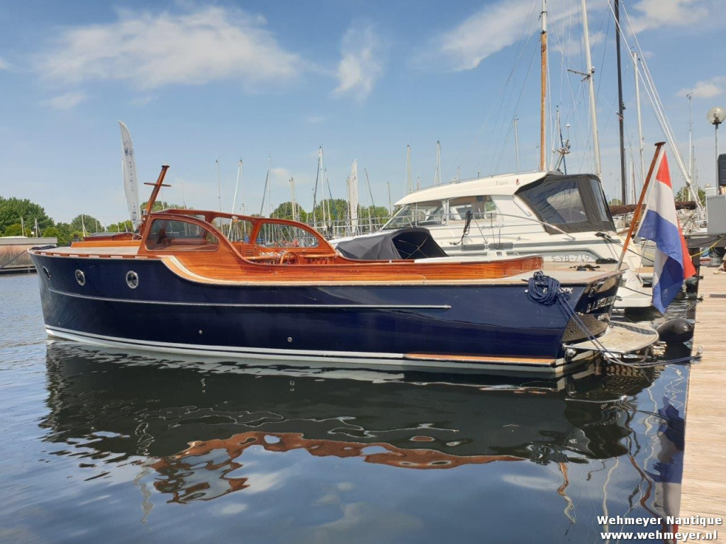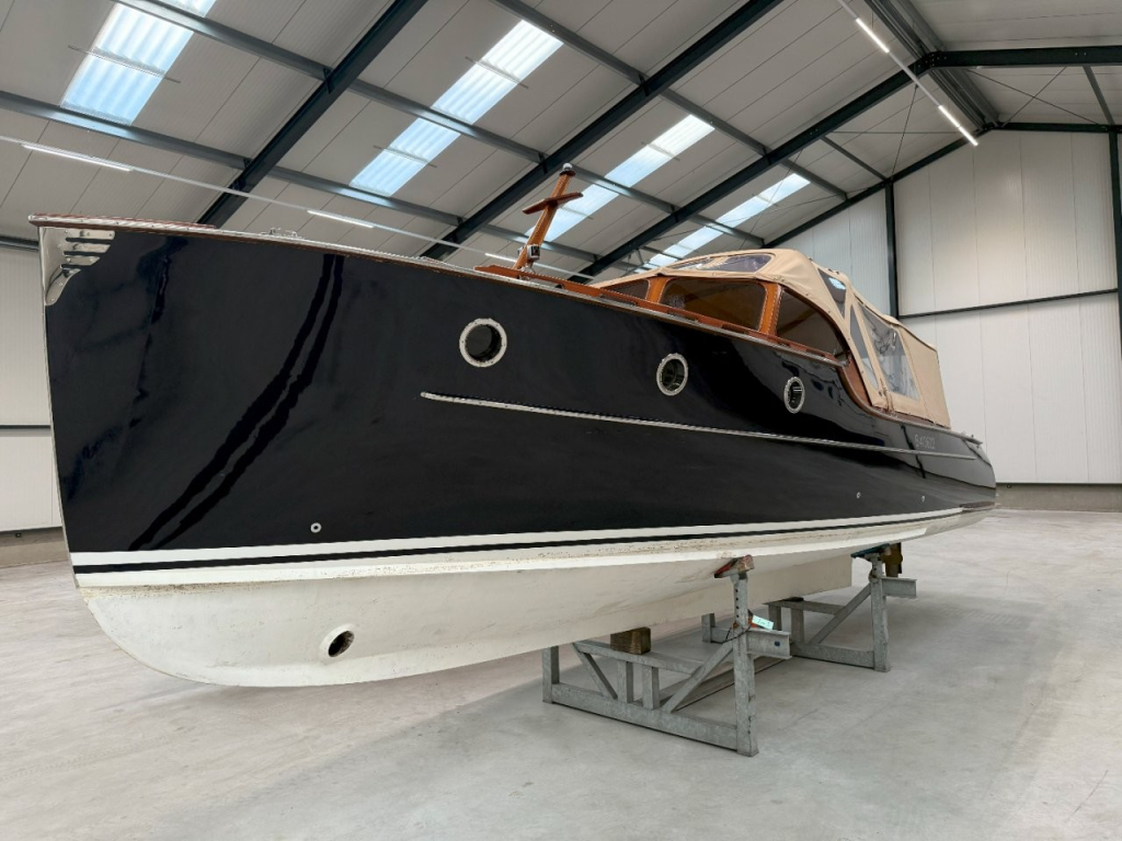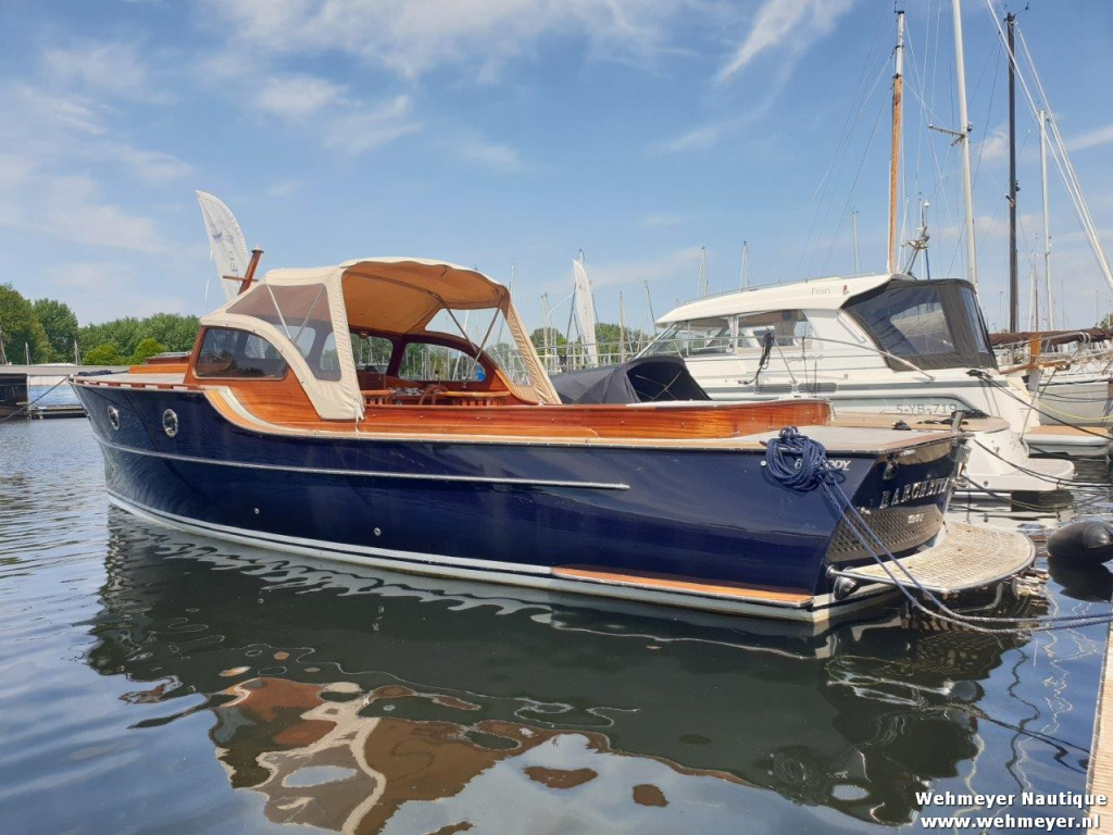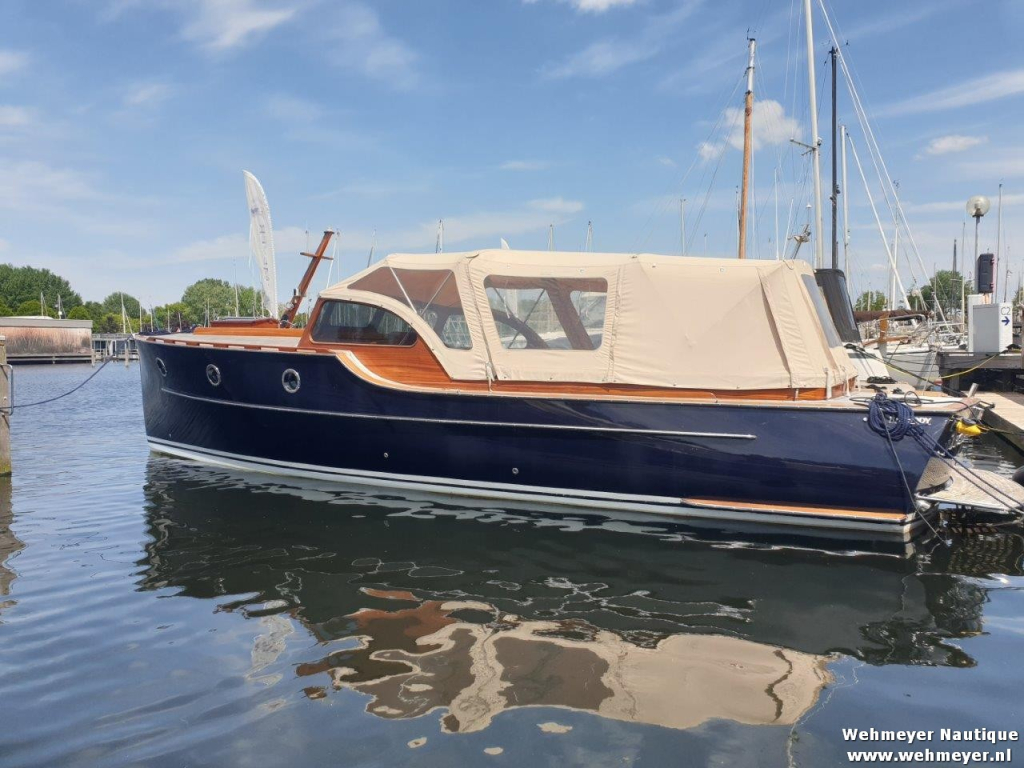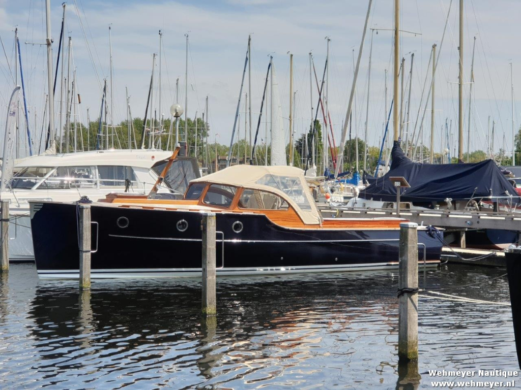 Klassiek gelijnde Rapsody 29 OCF, met nieuwe (2024) hekschroef werkt icm met de boegschroef en afstandsbediening, donkerblauwe polyester, krachtige Yanmar 125 pk motor, goed voor een snelheid tot 30 km/u. Gehele mahonie bovenbouw in 2025 kaal gehaald en professioneel opnieuw gelakt, 9 laklagen van Epifanes. Teak kuipvloer en sfeervolle mahonie betimmering binnen. Afgesloten toilet met elektrisch wc en fontein, warm- en koud stromend water, buitendouche, Webasto heteluchtverwarming en ledverlichting, binnen en navigatie (2024). Kombuis met koelkast, extra ingebouwde koelbox met compressor, rvs gootsteen en 2-pits spiritusstel. Marifoon (2025), 1200 watt omvormer, stereo en comfortabele rondzit die te transformeren is tot ruim tweepersoonsbed. Ruime kuip met nieuwe (2024) beige buiskap en kuiptent met horegaas. Wintertent. U-zit om te vormen tot zonnedek of bed. Witte antifouling (2025), motoronderhoud uitgevoerd (2025). Staat iedere winter in een loods. Meer foto's en info op onze eigen website www.wehmeyer.nl Te bezichtigen op afspraak in de verkoophaven van Wehmeyer te Naarden.