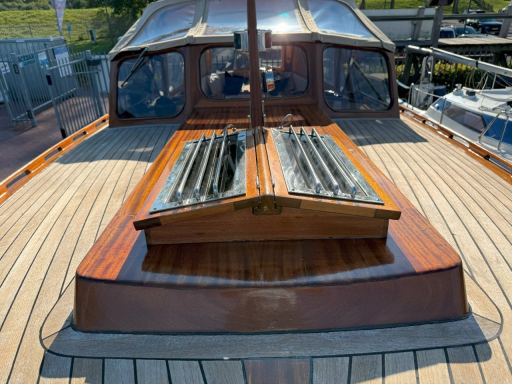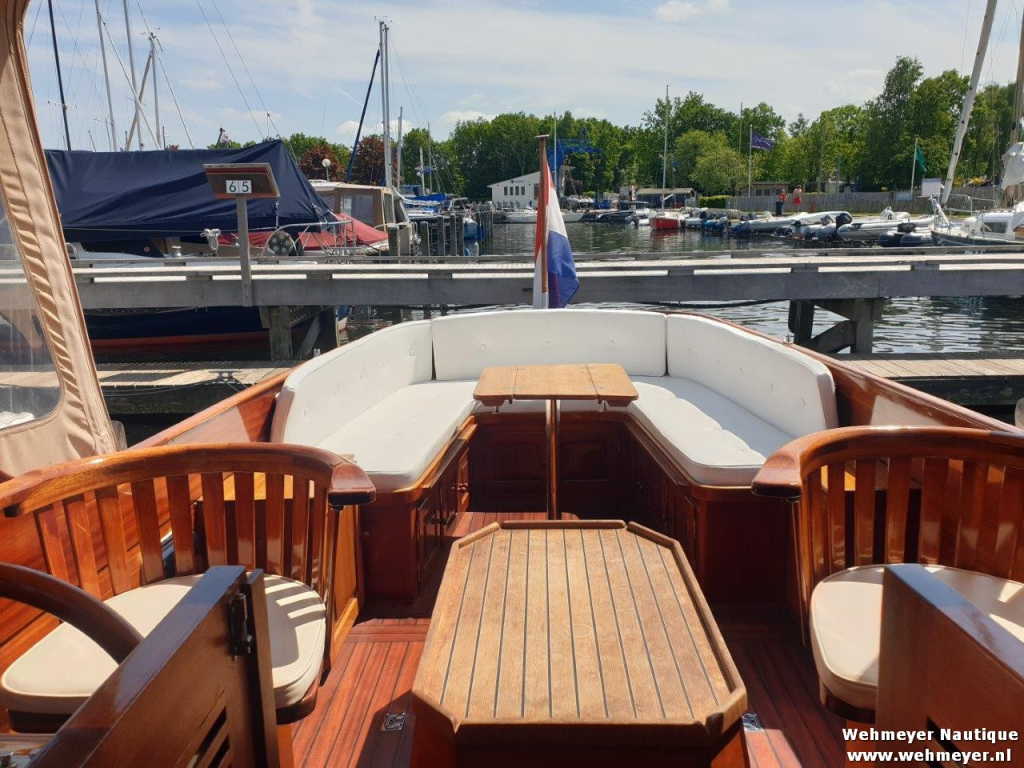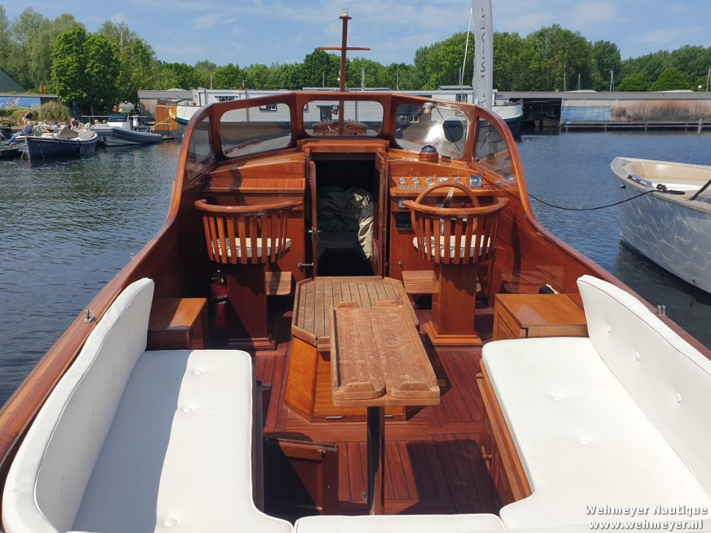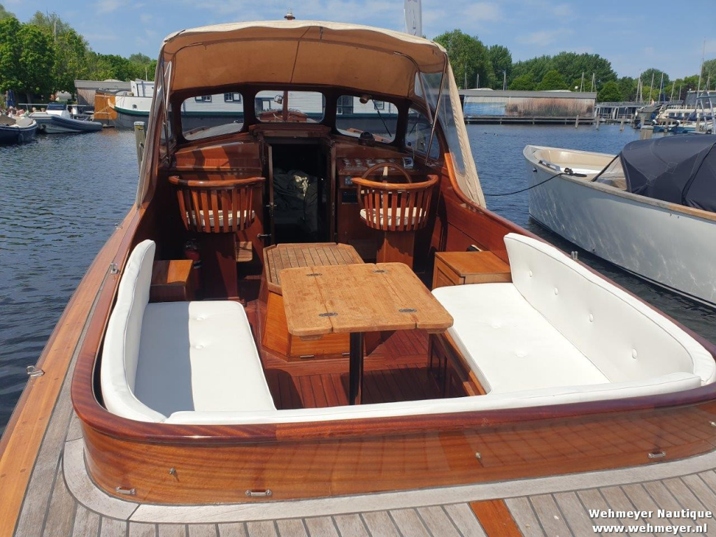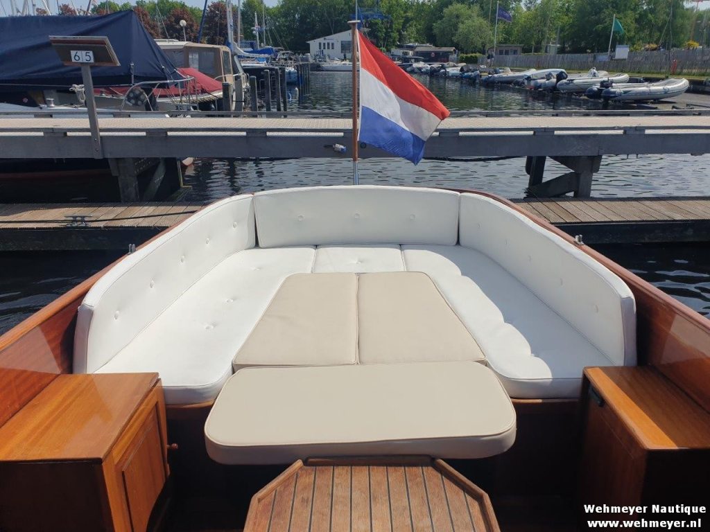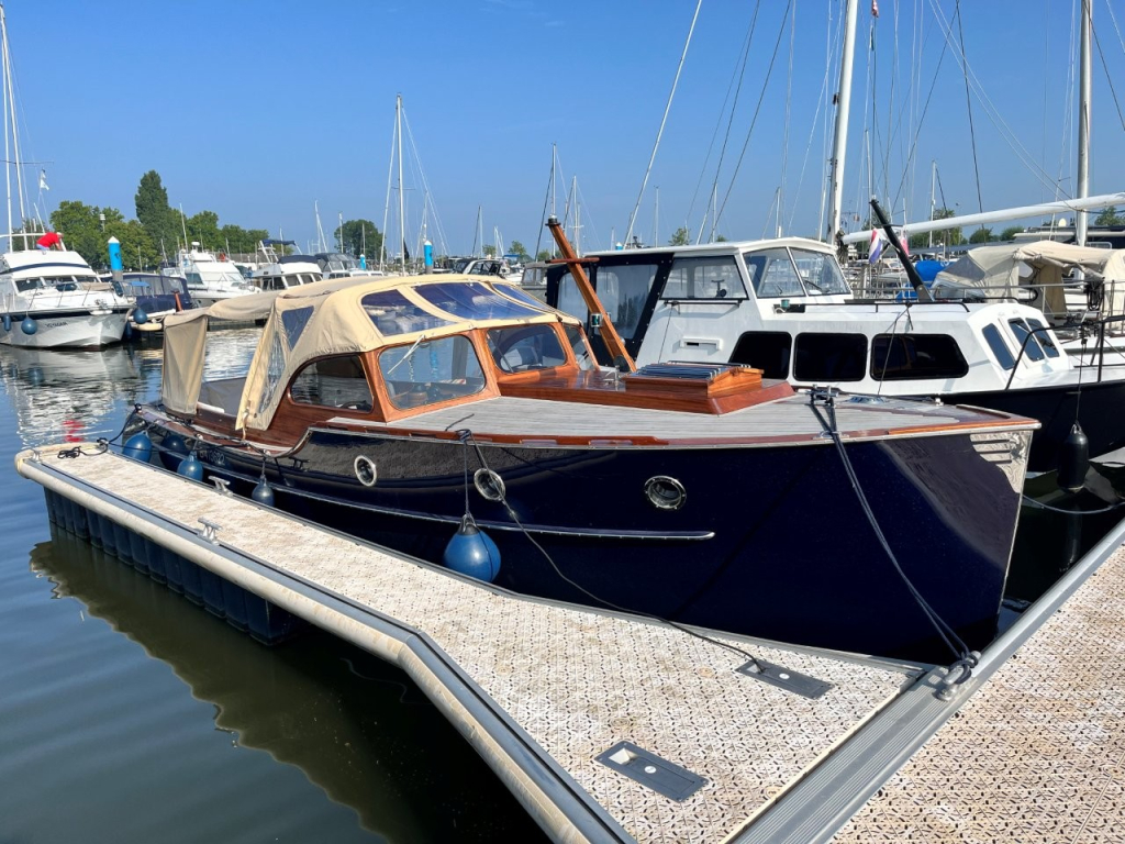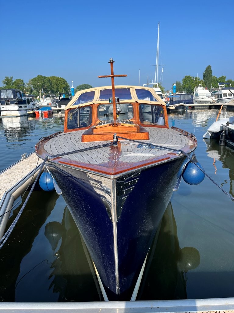 Klassiek gelijnde Rapsody 29 OCF, met nieuwe (2024) hekschroef werkt icm met de boegschroef en afstandsbediening, donkerblauwe polyester, krachtige Yanmar 125 pk motor, goed voor een snelheid tot 30 km/u. Gehele mahonie bovenbouw in 2025 kaal gehaald en professioneel opnieuw gelakt, 9 laklagen van Epifanes. Teak kuipvloer en sfeervolle mahonie betimmering binnen. Afgesloten toilet met elektrisch wc en fontein, warm- en koud stromend water, buitendouche, Webasto heteluchtverwarming en ledverlichting, binnen en navigatie (2024). Kombuis met koelkast, extra ingebouwde koelbox met compressor, rvs gootsteen en 2-pits spiritusstel. Marifoon (2025), 1200 watt omvormer, stereo en comfortabele rondzit die te transformeren is tot ruim tweepersoonsbed. Ruime kuip met nieuwe (2024) beige buiskap en kuiptent met horegaas. Wintertent. U-zit om te vormen tot zonnedek of bed. Witte antifouling (2025), motoronderhoud uitgevoerd (2025). Staat iedere winter in een loods. Meer foto's en info op onze eigen website www.wehmeyer.nl Te bezichtigen op afspraak in de verkoophaven van Wehmeyer te Naarden.