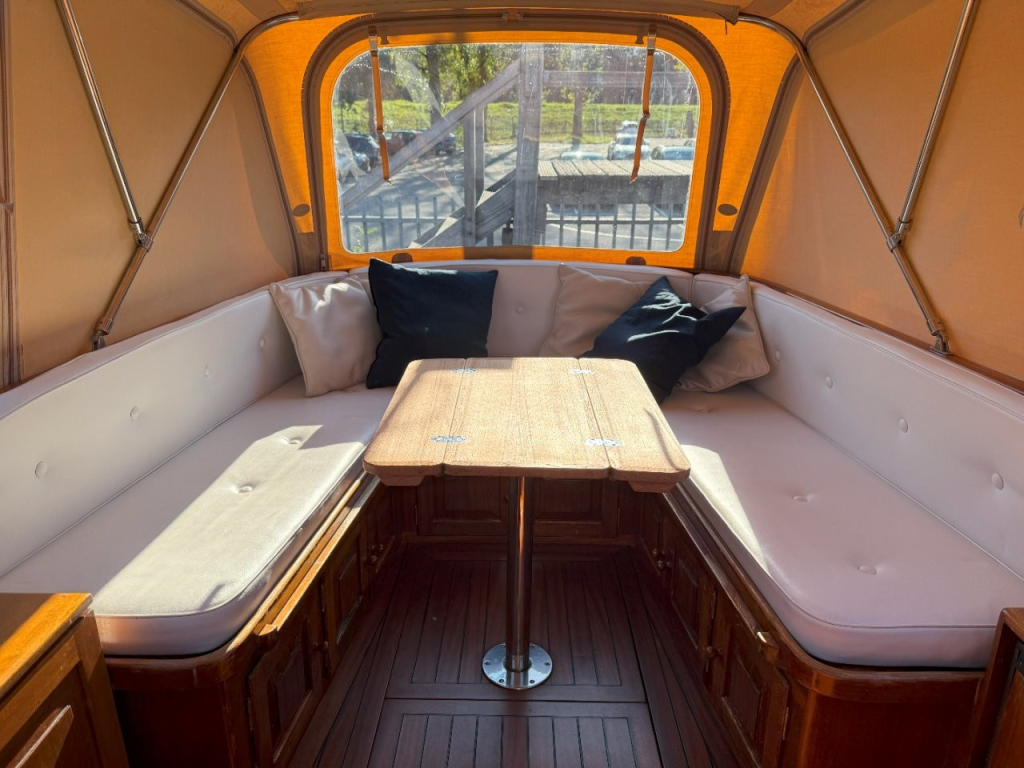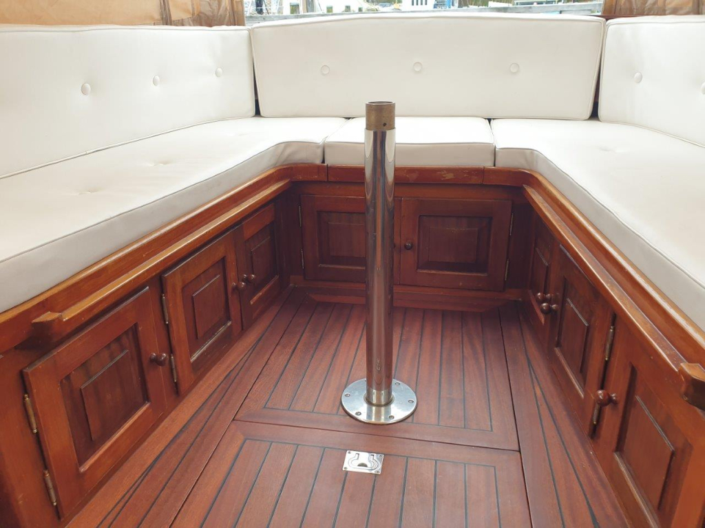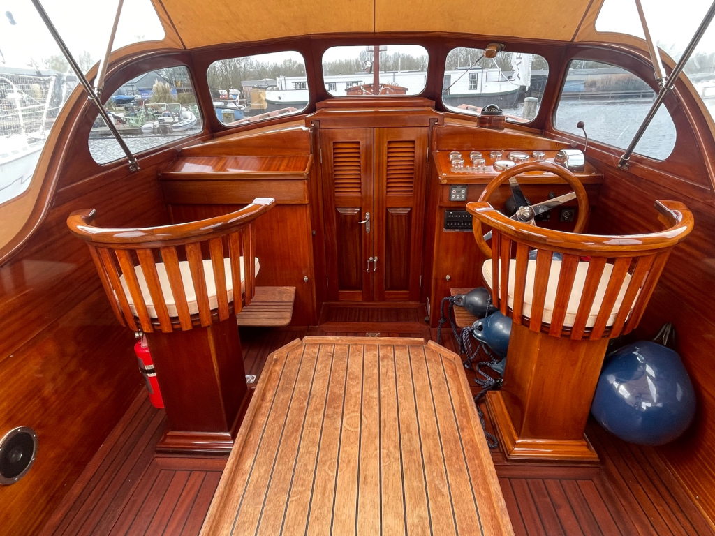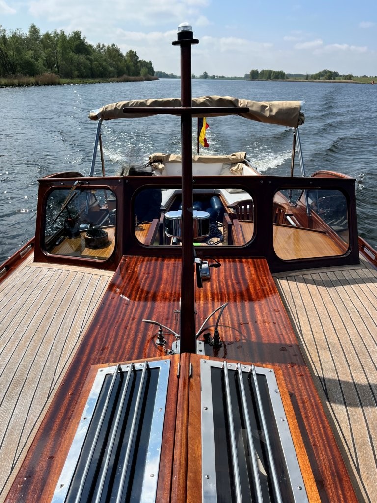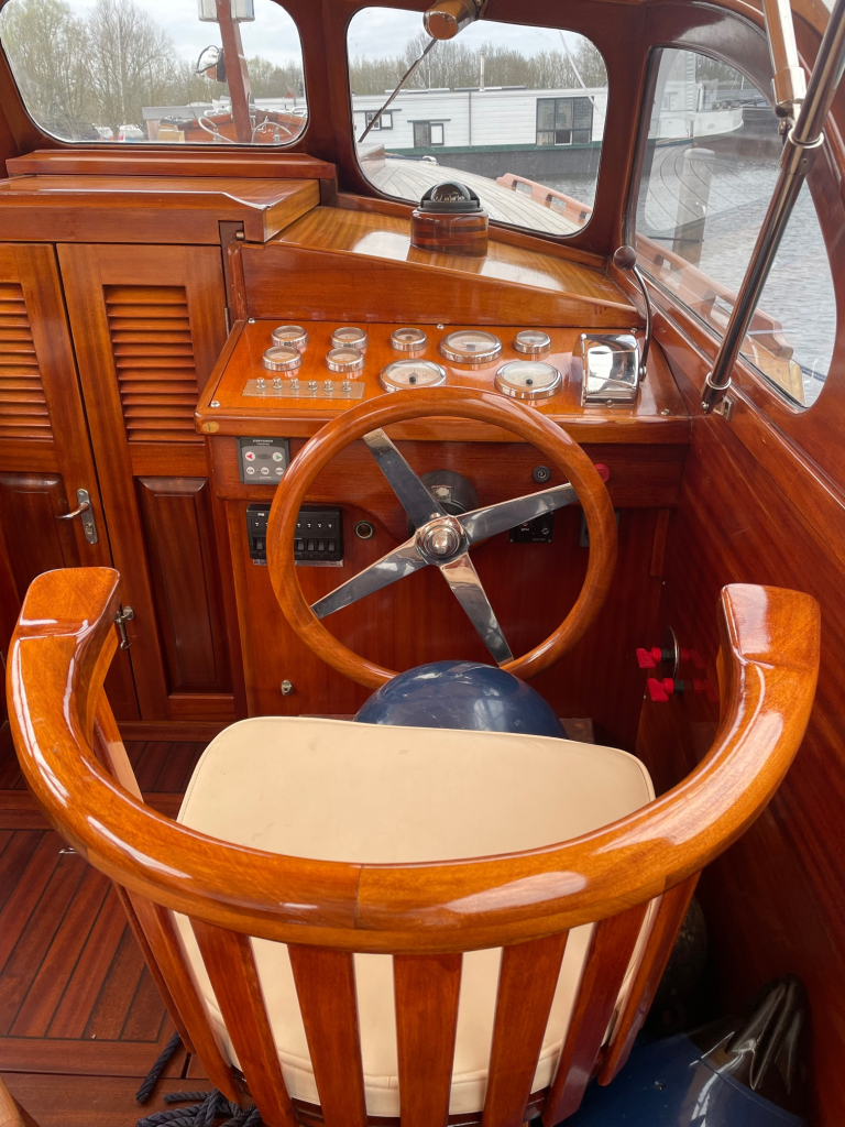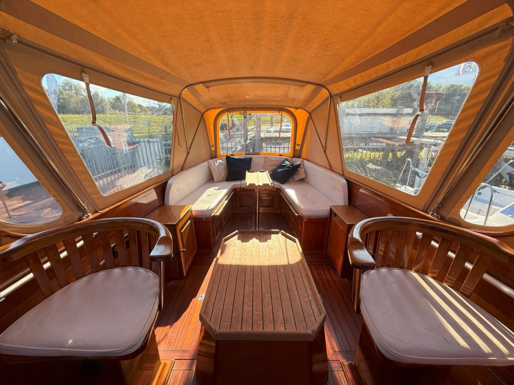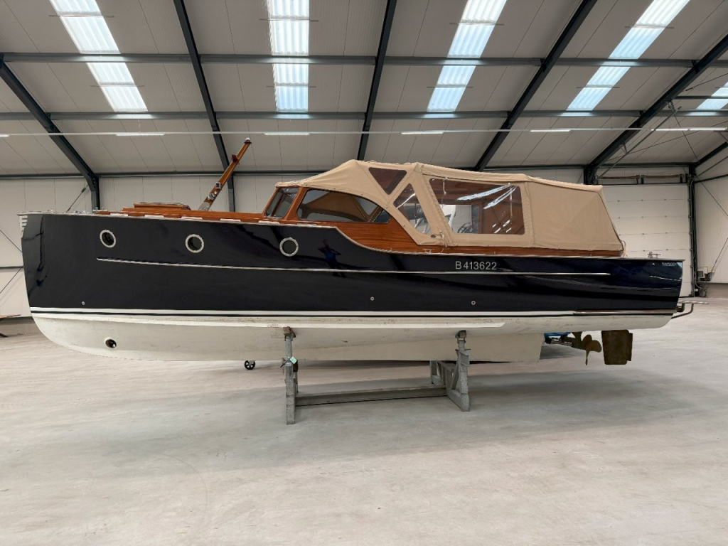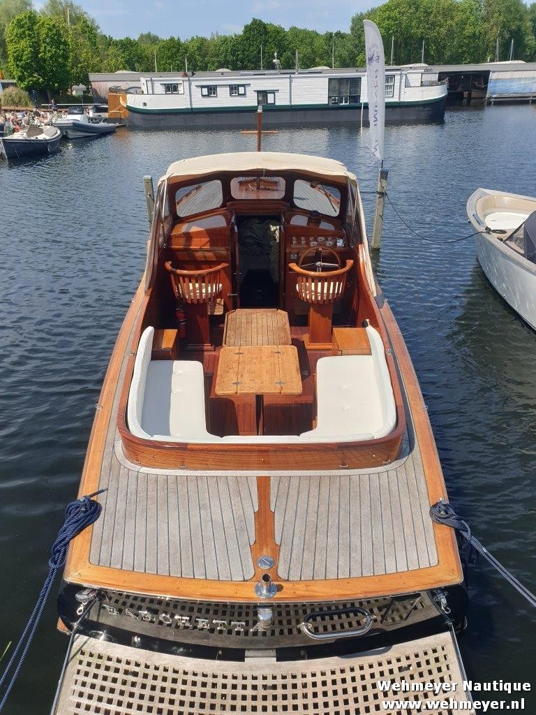 Klassiek gelijnde Rapsody 29 OCF, met nieuwe (2024) hekschroef werkt icm met de boegschroef en afstandsbediening, donkerblauwe polyester, krachtige Yanmar 125 pk motor, goed voor een snelheid tot 30 km/u. Gehele mahonie bovenbouw in 2025 kaal gehaald en professioneel opnieuw gelakt, 9 laklagen van Epifanes. Teak kuipvloer en sfeervolle mahonie betimmering binnen. Afgesloten toilet met elektrisch wc en fontein, warm- en koud stromend water, buitendouche, Webasto heteluchtverwarming en ledverlichting, binnen en navigatie (2024). Kombuis met koelkast, extra ingebouwde koelbox met compressor, rvs gootsteen en 2-pits spiritusstel. Marifoon (2025), 1200 watt omvormer, stereo en comfortabele rondzit die te transformeren is tot ruim tweepersoonsbed. Ruime kuip met nieuwe (2024) beige buiskap en kuiptent met horegaas. Wintertent. U-zit om te vormen tot zonnedek of bed. Witte antifouling (2025), motoronderhoud uitgevoerd (2025). Staat iedere winter in een loods. Meer foto's en info op onze eigen website www.wehmeyer.nl Te bezichtigen op afspraak in de verkoophaven van Wehmeyer te Naarden.