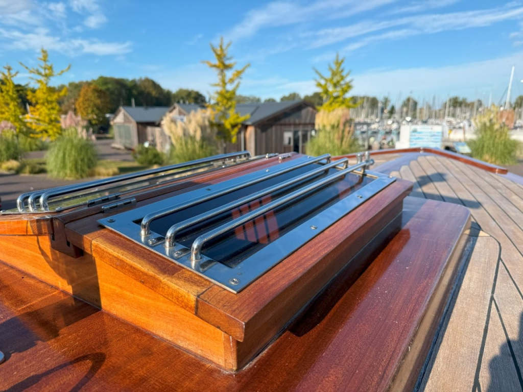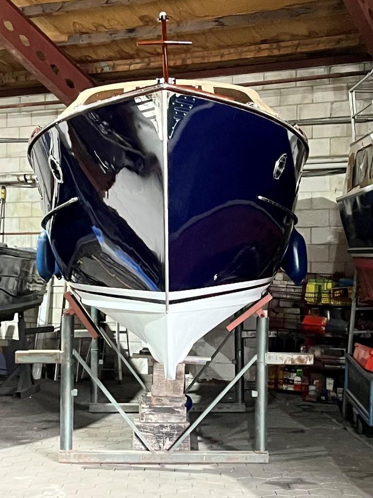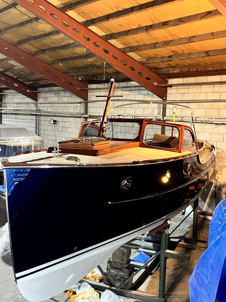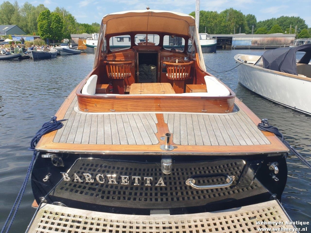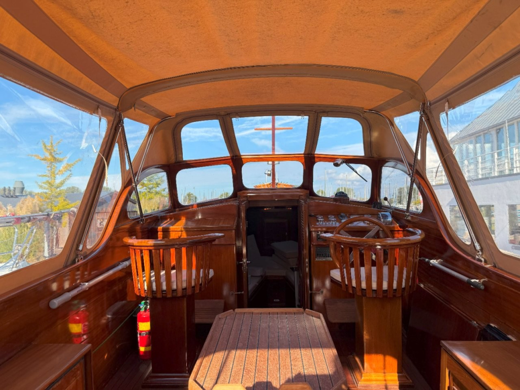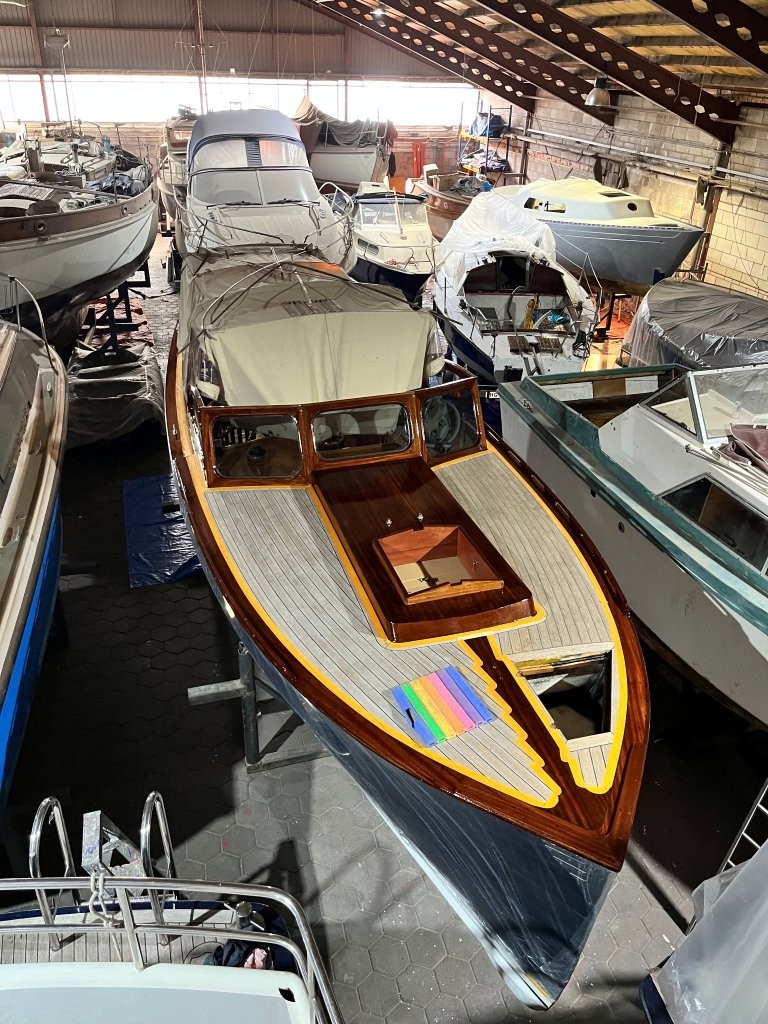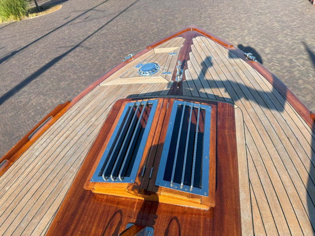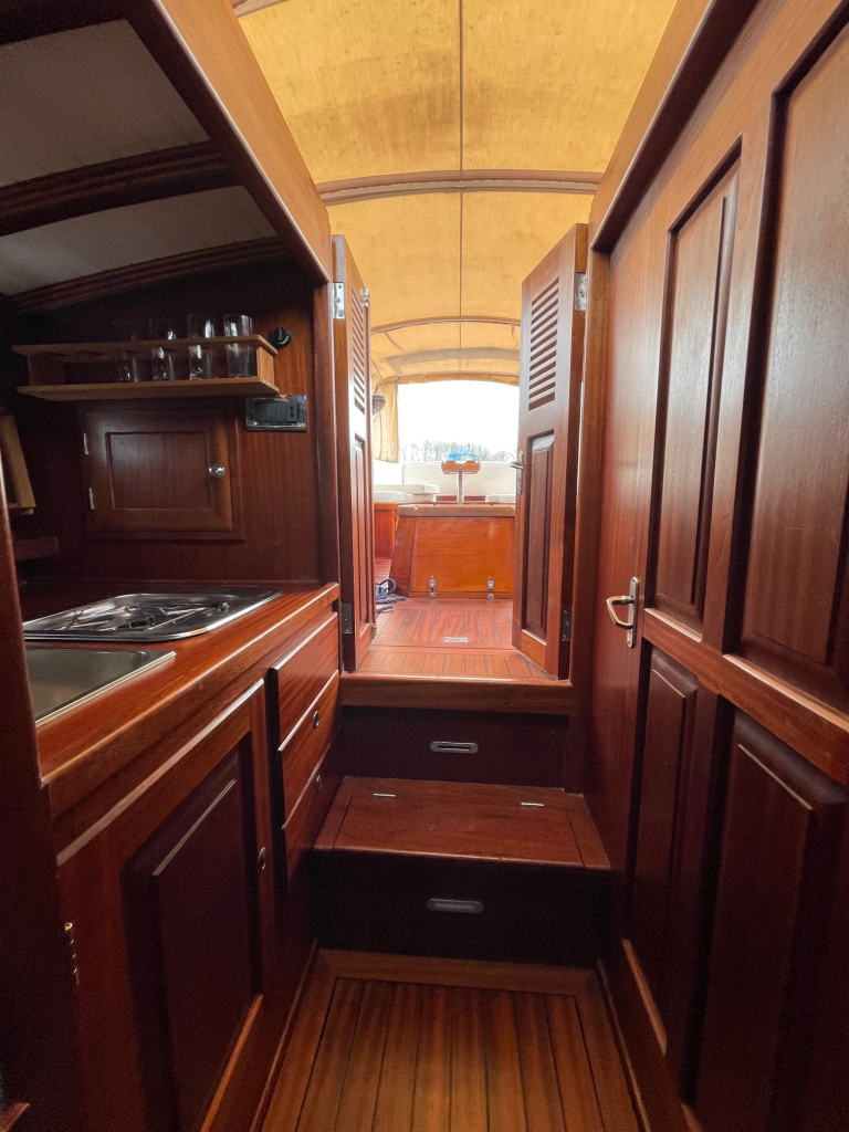 Klassiek gelijnde Rapsody 29 OCF, met nieuwe (2024) hekschroef werkt icm met de boegschroef en afstandsbediening, donkerblauwe polyester, krachtige Yanmar 125 pk motor, goed voor een snelheid tot 30 km/u. Gehele mahonie bovenbouw in 2025 kaal gehaald en professioneel opnieuw gelakt, 9 laklagen van Epifanes. Teak kuipvloer en sfeervolle mahonie betimmering binnen. Afgesloten toilet met elektrisch wc en fontein, warm- en koud stromend water, buitendouche, Webasto heteluchtverwarming en ledverlichting, binnen en navigatie (2024). Kombuis met koelkast, extra ingebouwde koelbox met compressor, rvs gootsteen en 2-pits spiritusstel. Marifoon (2025), 1200 watt omvormer, stereo en comfortabele rondzit die te transformeren is tot ruim tweepersoonsbed. Ruime kuip met nieuwe (2024) beige buiskap en kuiptent met horegaas. Wintertent. U-zit om te vormen tot zonnedek of bed. Witte antifouling (2025), motoronderhoud uitgevoerd (2025). Staat iedere winter in een loods. Meer foto's en info op onze eigen website www.wehmeyer.nl Te bezichtigen op afspraak in de verkoophaven van Wehmeyer te Naarden.