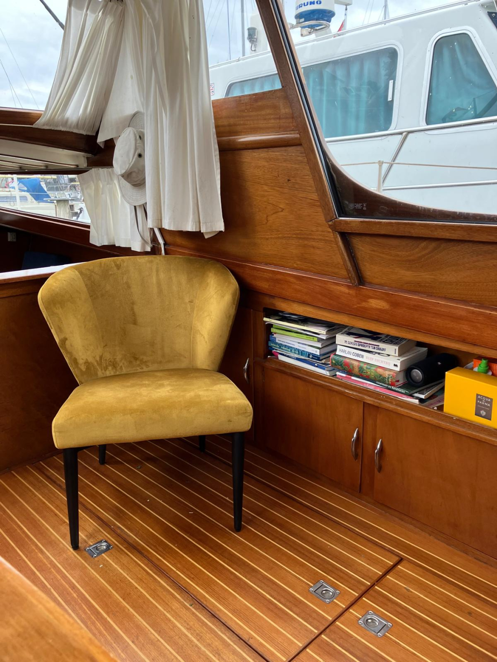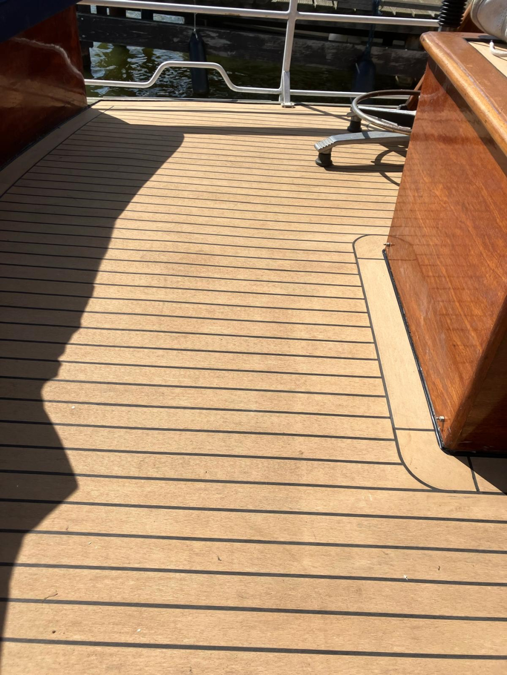 nieuw kunst-teakdek op achterdek (2024).