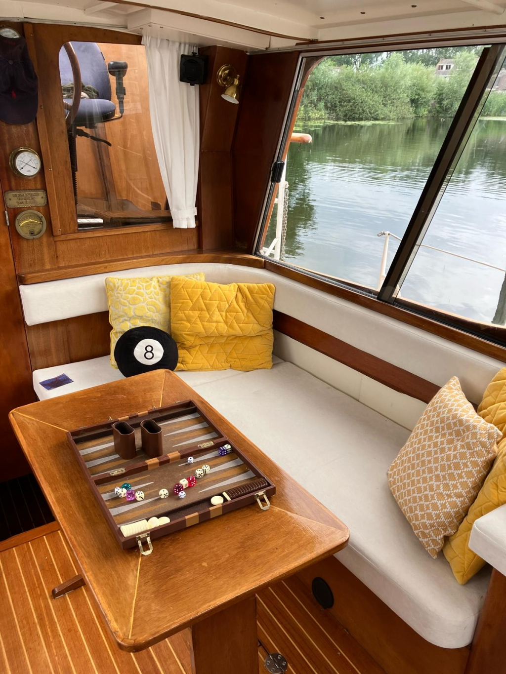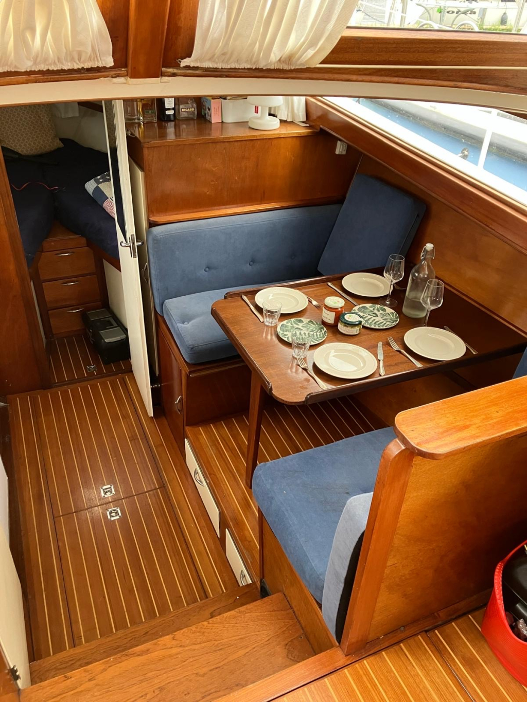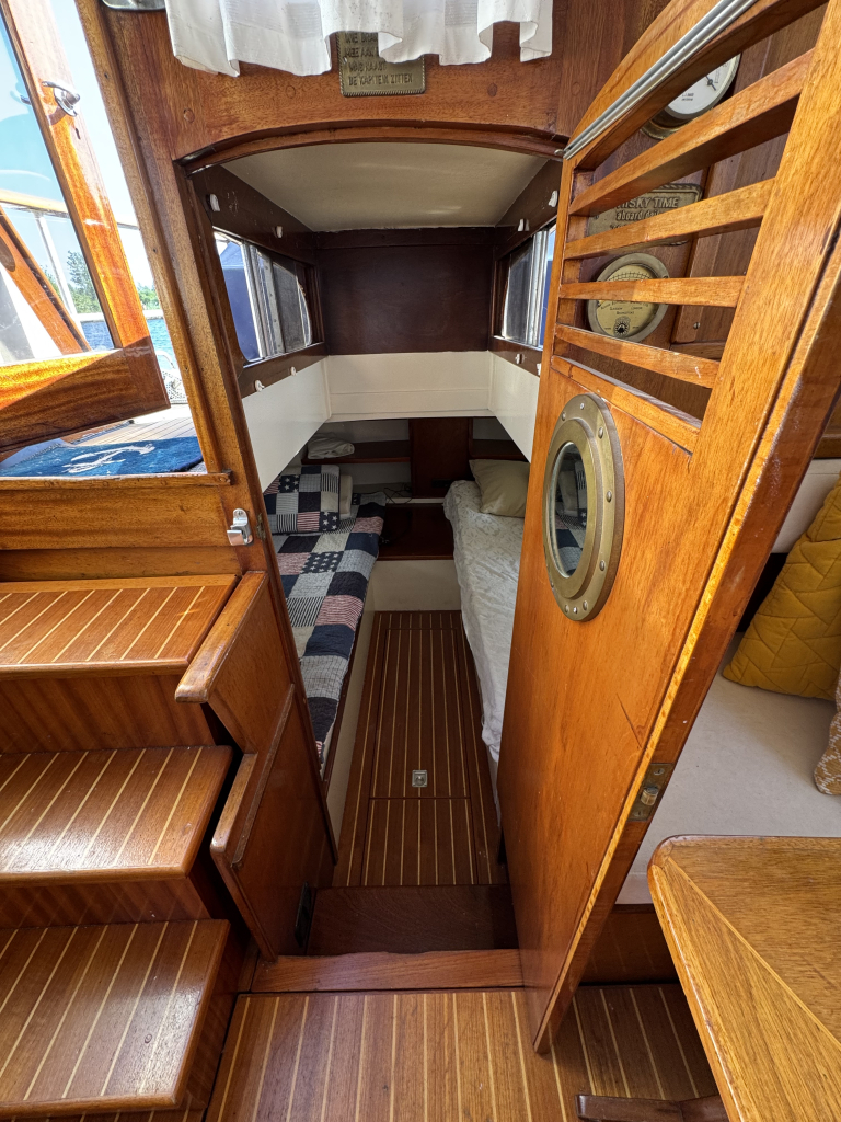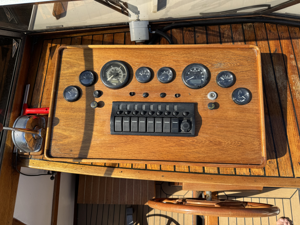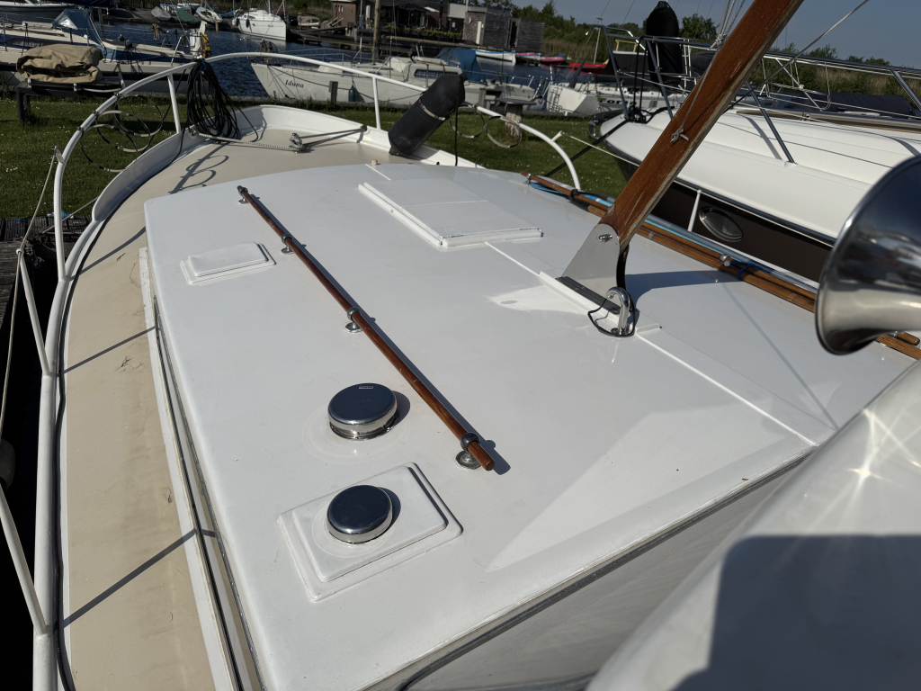 Klassiek motorjacht van Mulder Jachtbouw. De Super Favorite 1100 Deluxe is een frisse gezellige boot met 6 slaapplaatsen, teak vloerdelen in de kajuit, recente kussens en bekleding, salon met ruime