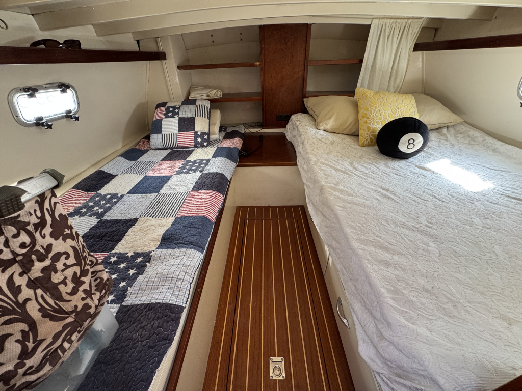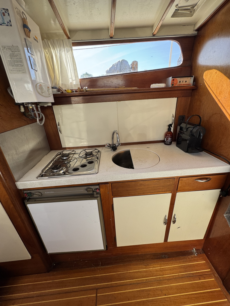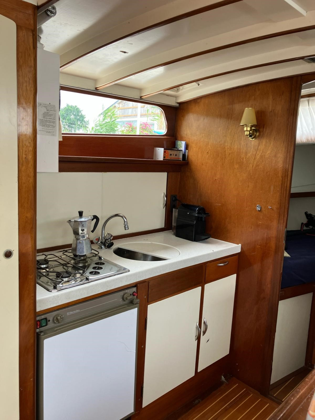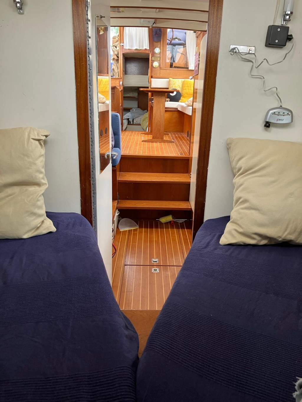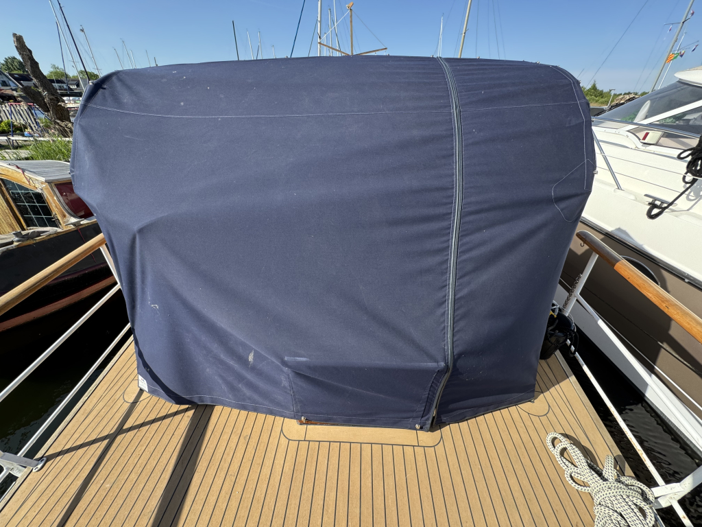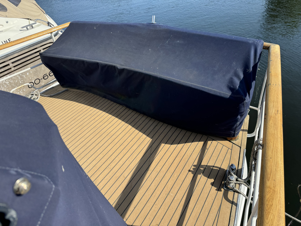 Er is een zwemplateau aanwezig maar is niet bevestigd i.v.m. de grote van de huidige ligplaats. Zwemplateau wordt wel meegeleverd en kan terug geplaatst worden.