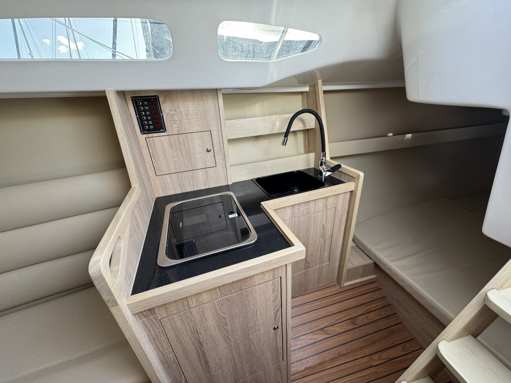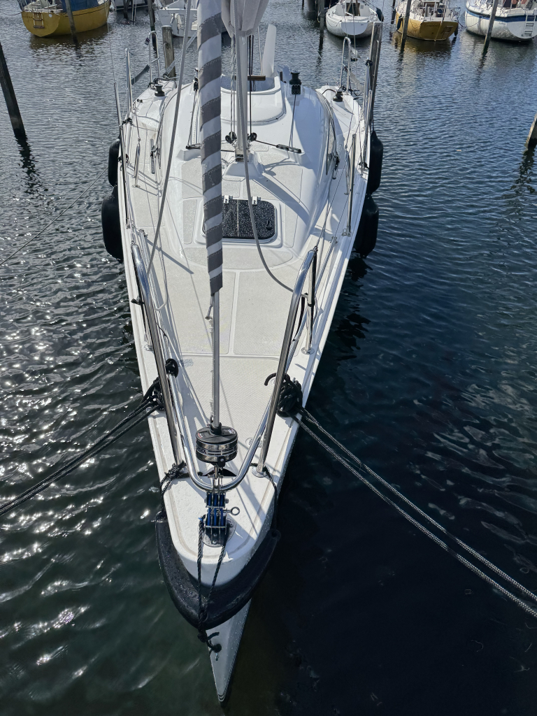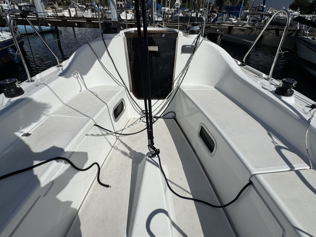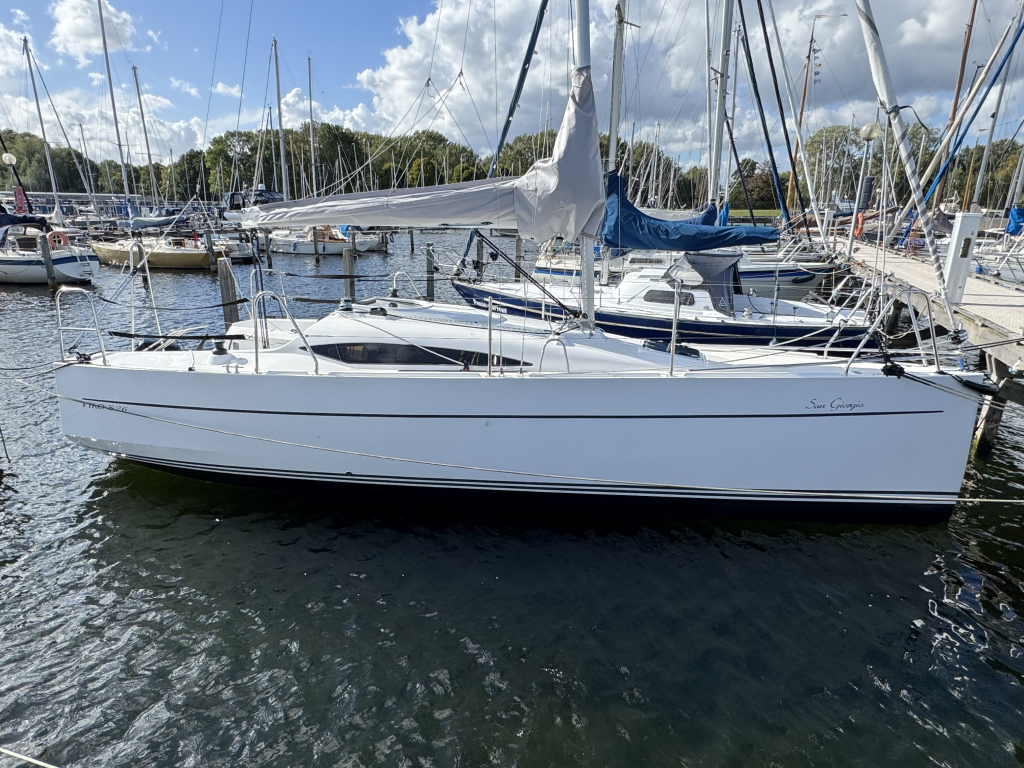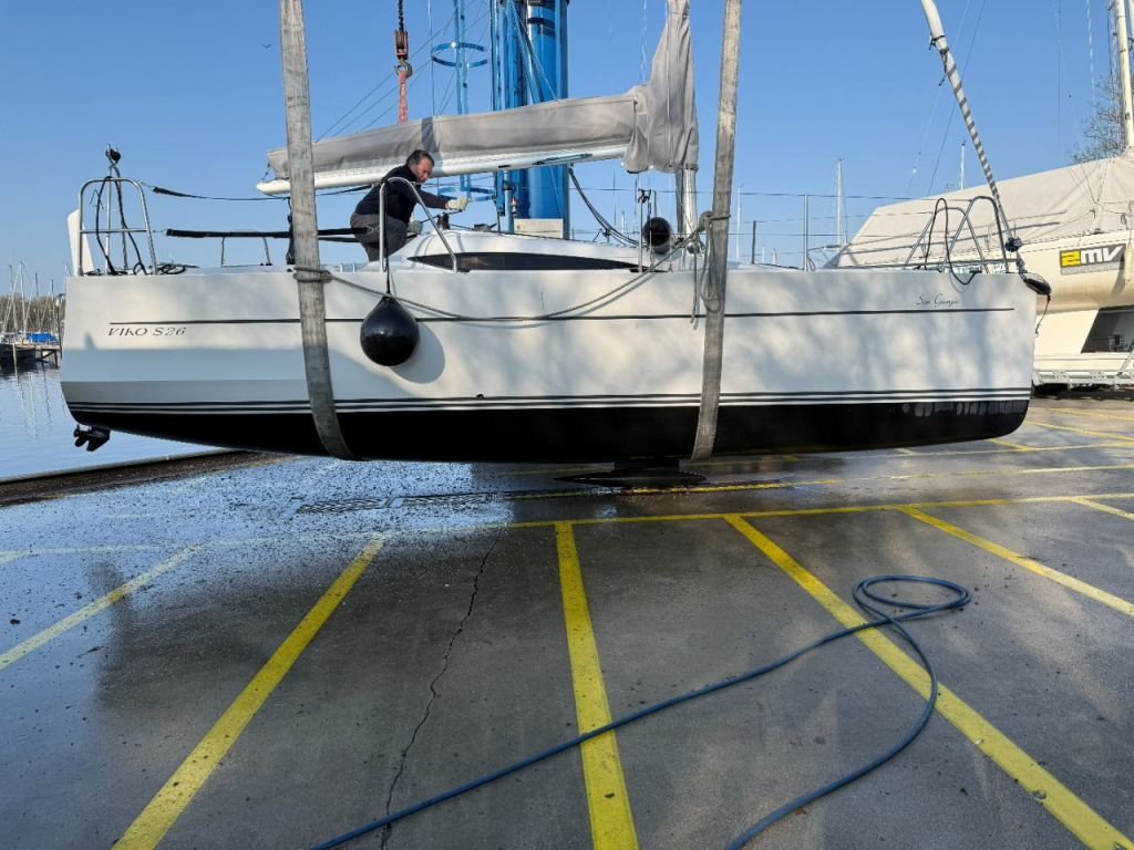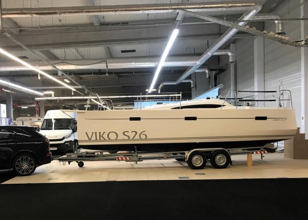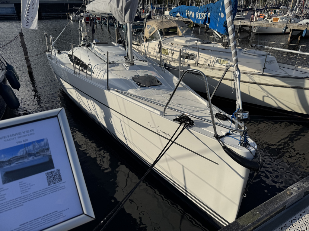 Nieuw in de verkoop gekregen een z.g.a.n. zeiljacht met ophaalbare kiel (0.35 - 1.45 meter) en rvs maststrijk- installatie met rvs schaar en rvs bok. Deze Viko s26 zeilboot heeft 8 vaaruren en is uitgevoerd met het Comfort-pakket. Verrassend ruim van binnen met vier ruime slaapplaatsen in vooronder en achterhut. Gesloten toiletruimte met wastafel en toilet (beide nooit gebruikt). Kombuis met gootsteen, stromend water en 2 pits gasstel (nooit gebruikt). Grote kuip met krachtige Mercury 15 pk elektrische start en oplaad van accu. Raymarine i40 snelheid- en dieptemeter, windex, doorgelat grootzeil met lazy jack en rokfok met UV-band en Furlex rol-reef systeem, verstelbare achterstag, 4x selftailing lieren, diverse val-klemmen, extra rvs kikkers aan de zijkanten, elektr. bilge-pomp. Het onderwaterschip heeft een anti-osmosebehandeling -hechtingscoat en antifouling. De vrijwel nieuwe Harbeck BT3000 tandem-as trailer is er optioneel bij te kopen. Te bezichtigen bij Wehmeyer te Naarden.
