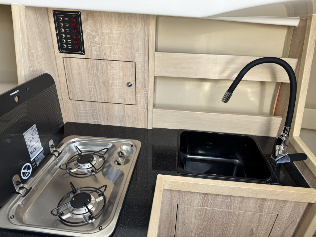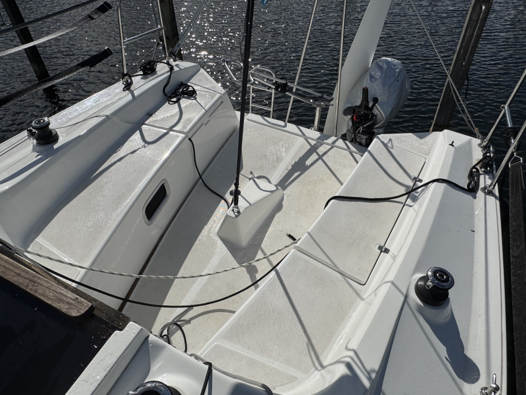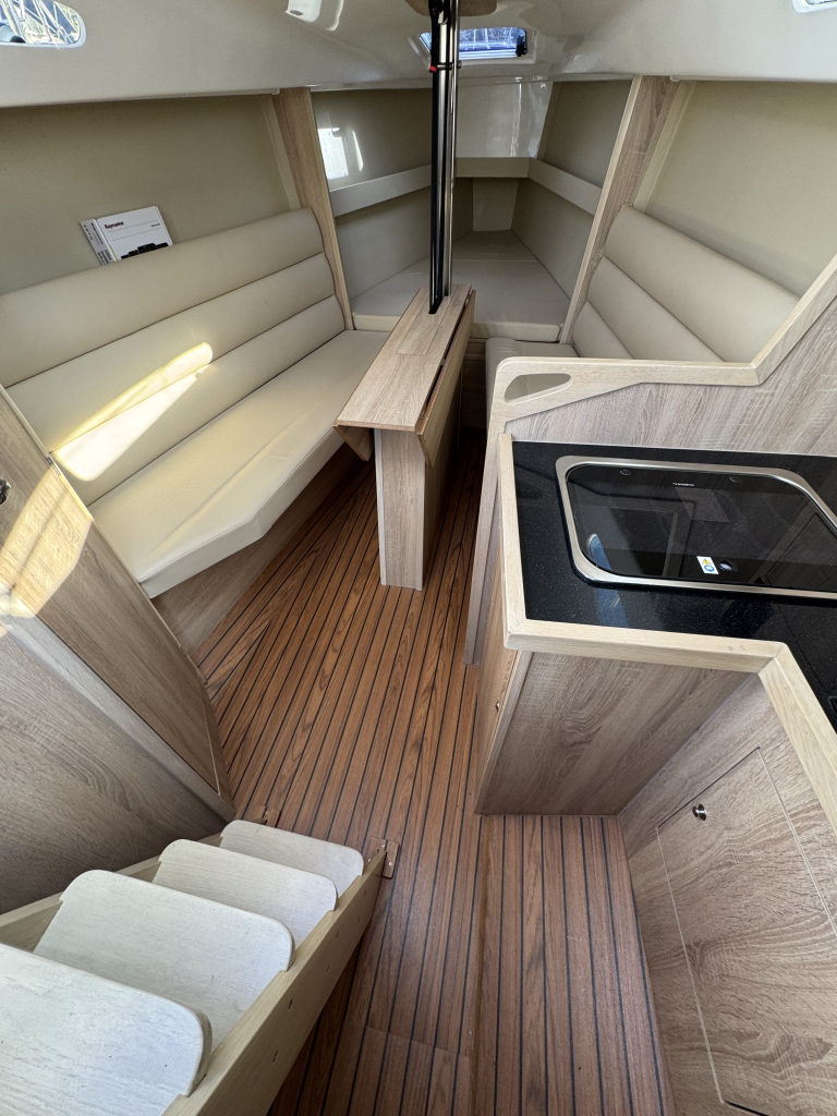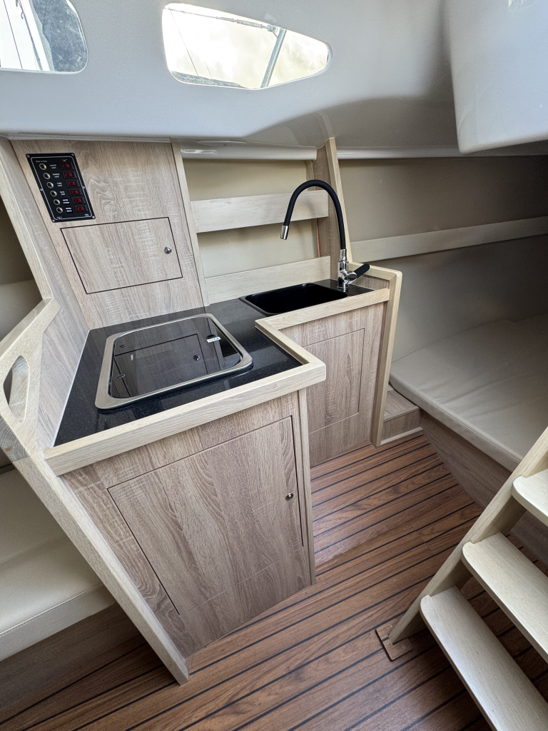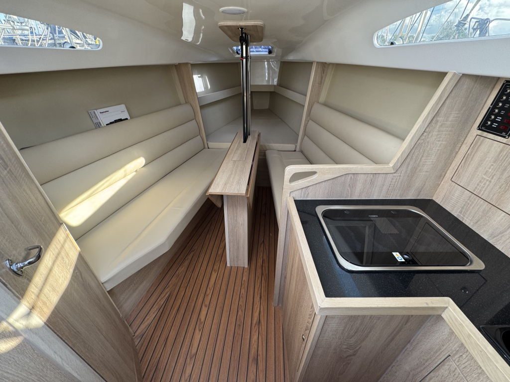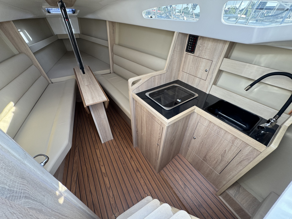 Nieuw in de verkoop gekregen een z.g.a.n. zeiljacht met ophaalbare kiel (0.35 - 1.45 meter) en rvs maststrijk- installatie met rvs schaar en rvs bok. Deze Viko s26 zeilboot heeft 8 vaaruren en is uitgevoerd met het Comfort-pakket. Verrassend ruim van binnen met vier ruime slaapplaatsen in vooronder en achterhut. Gesloten toiletruimte met wastafel en toilet (beide nooit gebruikt). Kombuis met gootsteen, stromend water en 2 pits gasstel (nooit gebruikt). Grote kuip met krachtige Mercury 15 pk elektrische start en oplaad van accu. Raymarine i40 snelheid- en dieptemeter, windex, doorgelat grootzeil met lazy jack en rokfok met UV-band en Furlex rol-reef systeem, verstelbare achterstag, 4x selftailing lieren, diverse val-klemmen, extra rvs kikkers aan de zijkanten, elektr. bilge-pomp. Het onderwaterschip heeft een anti-osmosebehandeling -hechtingscoat en antifouling. De vrijwel nieuwe Harbeck BT3000 tandem-as trailer is er optioneel bij te kopen. Te bezichtigen bij Wehmeyer te Naarden.